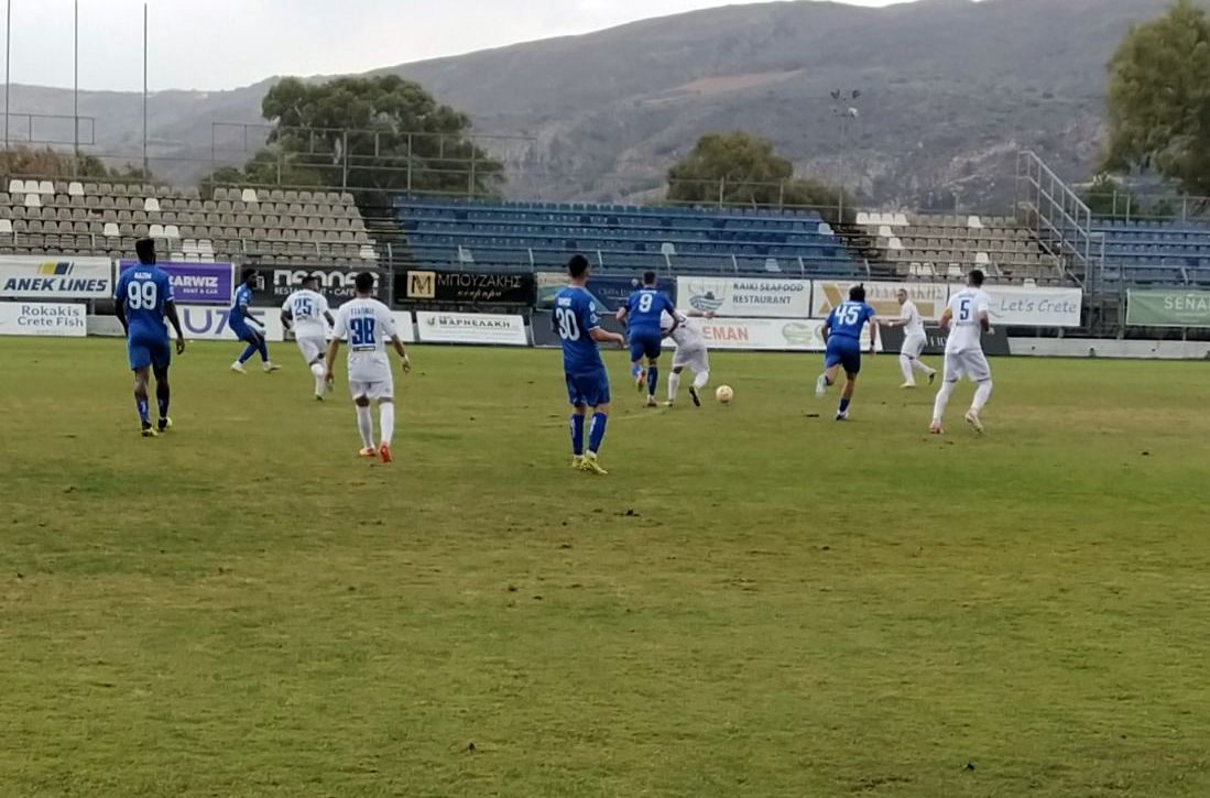 Η πρώτη ευκαιρία των φιλοξενούμενων καταγράφηκε στο 48ο λεπτό όταν ο Ζιούλης έκανε το πλασέ όμως ο Καλογεράκης με μια σπουδαία επέμβαση κράτησε απαραβίαστη την εστία του. Αυτή ήταν και η τελευταία φάση για τους φιλοξενούμενους με τα Χανιά να βρίσκουν τον δρόμο προς τα δίχτυα στο 60ο λεπτό όταν μετά από ωραία εκτελεσμένο κόρνερ, με πάσα, ο Ελευθεριάδης βρήκε τον Μάναλη που με καρφωτή κεφαλιά άνοιξε το σκορ κάνοντας το 1-0 για τα Χανιά.