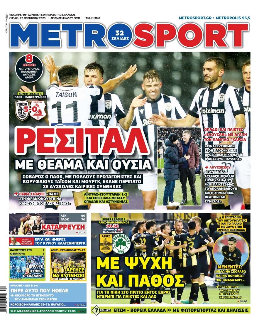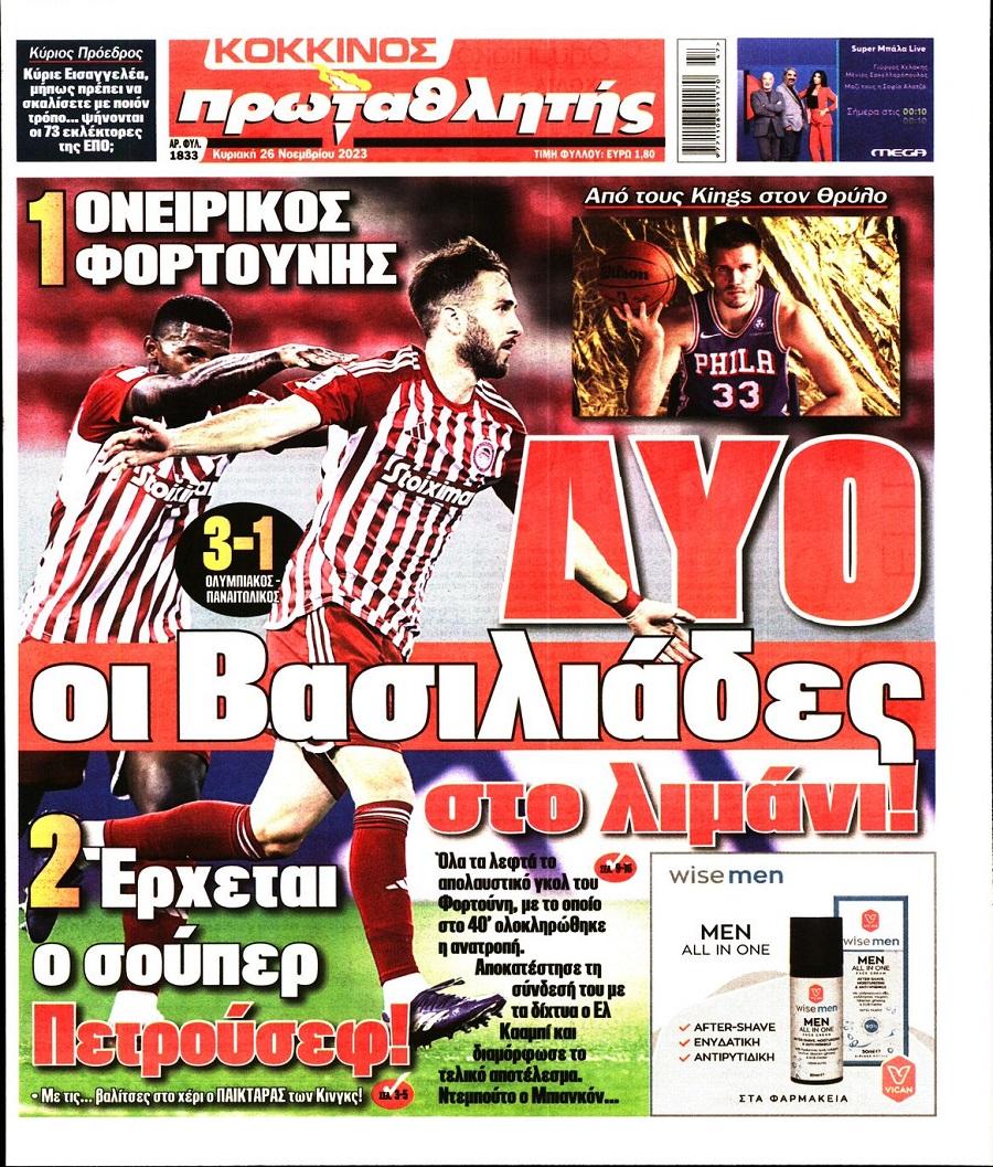 Τα αθλητικά πρωτοσέλιδα της ημέρας(26/11)