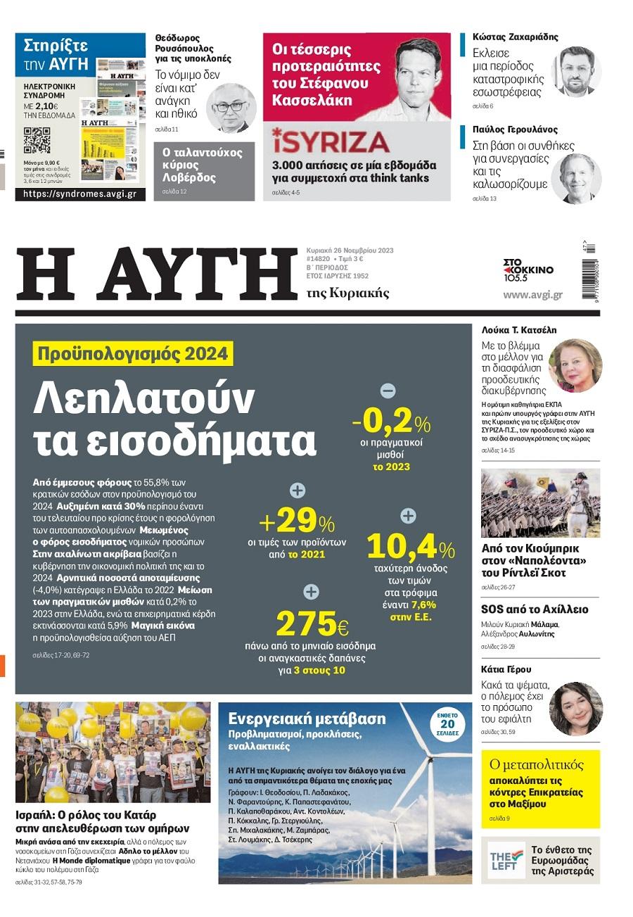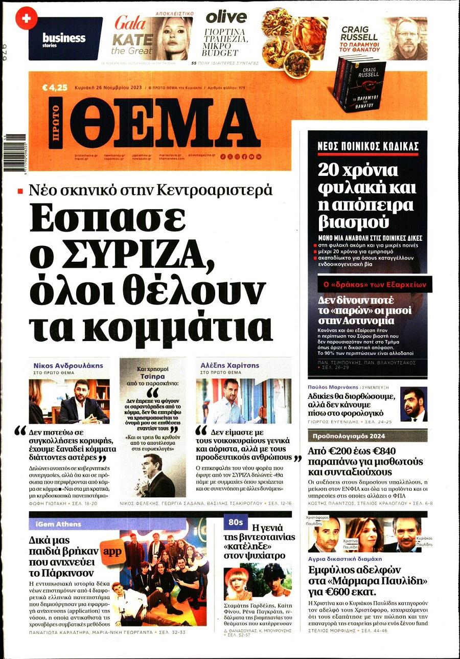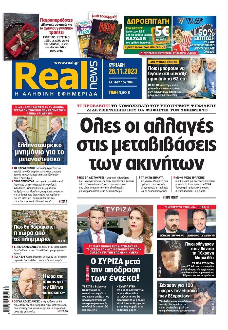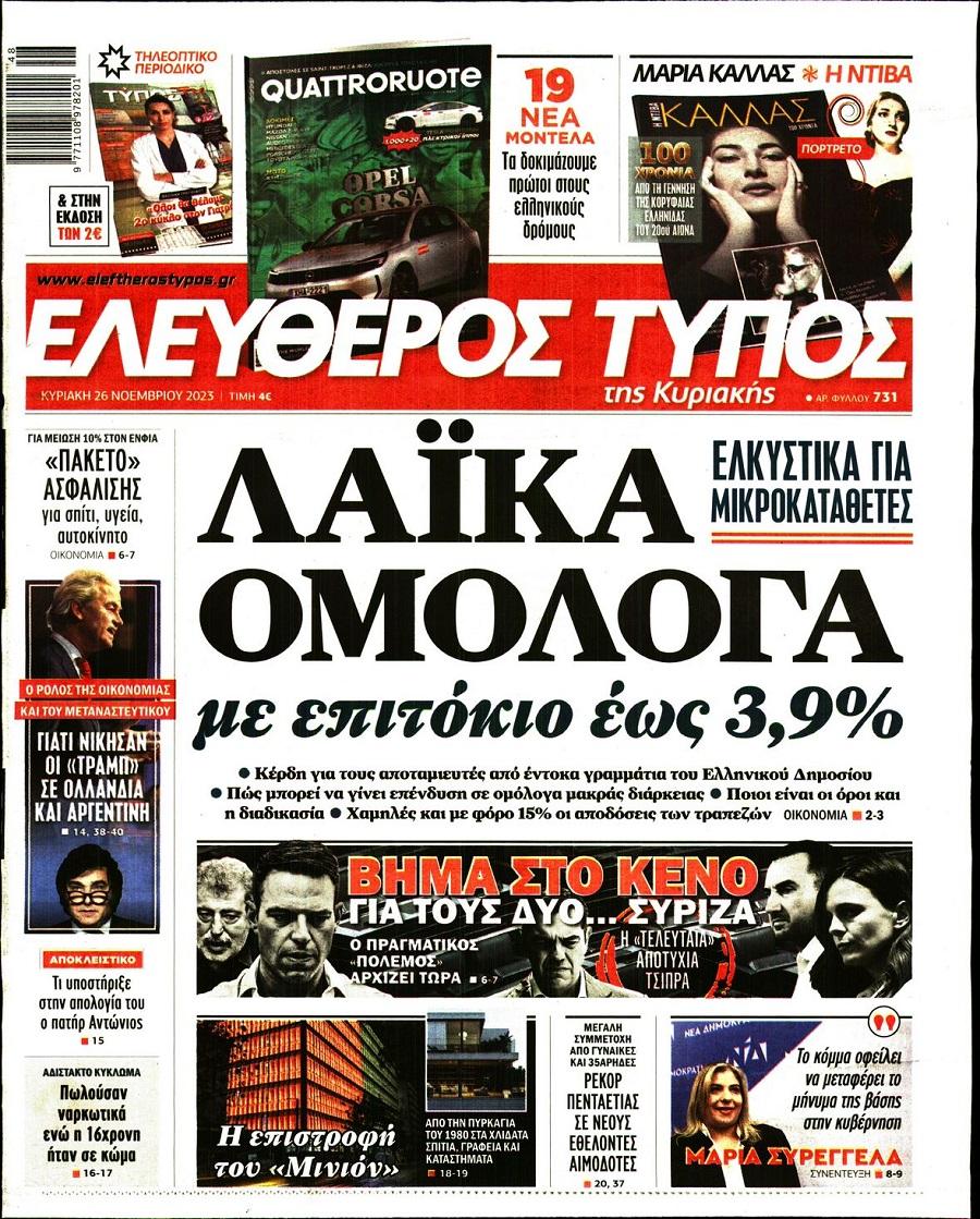Τα πολιτικά πρωτοσέλιδα της ημέρας(26/11)