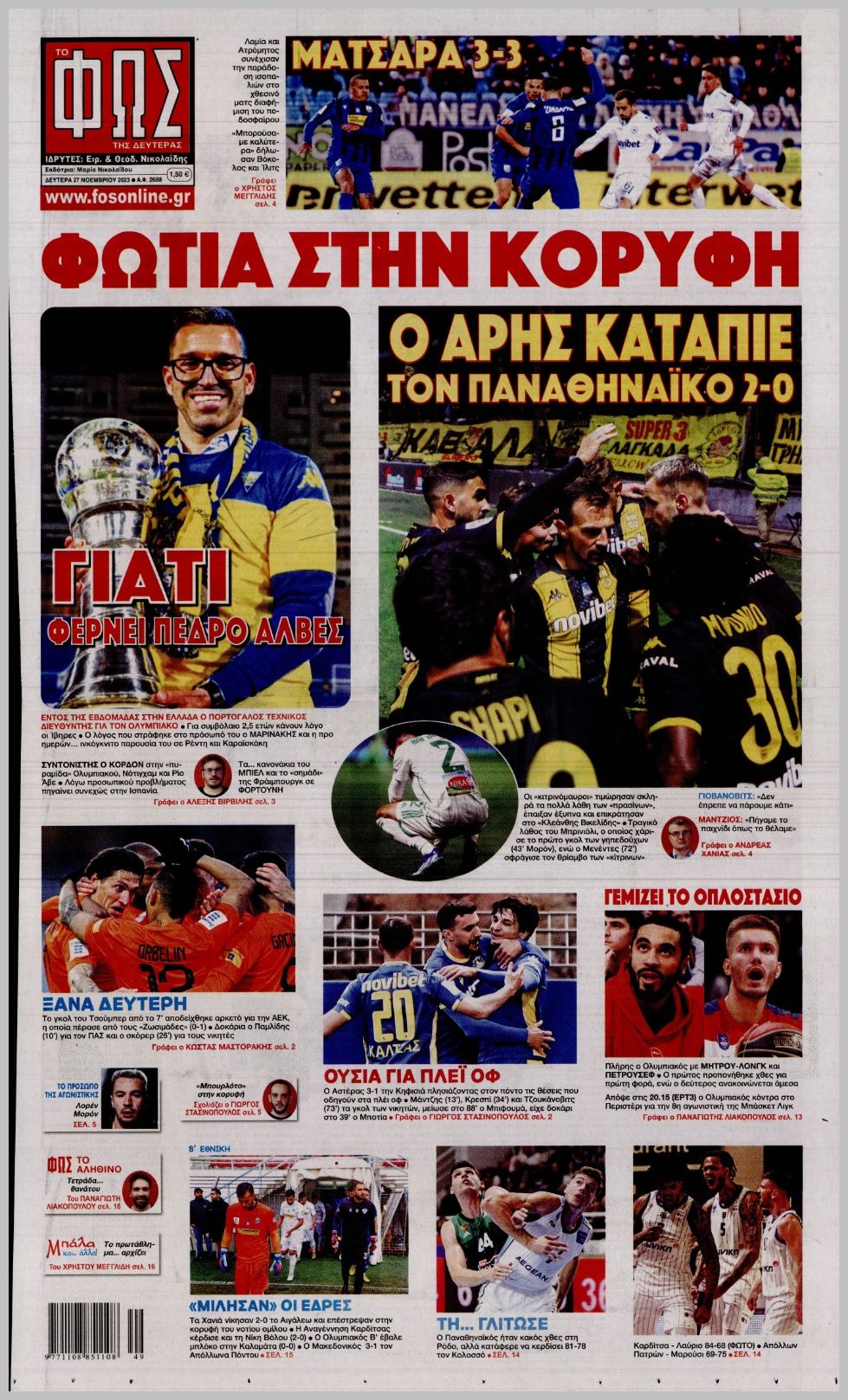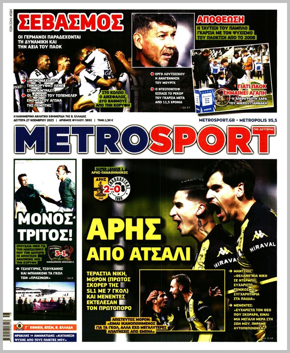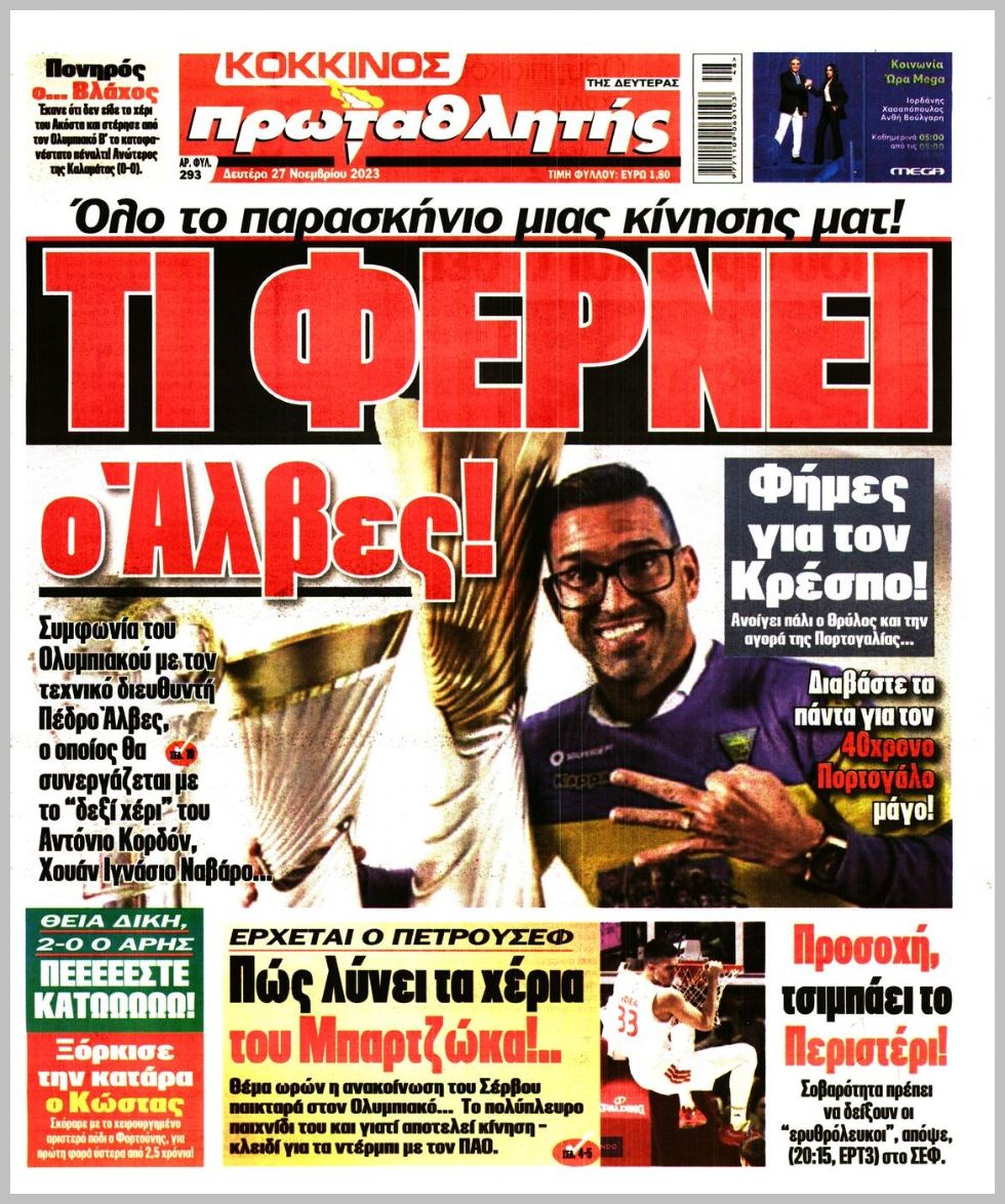 Τα αθλητικά πρωτοσέλιδα της Δευτέρας (27/11)