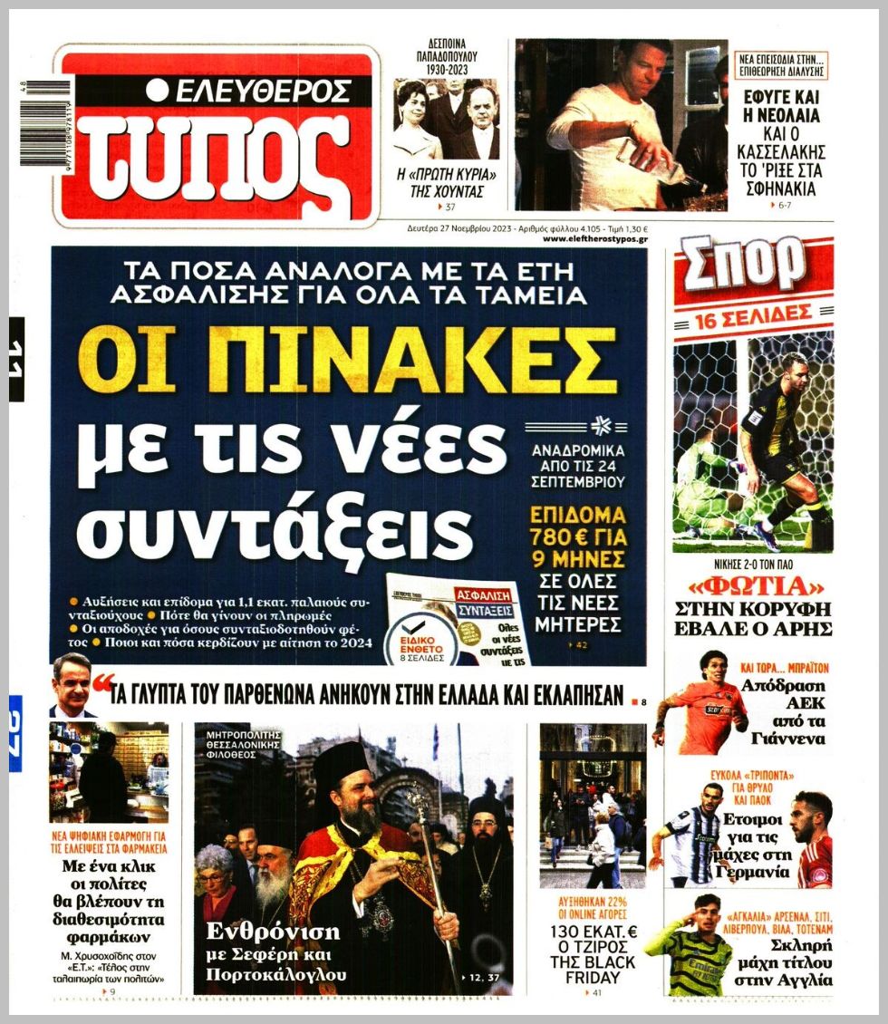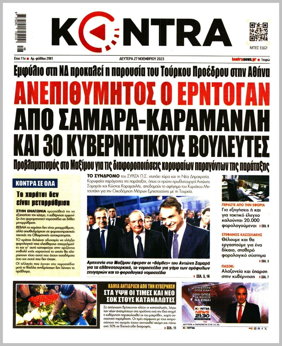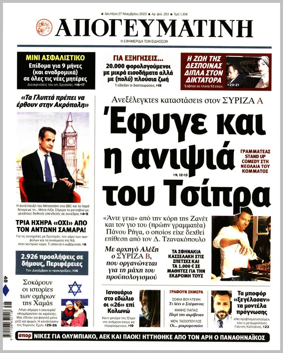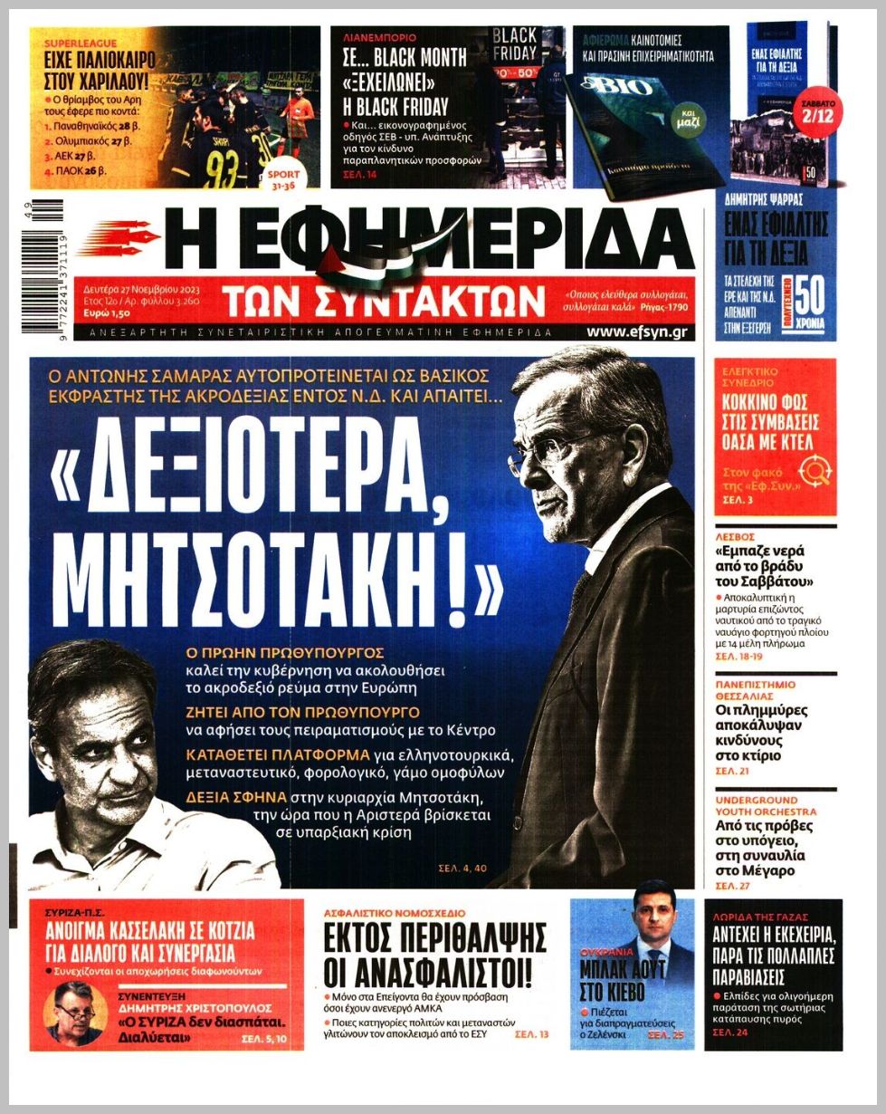 Τα πρωτοσέλιδα των πολιτικών εφημερίδων της Δευτέρας (27/11)