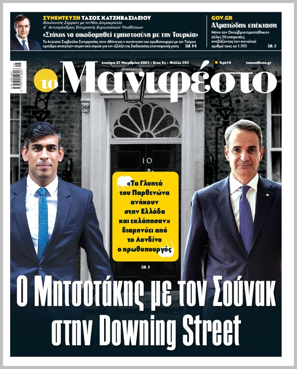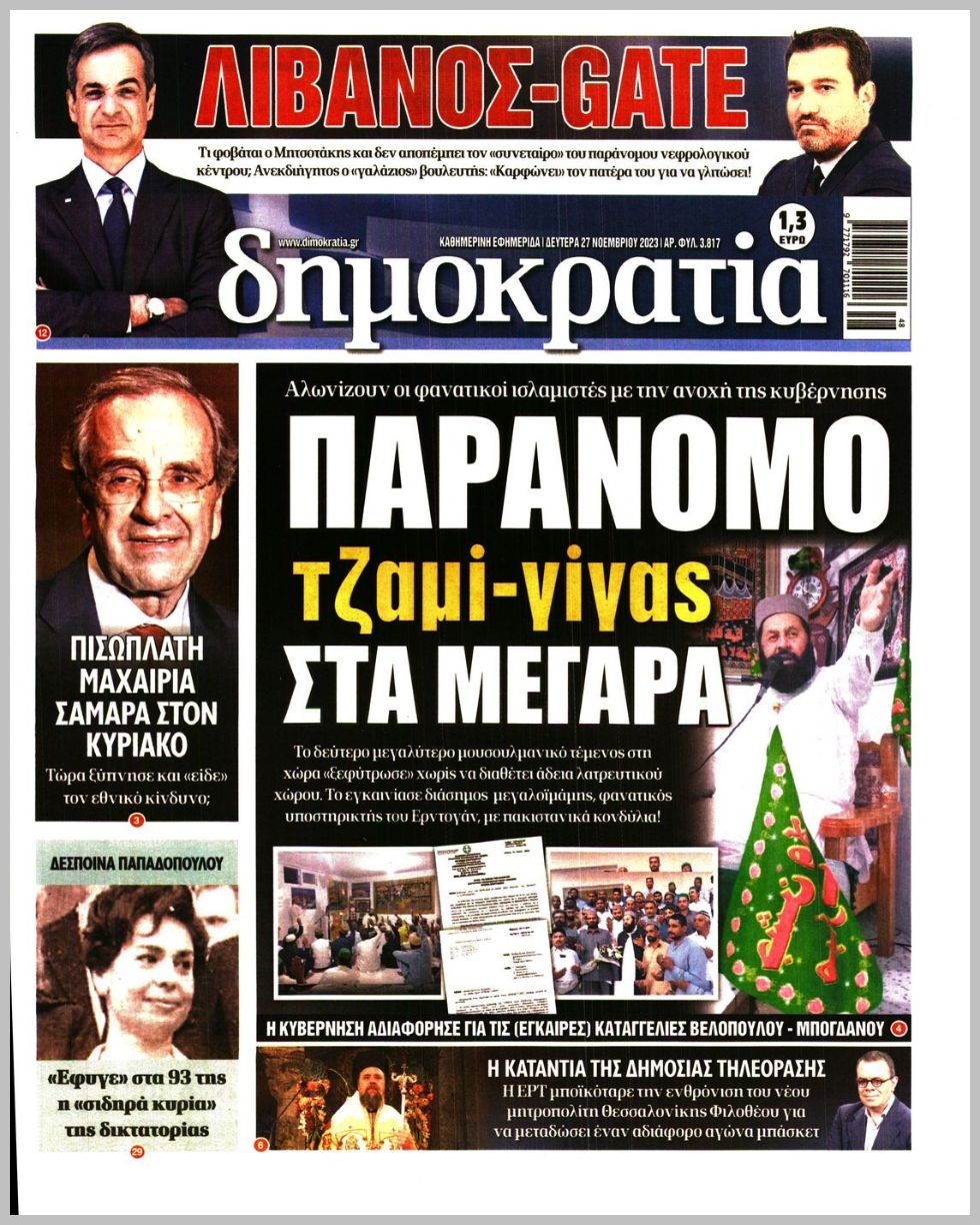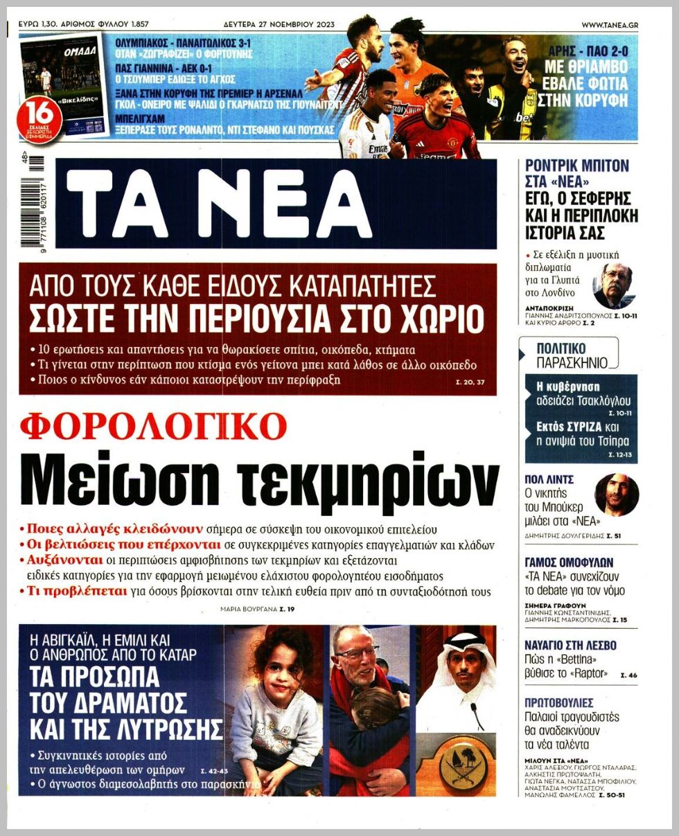 Τα πρωτοσέλιδα των πολιτικών εφημερίδων της Δευτέρας (27/11)