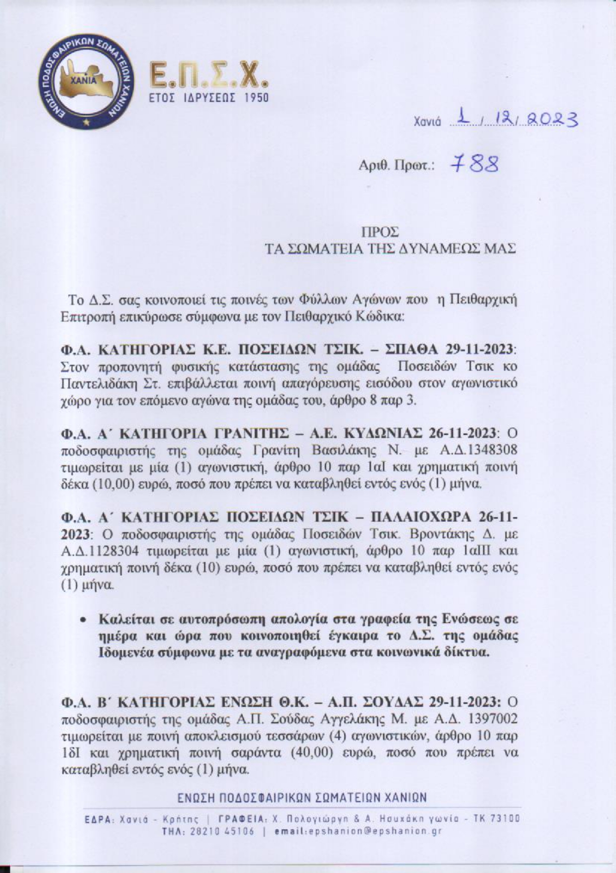 Αναλυτικά οι αποφάσεις της ΕΠΣ Χανίων