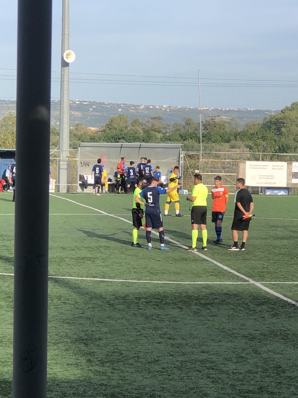 Η Χανιώτικη ομάδα βρέθηκε πίσω στο σκορ με γκολ του Μαρκάκη, όμως κατάφερε να ισοφαρίσει στο 40’ με τον Μαρτσάκη και εν τέλει να κάνει την ολική ανατροπή στο 75ο λεπτό με τον Κεραμιανάκη και να πάρει το τρίποντο.
