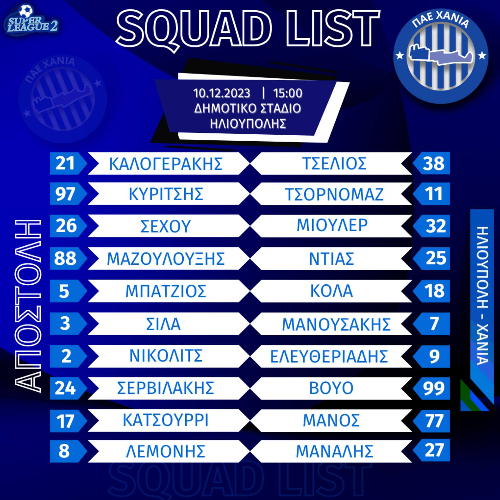 Την αποστολή απαρτίζουν οι εξής ποδοσφαιριστές: Κυρίτσης, Καλογεράκης, Μπάτζιος, Σέχου, Μαζουλουξής, Κατσούρρι, Νίκολιτς, Σερβιλάκης, Σιλά, Τσορνομάζ, Λεμονής, Τσέλιος, Ντίας, Ελευθεριάδης, Κόλα, Μανουσάκης, Μιούλερ, Μάνος, Βουό, Μάναλης