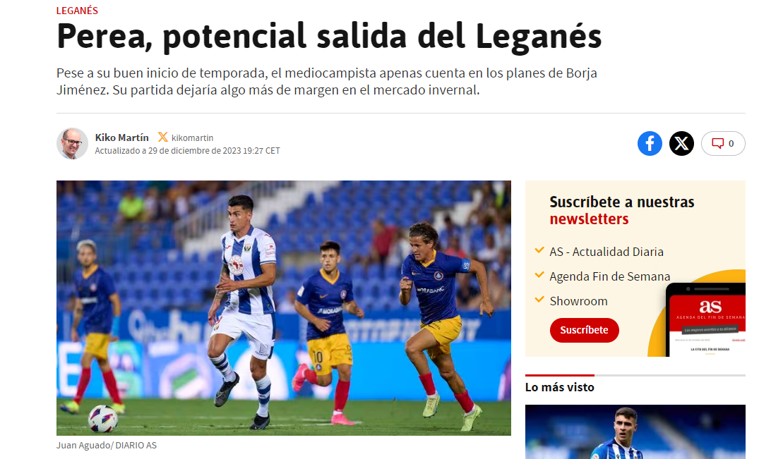 Στο ρεπορτάζ τονίζεται ότι ο Περέα αγωνίζεται σε μία θέση που η Λεγκανές δεν έχει πολλές λύσεις, όμως ο Χιμένεθ δεν τον έχει στα πλάνα του και δεν αποκλείεται να… μετράει μέρες στον Ισπανικό σύλλογο.