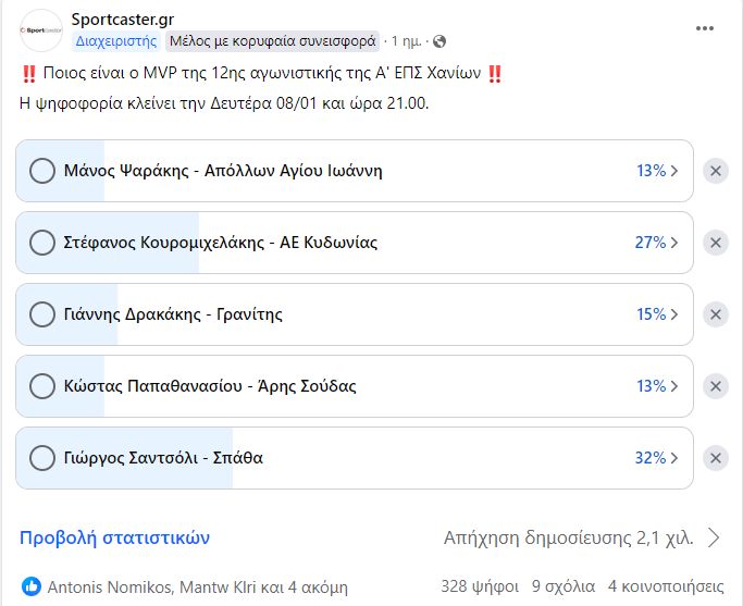 Τα αποτελέσματα της ψηφοφορίας του sportcaster.gr για την 12η αγωνιστική: