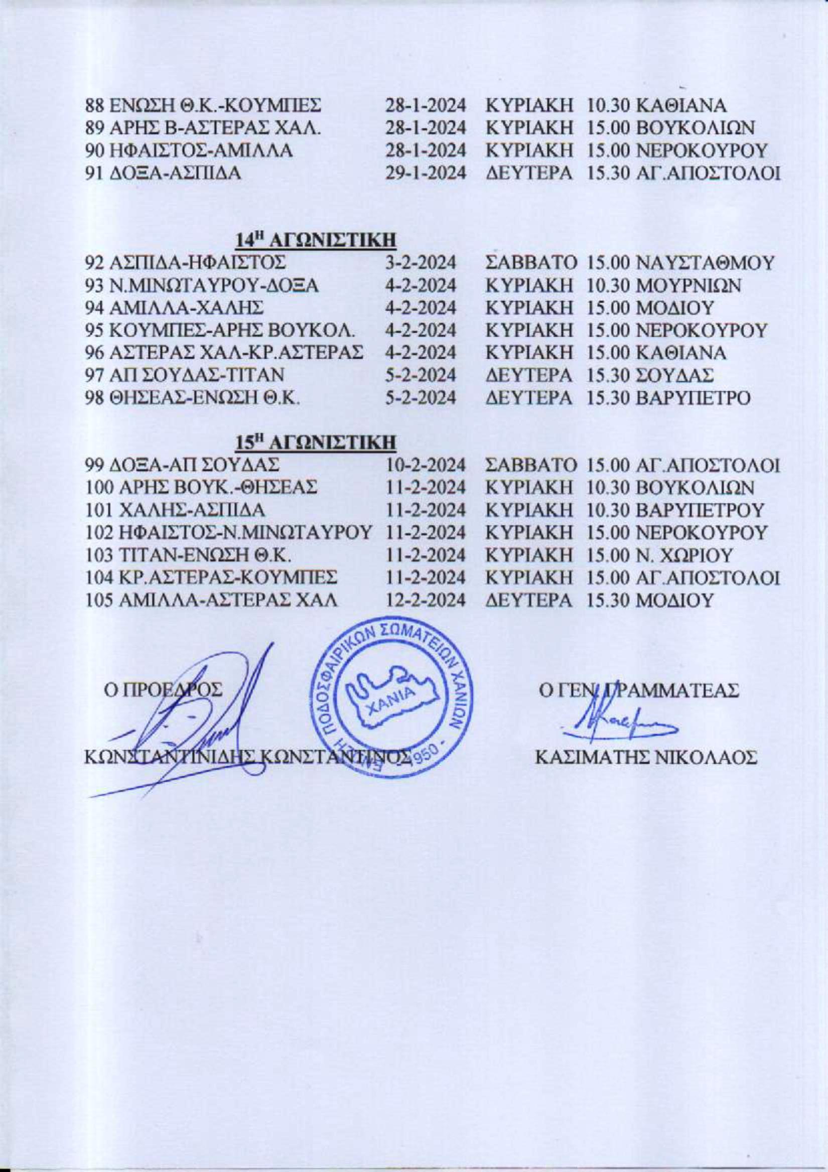 Ανακοινώθηκε το πρόγραμμα της Β’ ΕΠΣΧ από την 11η έως και την 15η αγωνιστική