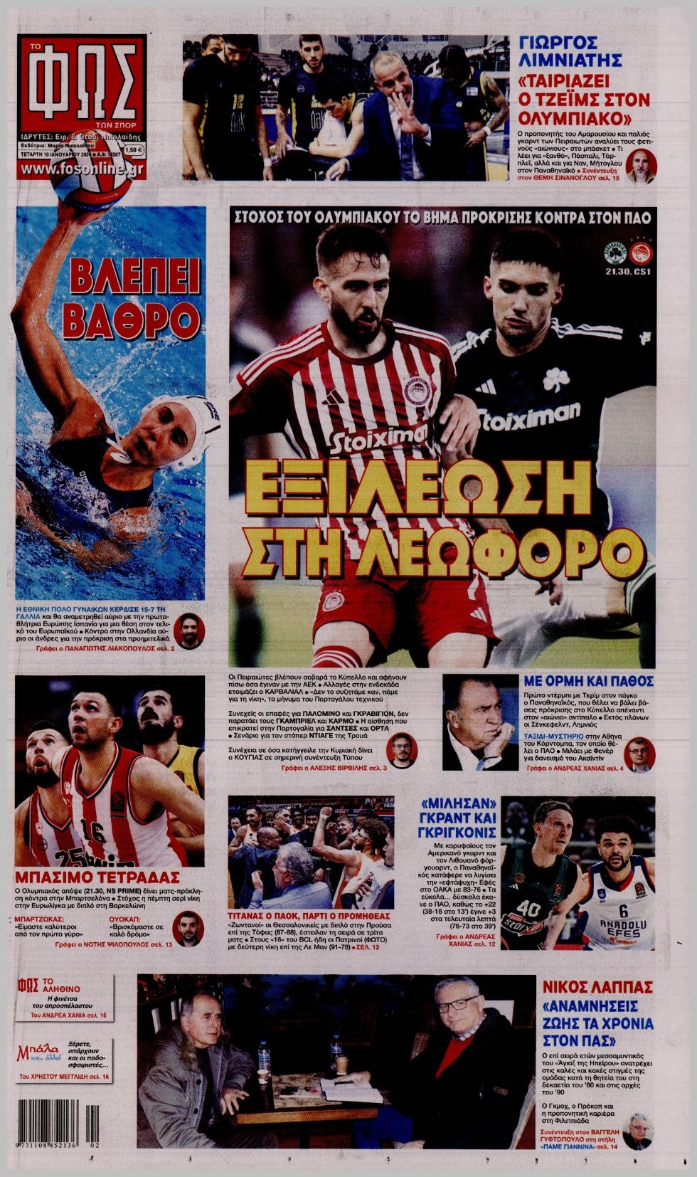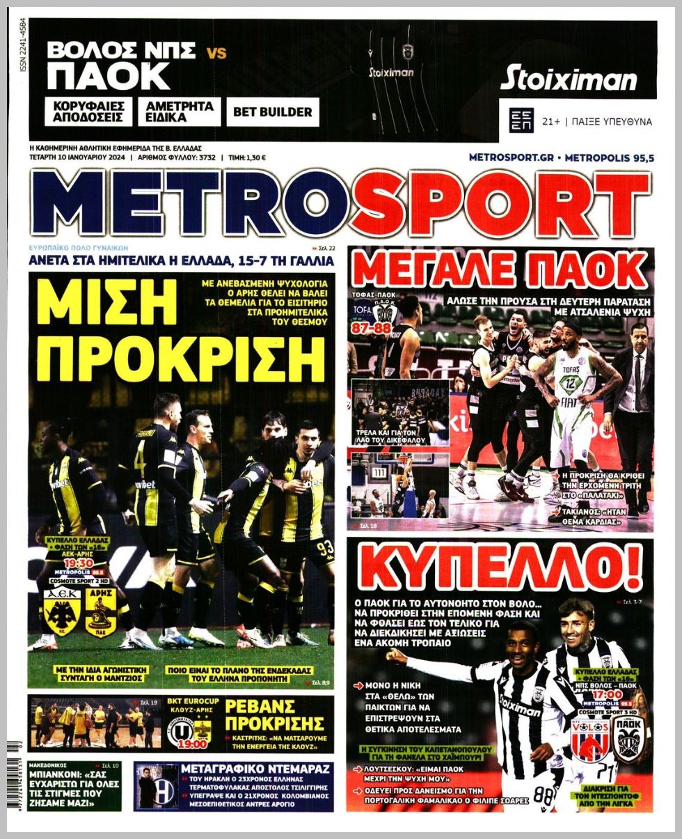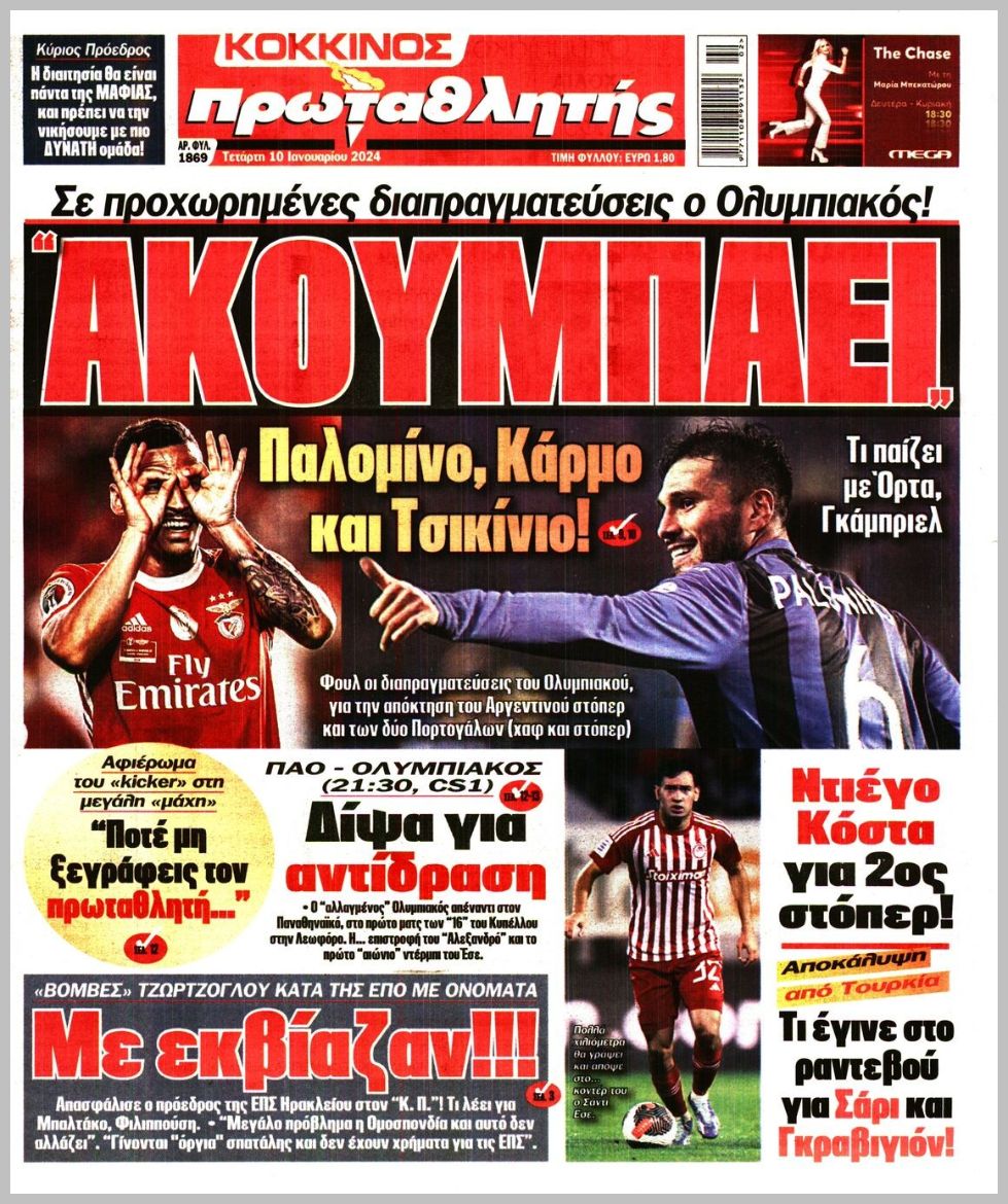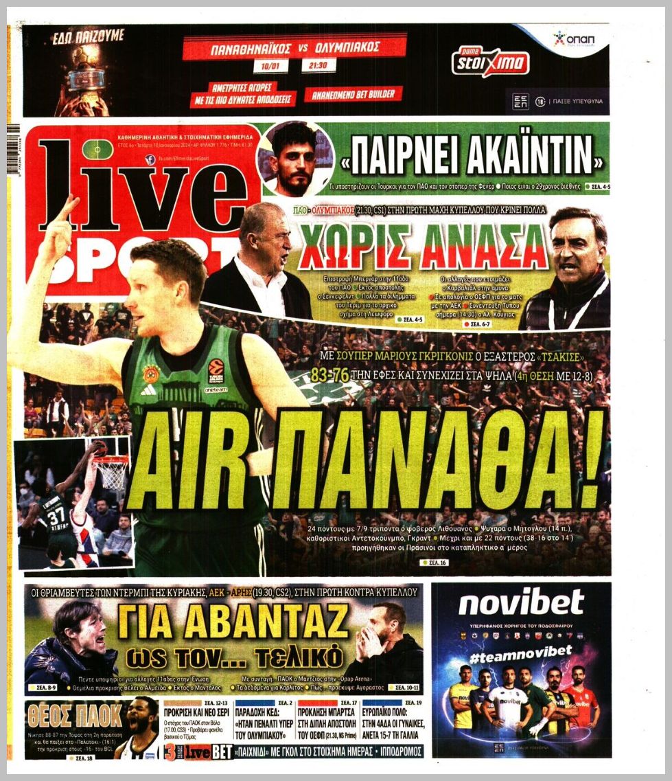 Τα αθλητικά πρωτοσέλιδα της Τετάρτης (10/1)