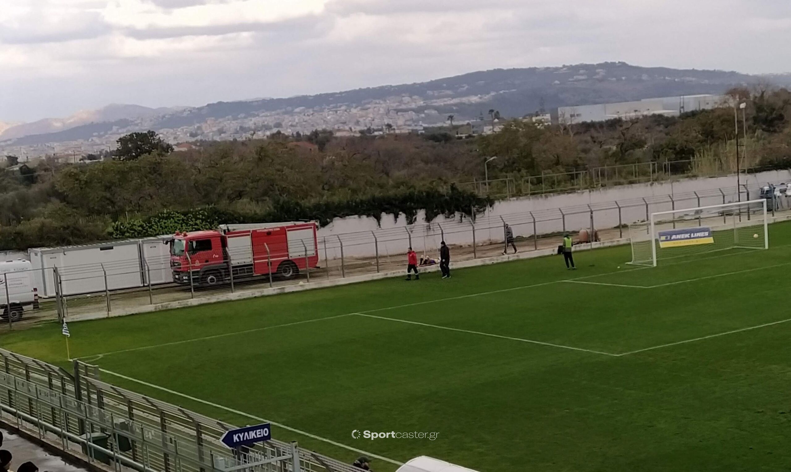 Ο επιθετικός της ομάδας χτύπησε μόλις στο 4ο λεπτό της αναμέτρησης και πέρασε εκτός αγωνιστικού χώρου με φορείο, ενώ στη συνέχεια τον παρέλαβε ασθενοφόρο προκειμένου να τον μεταφέρει στο νοσοκομείο Χανίων για να λάβει τις πρώτες βοήθειες.
