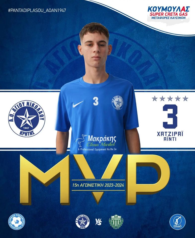 Έπειτα από την σχετική ψηφοφορία στην οποία συμμετείχαν οι φίλοι της ομάδες του Αγίου Νικολάου  μέσω της σελίδας στο facebook  για την ανάδειξη του πολυτιμότερου παίκτη στον εντός έδρας αγώνα με Περαμαϊκό (10/01/24), τον τίτλο του MVP κέρδισε ο Άιντι Χατζιράι, κάτι που το κατάφερε για πρώτη φορά στη σεζόν.