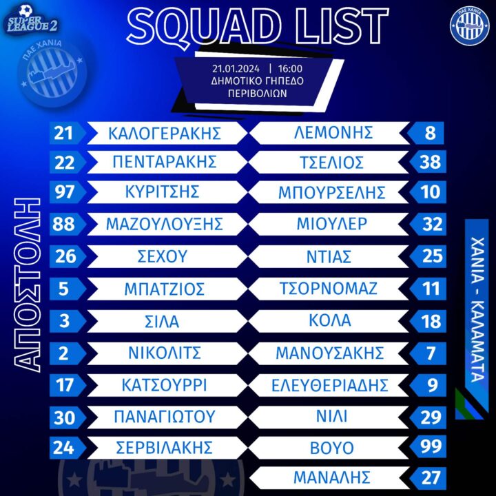 Πάνοπλα τα Χανιά κόντρα στην Καλαμάτα – Με 23 παίκτες η αποστολή