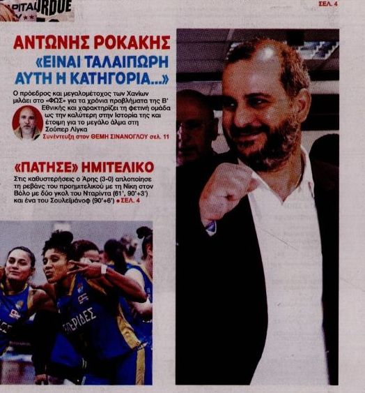 Περισσότερα μπορείτε να διαβάσετε στο σημερινό φύλλο της εφημερίδας, η οποία μάλιστα φιλοξενεί την συνέντευξη Ροκάκη στο πρωτοσέλιδό της.
