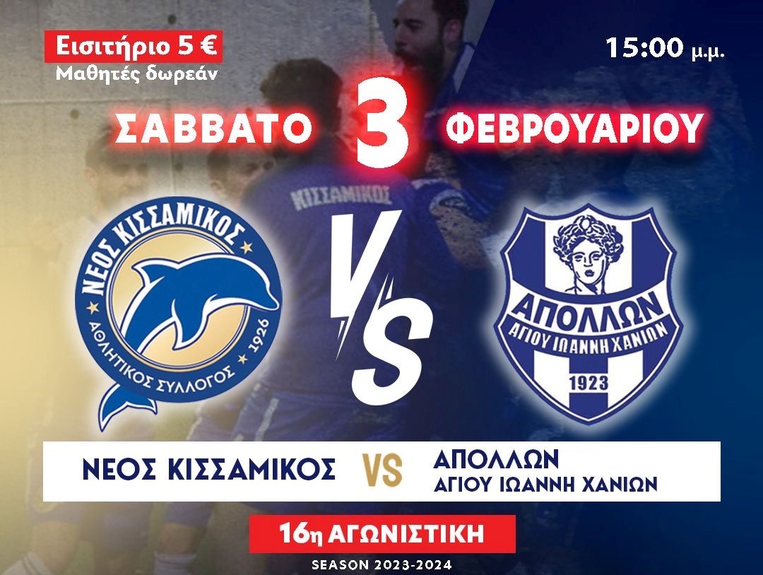Η διοίκηση του Νέου Κισσαμικού έκανε γνωστό πως τα έσοδα του αγώνα με τον Απόλλωνα  για την 16η αγωνιστική θα δωθούν για την οικονομική ενίσχυση του Βαγγέλη Παγωνάκη.