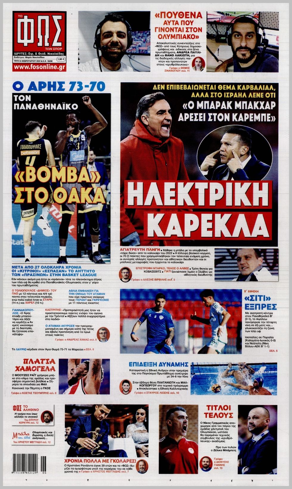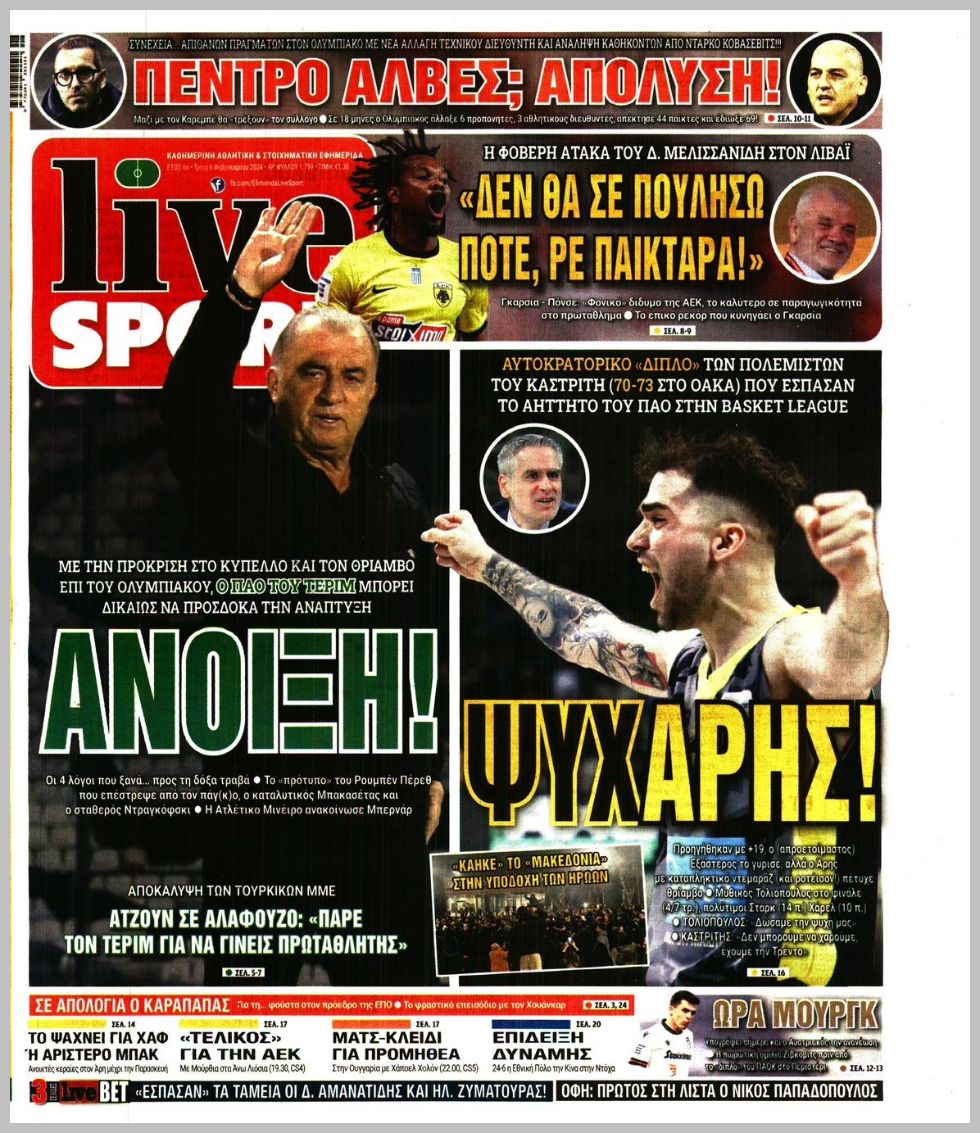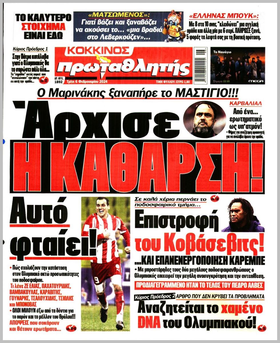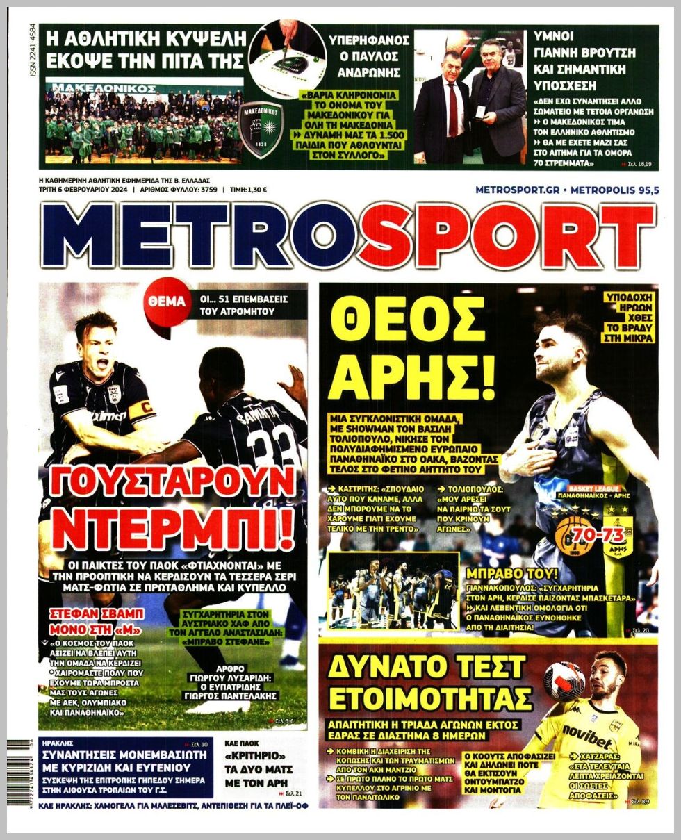 Τα αθλητικά πρωτοσέλιδα της Τρίτης (6/2)