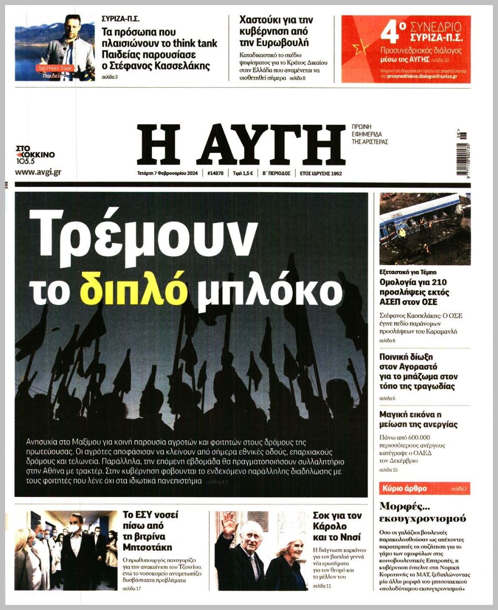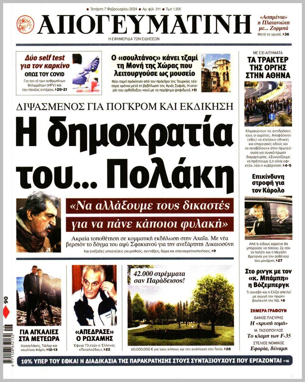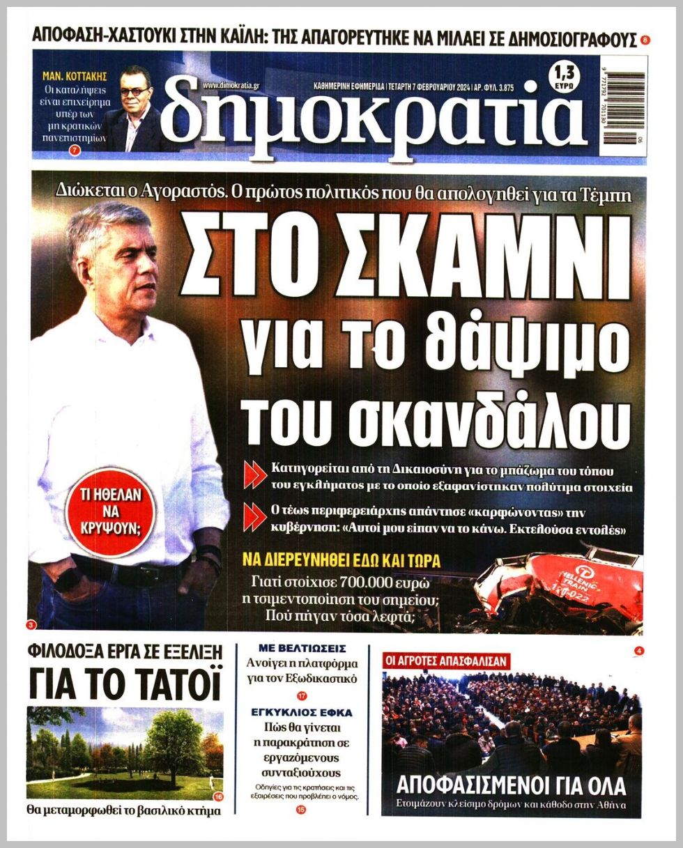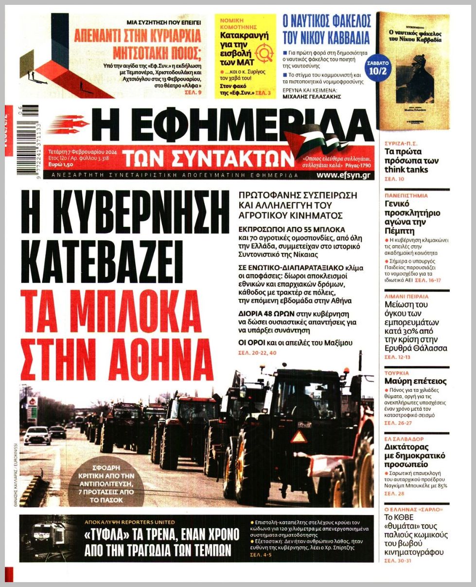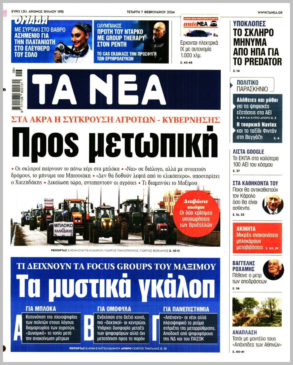 Τα πρωτοσέλιδα των πολιτικών εφημερίδων της Τετάρτης (7/2)