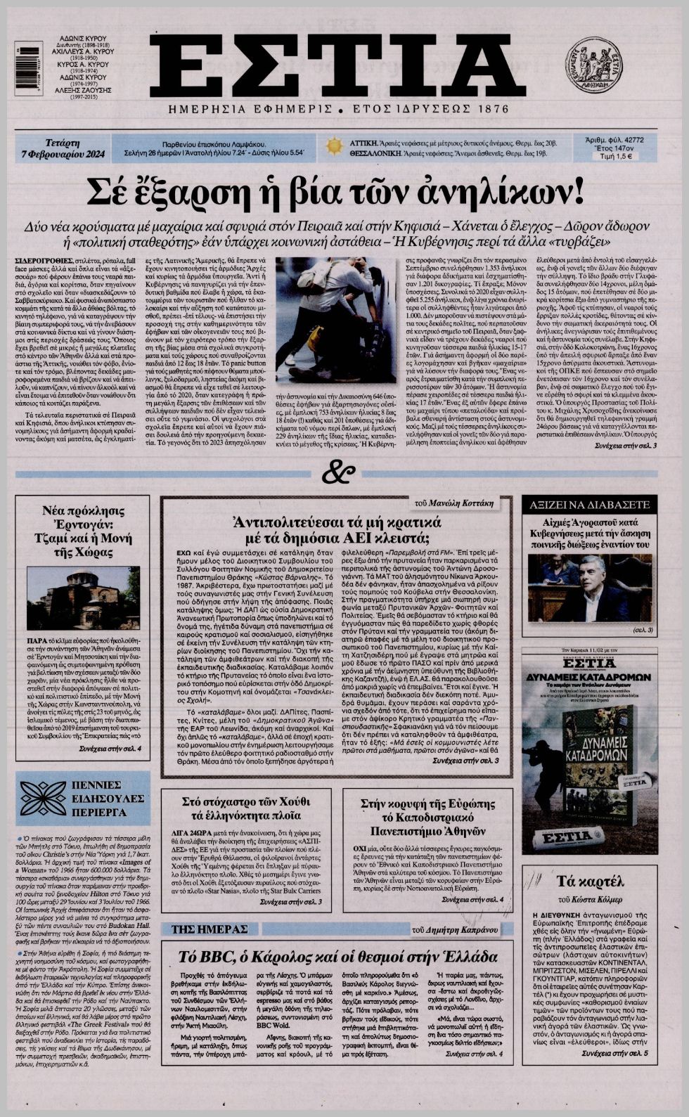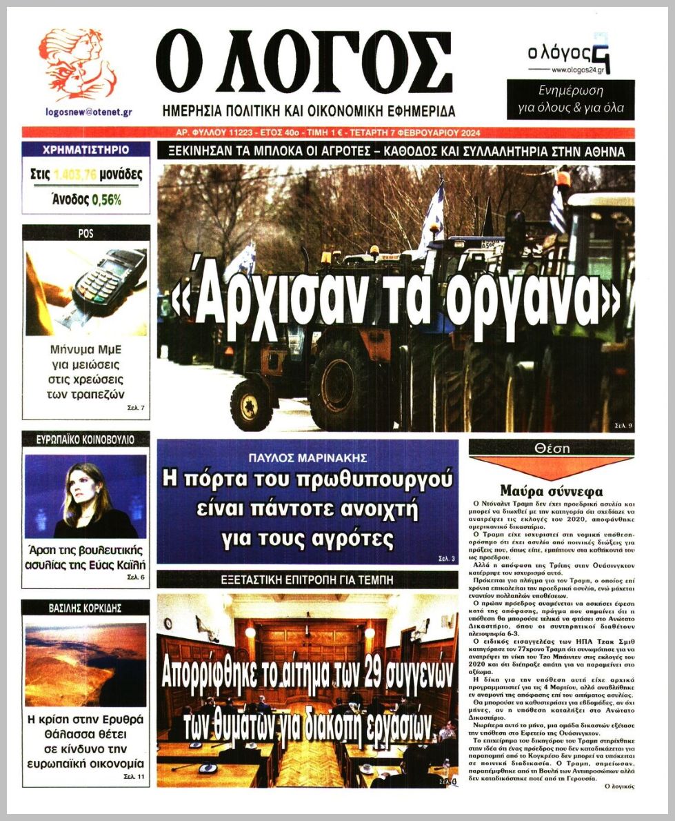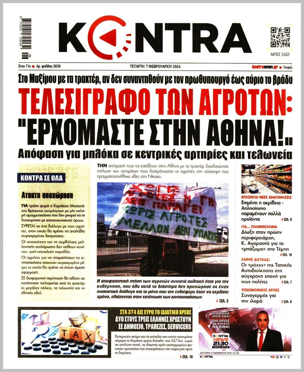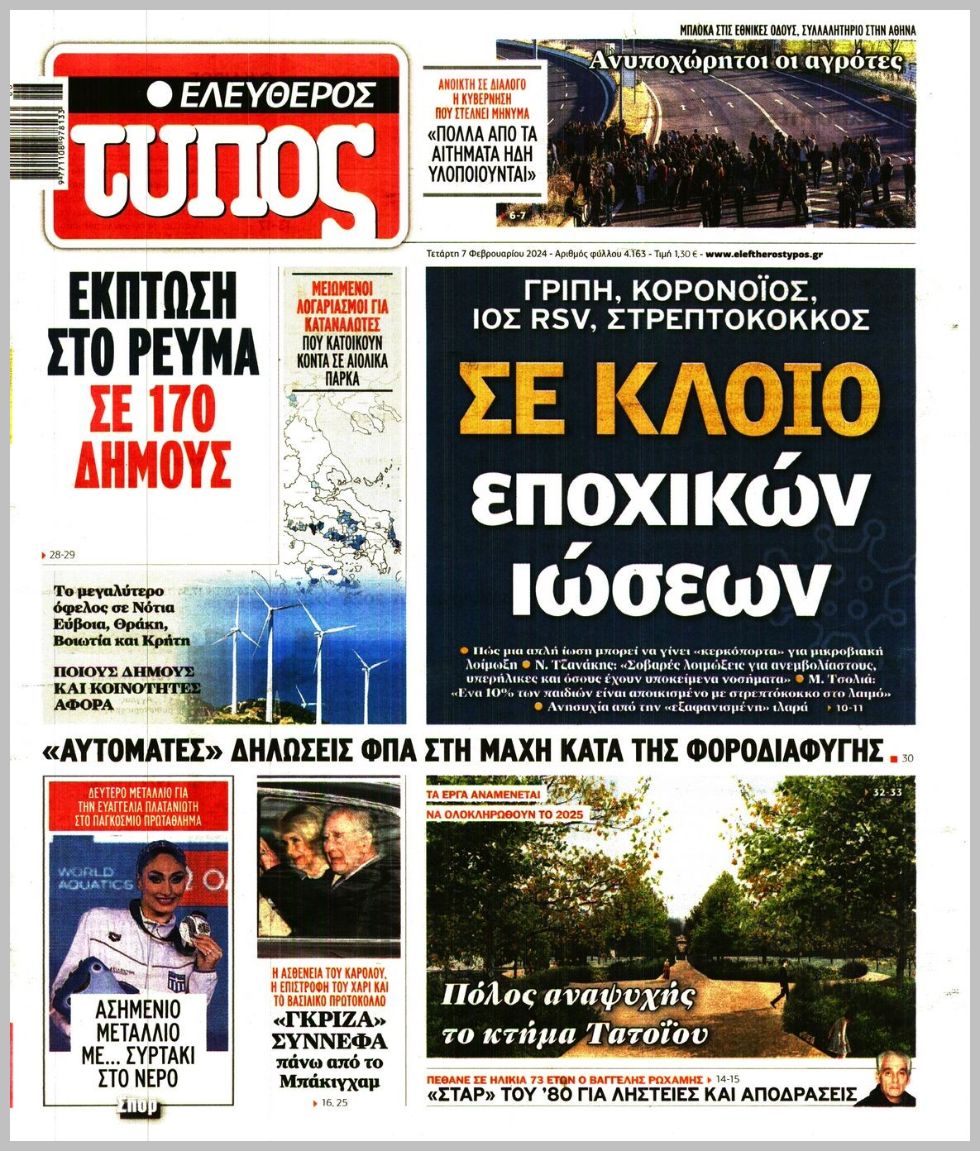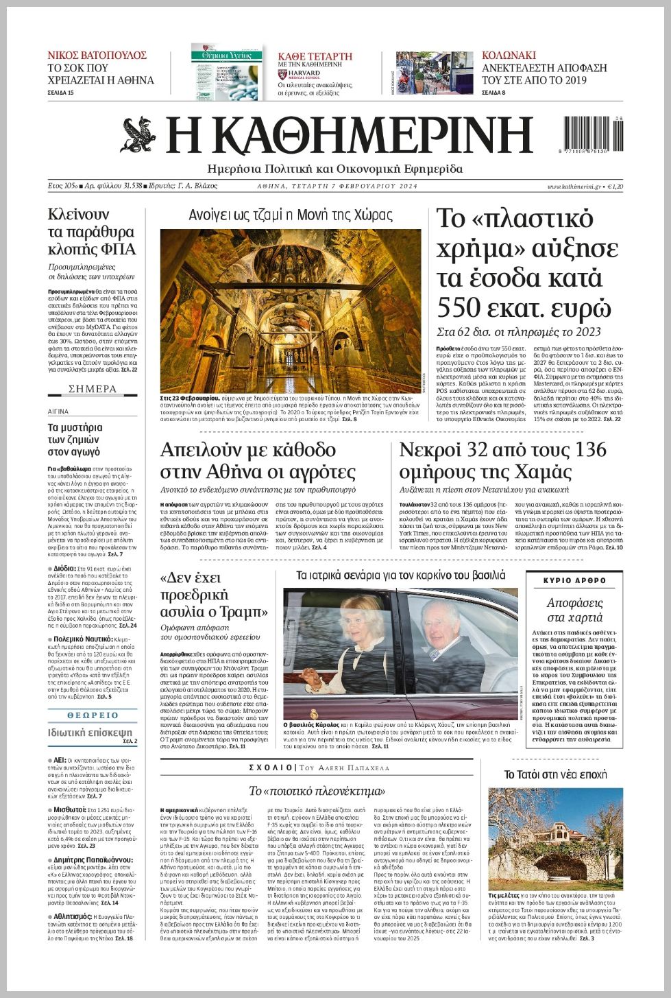 Τα πρωτοσέλιδα των πολιτικών εφημερίδων της Τετάρτης (7/2)