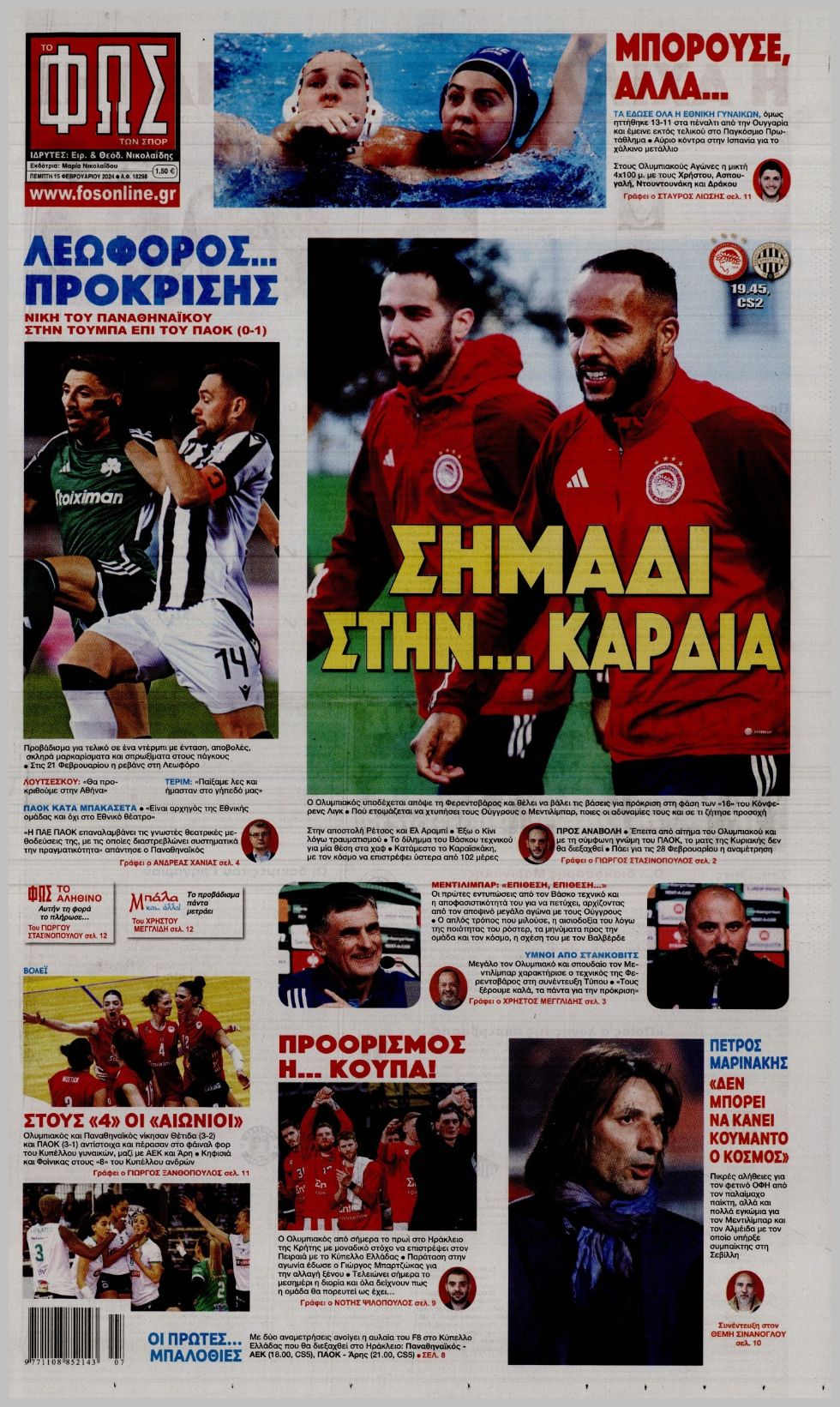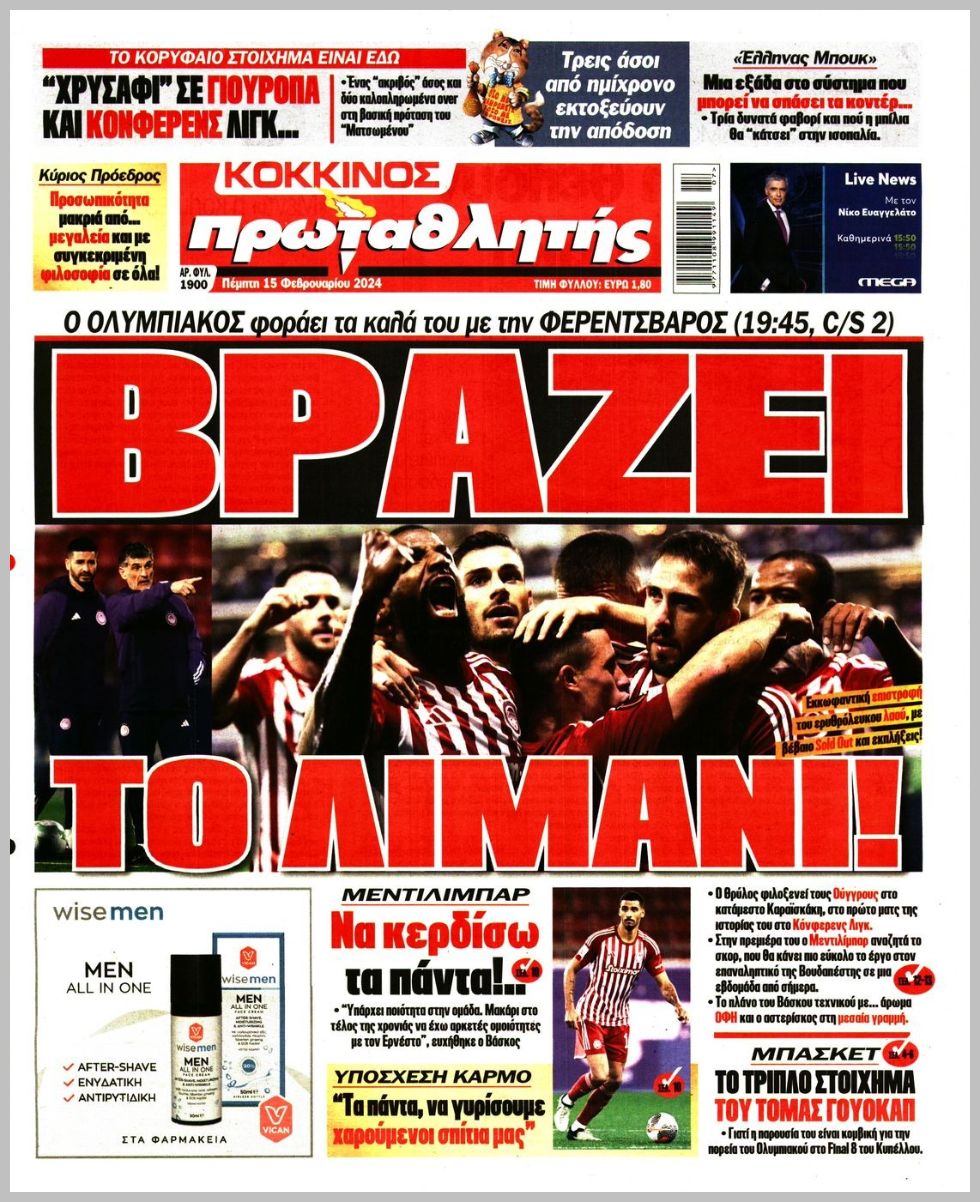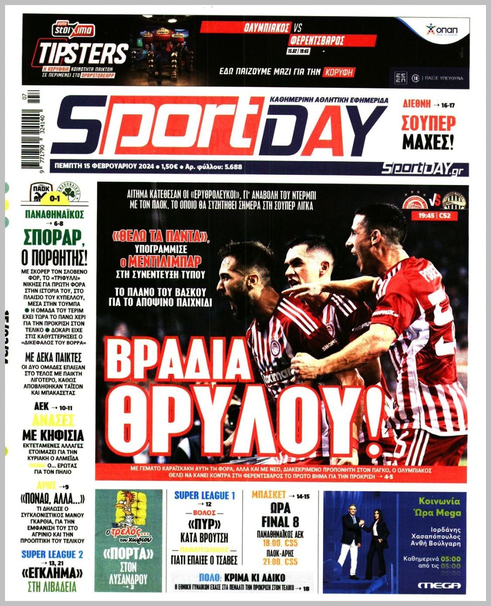 Τα αθλητικά πρωτοσέλιδα της Πέμπτης (15/2)