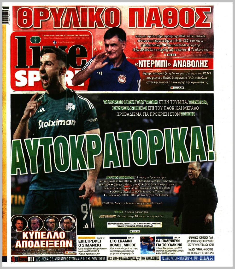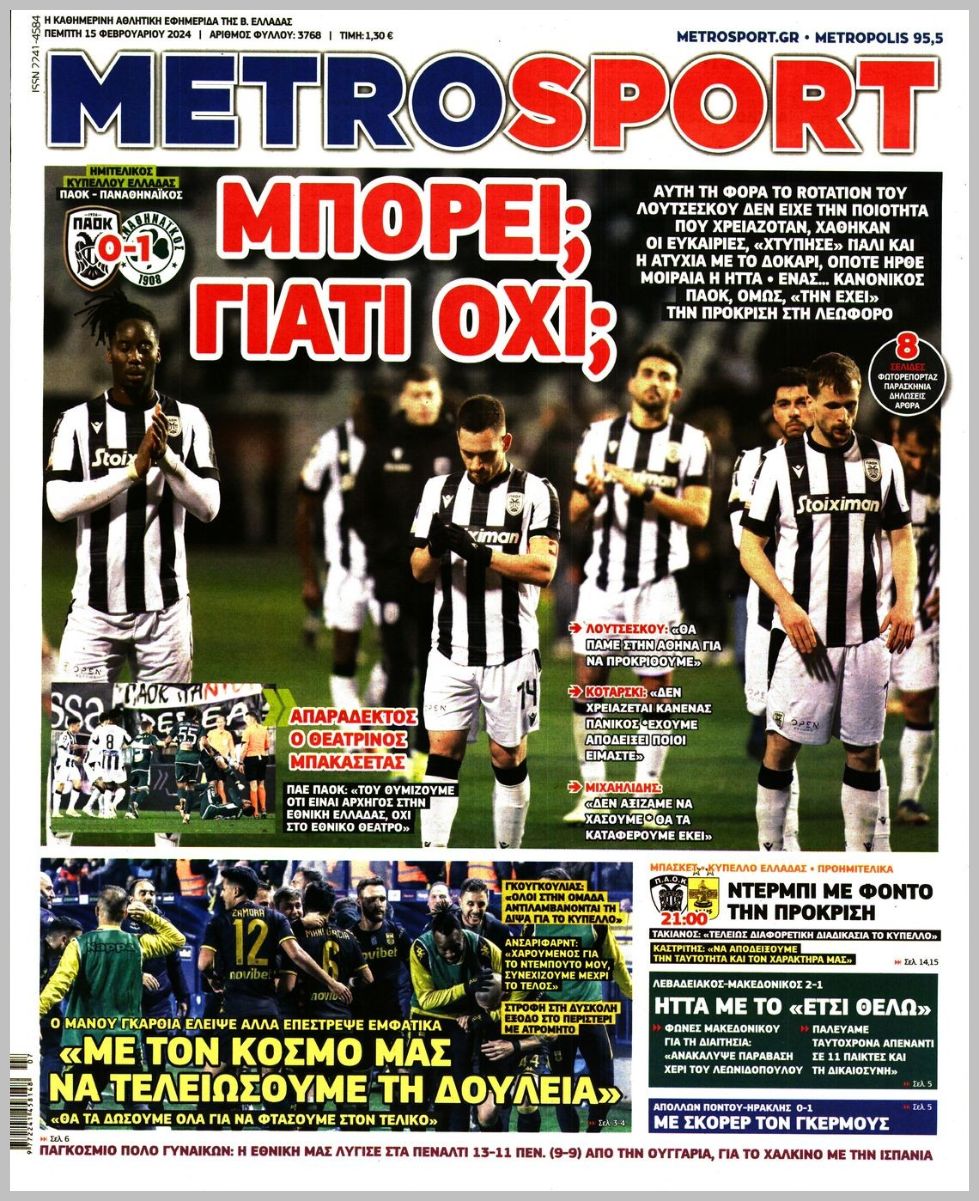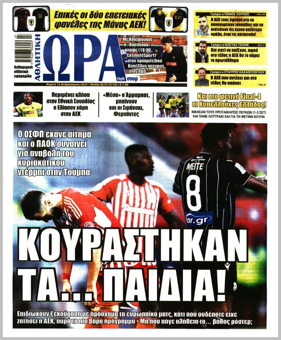Τα αθλητικά πρωτοσέλιδα της Πέμπτης (15/2)