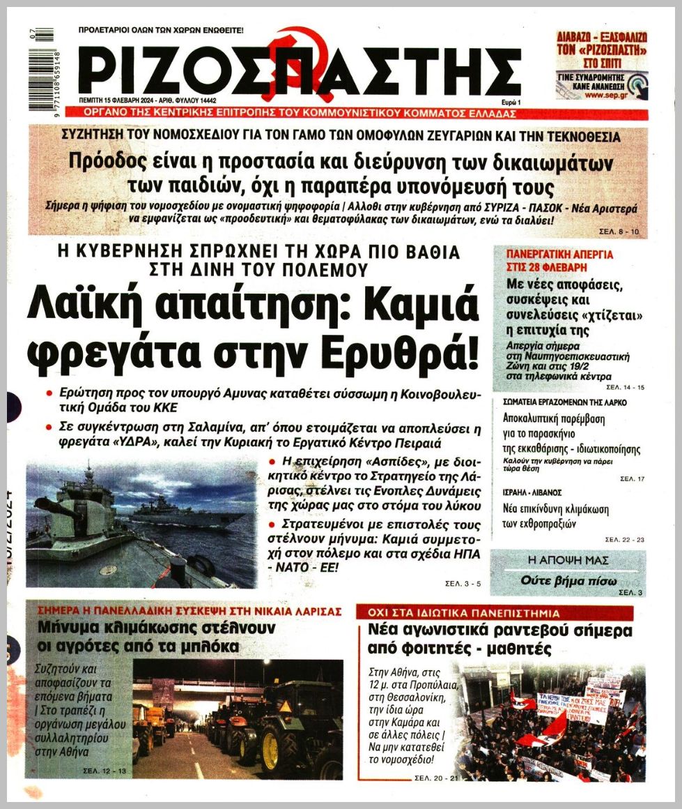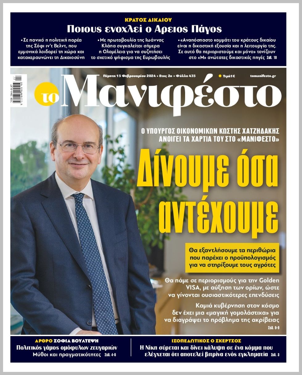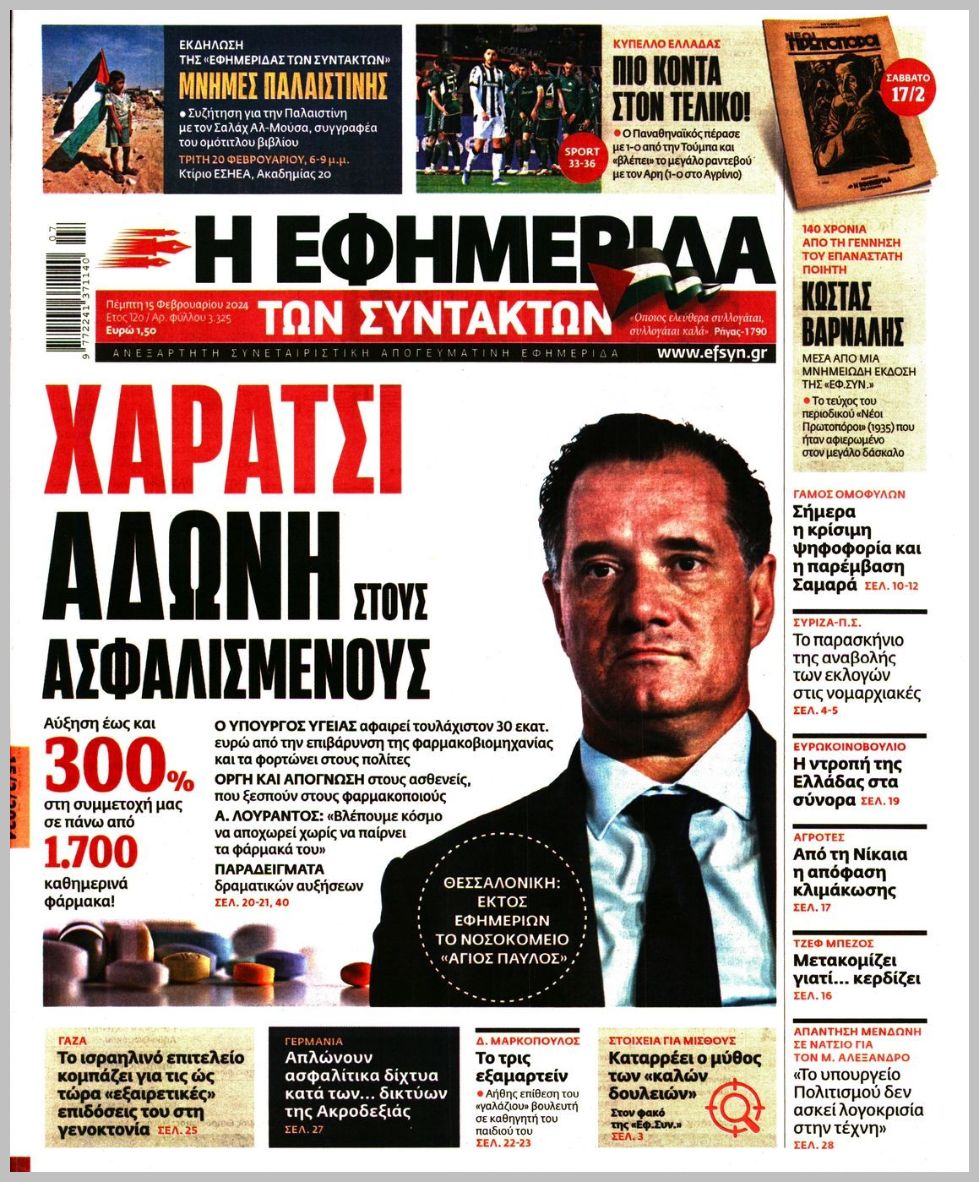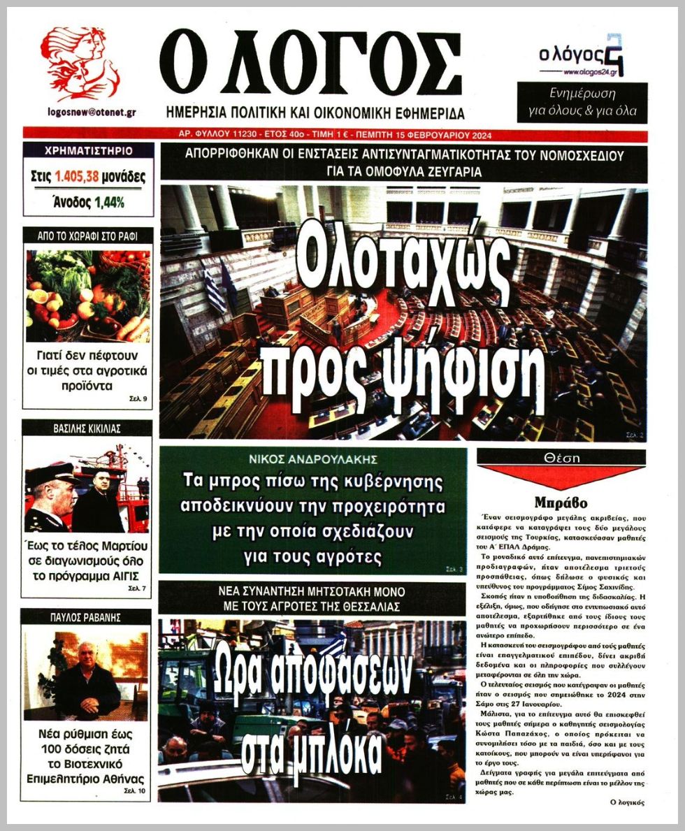 Τα πρωτοσέλιδα των πολιτικών εφημερίδων της Πέμπτης (15/2)