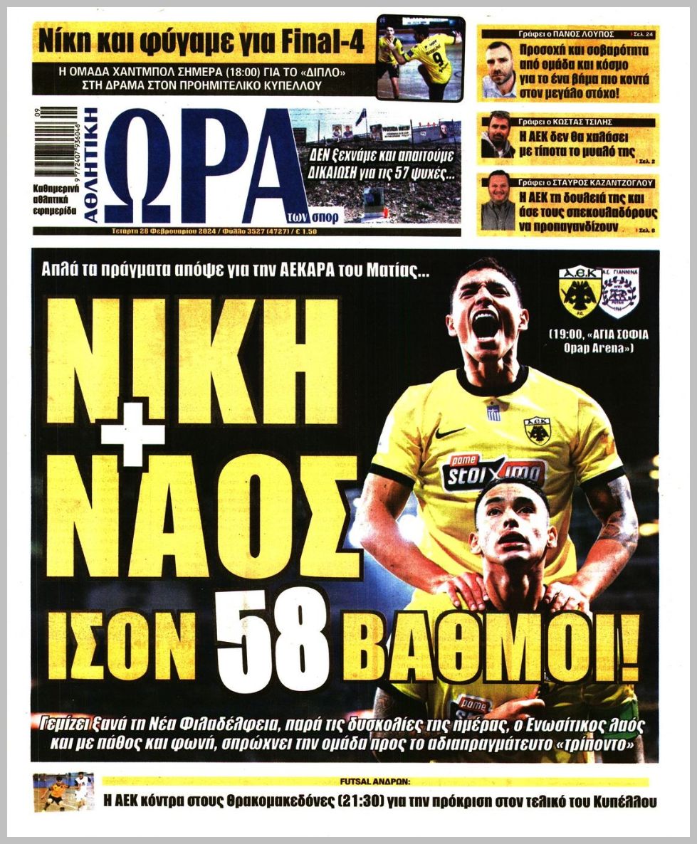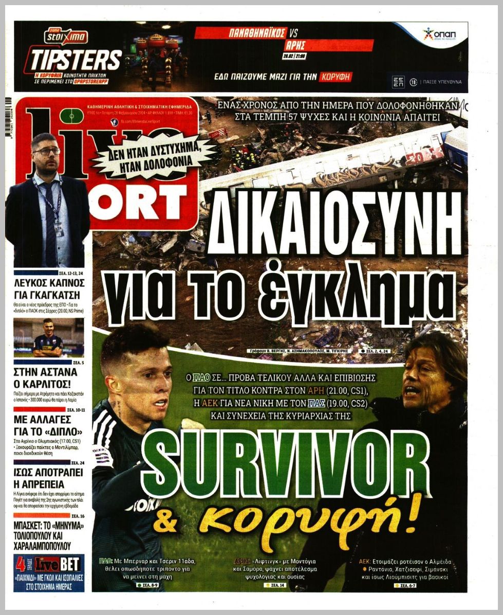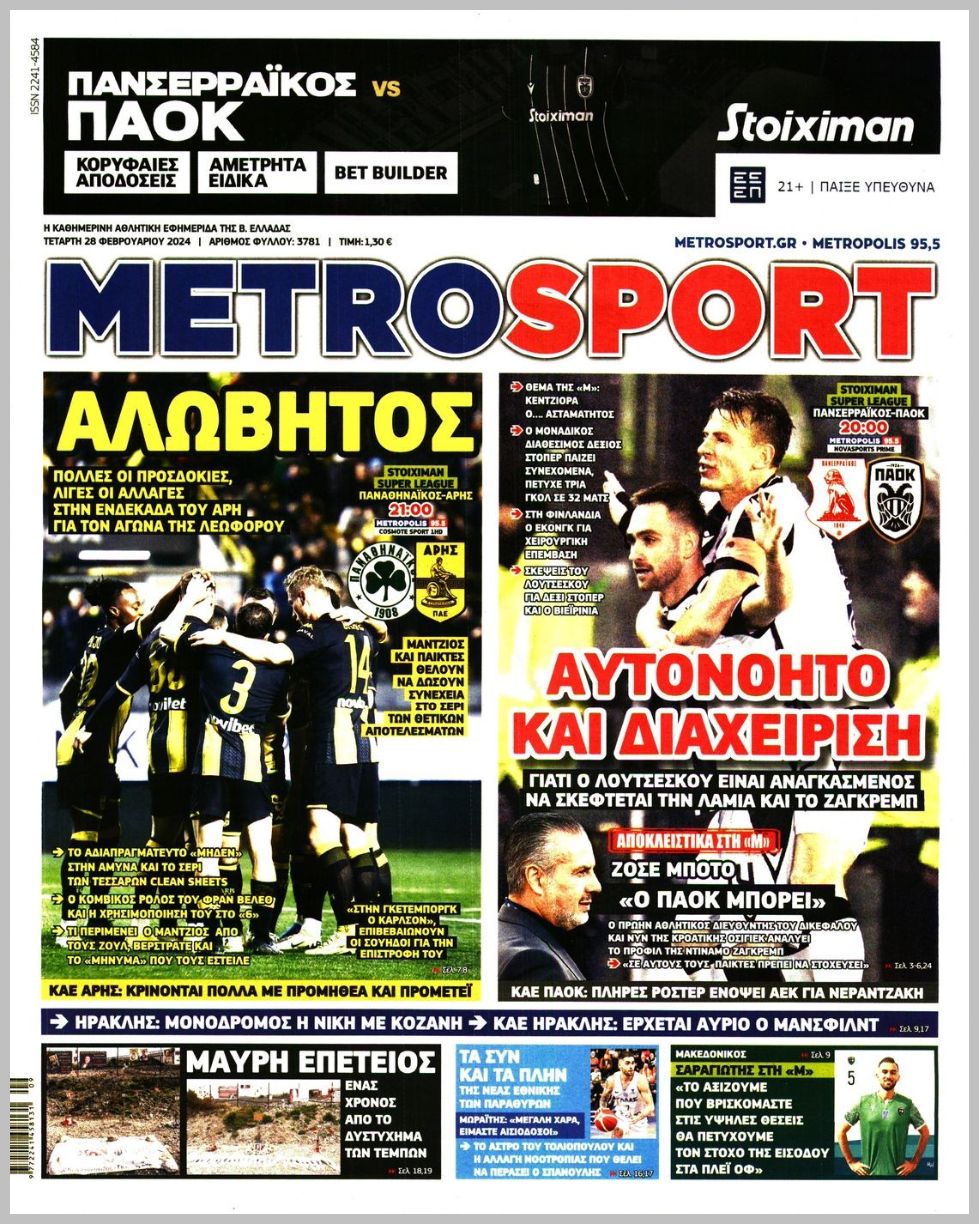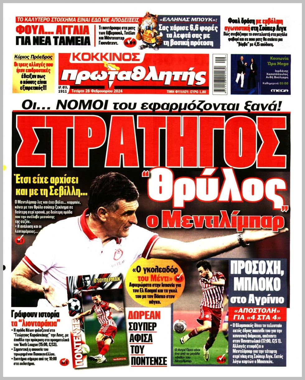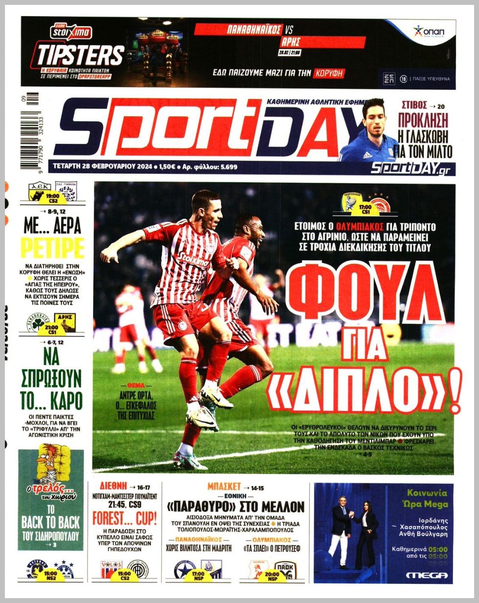 Τα αθλητικά πρωτοσέλιδα της Τετάρτης (28/2)