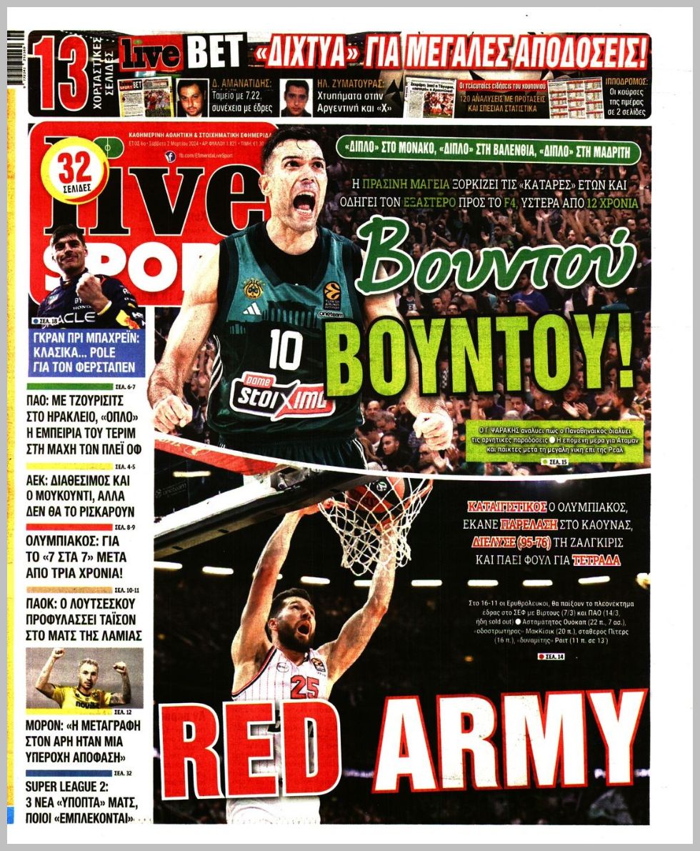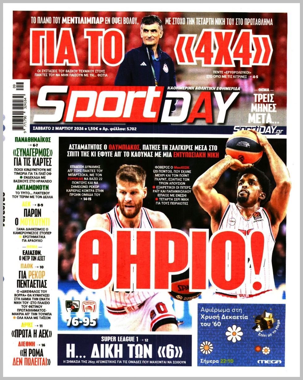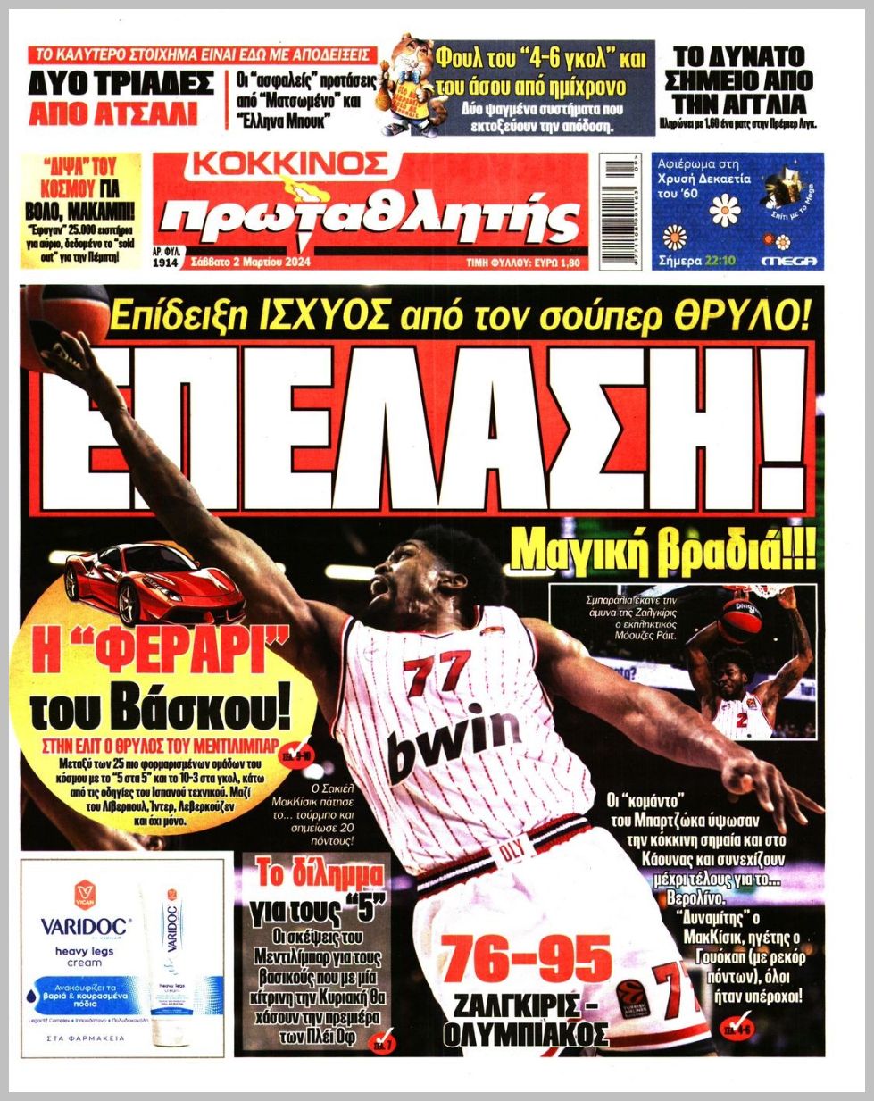 Τα αθλητικά πρωτοσέλιδα του Σαββάτου (2/3)