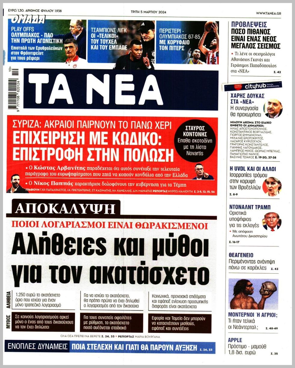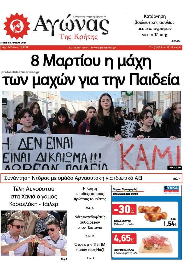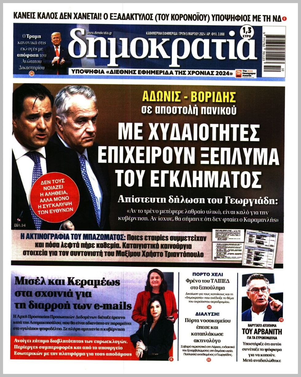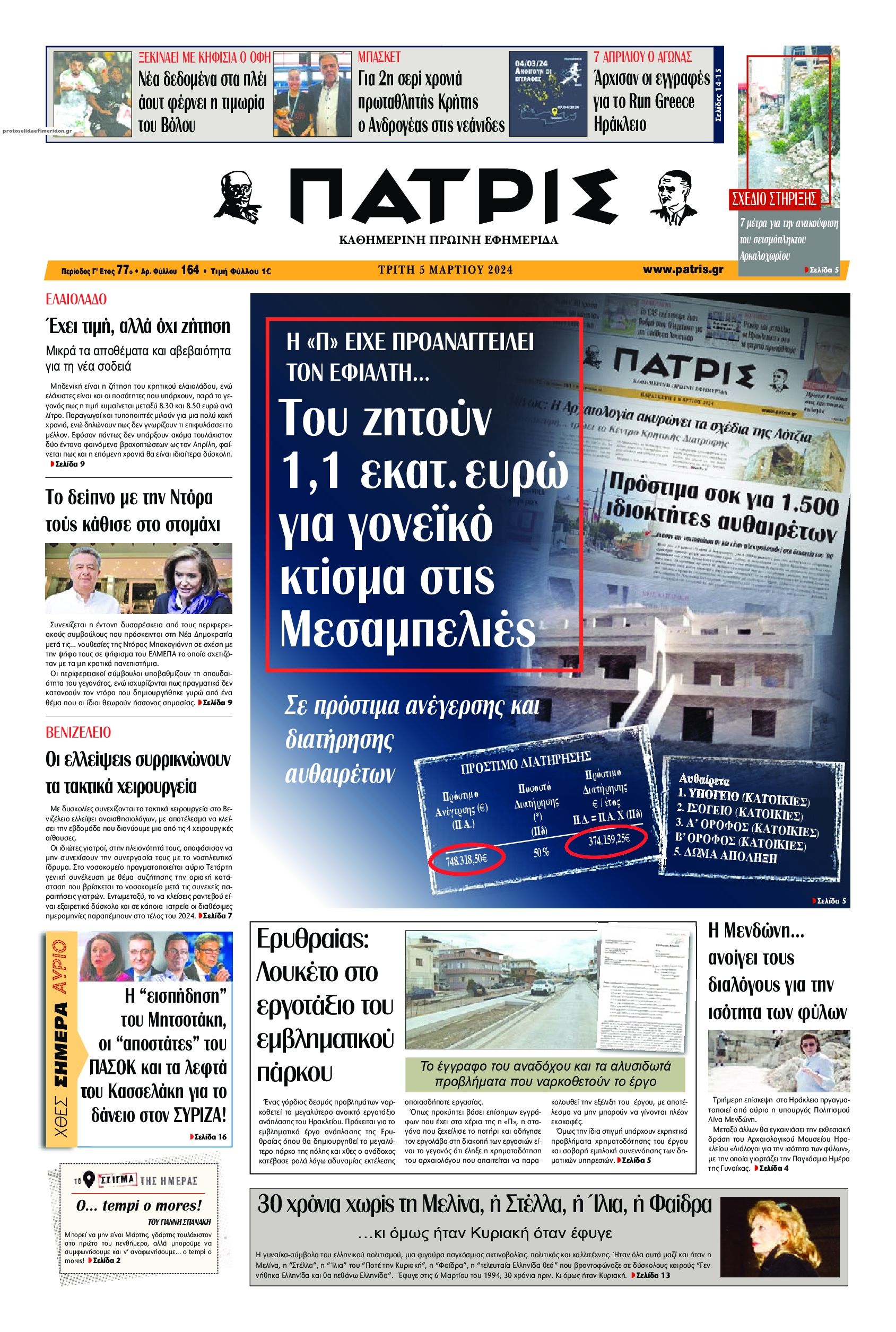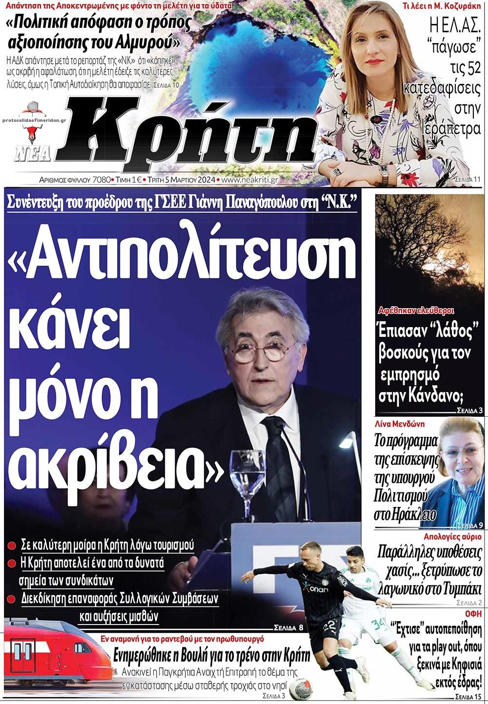 Τα πρωτοσέλιδα των πολιτικών εφημερίδων σε Κρήτη και Αθήνα της Τρίτης (5/3)