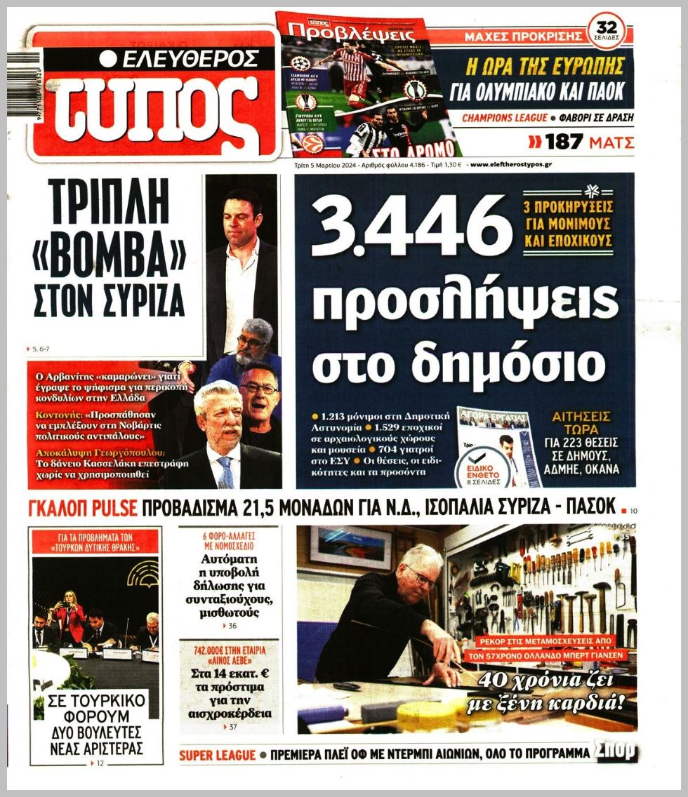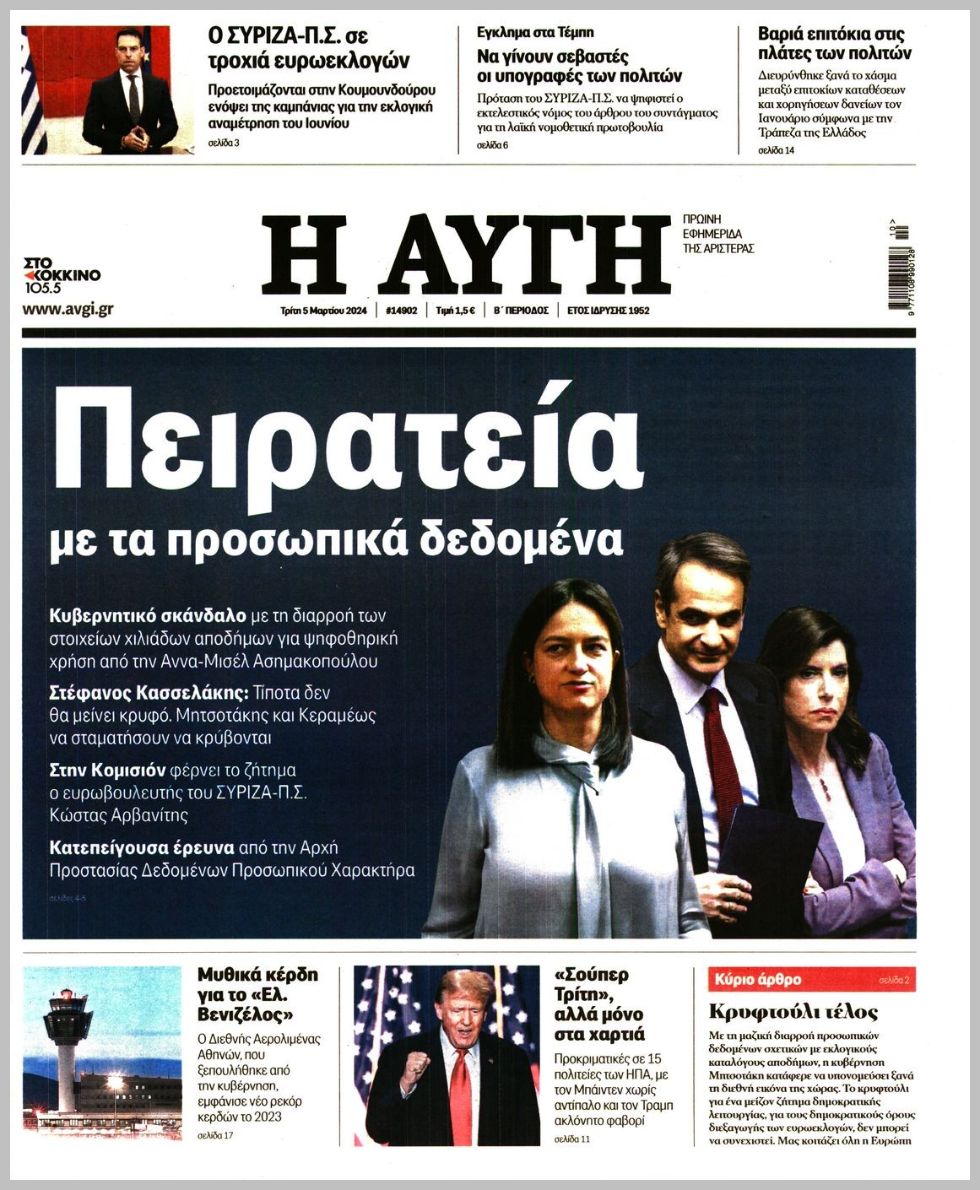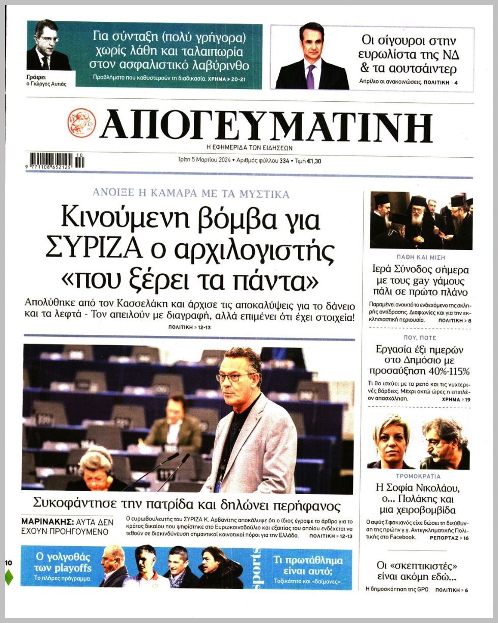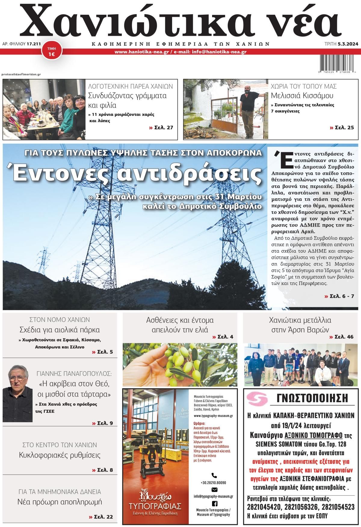 Τα πρωτοσέλιδα των πολιτικών εφημερίδων σε Κρήτη και Αθήνα της Τρίτης (5/3)