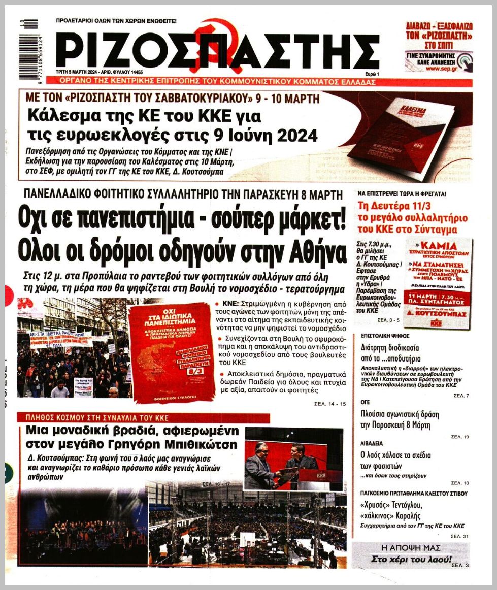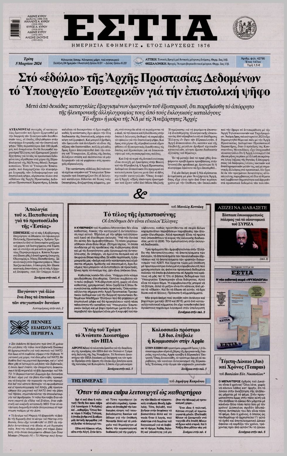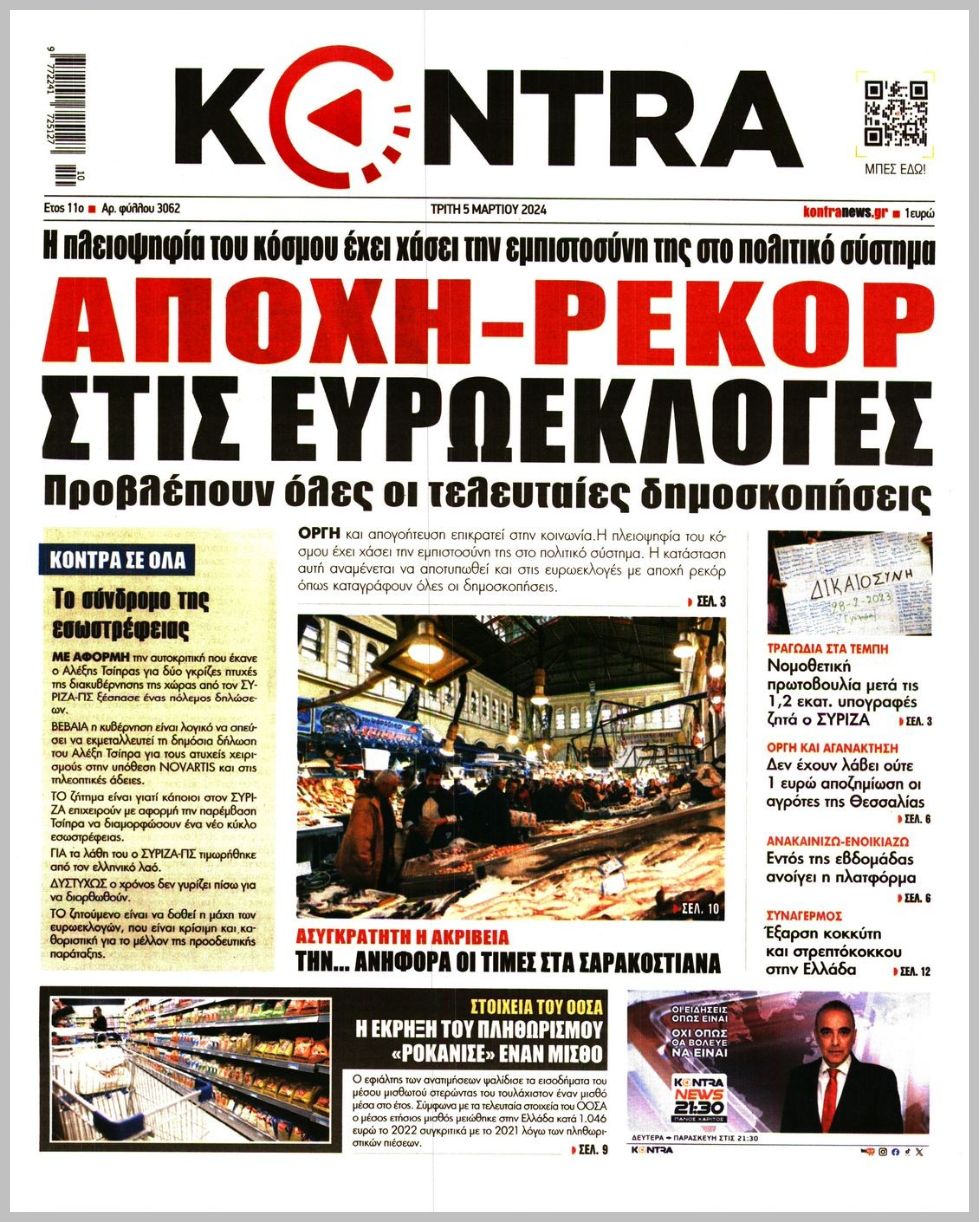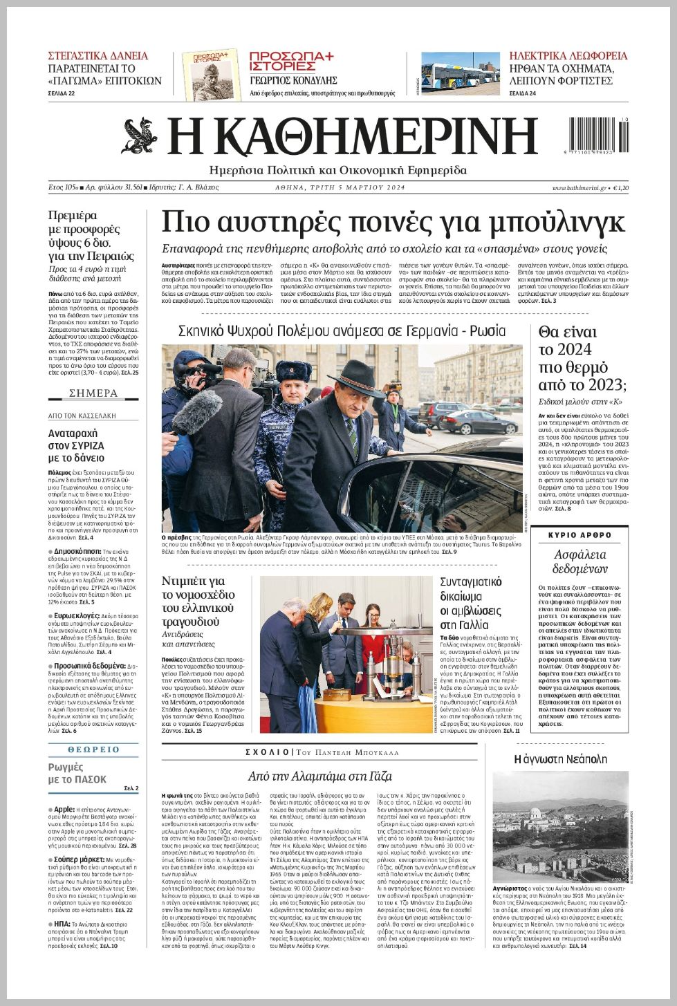 Τα πρωτοσέλιδα των πολιτικών εφημερίδων σε Κρήτη και Αθήνα της Τρίτης (5/3)