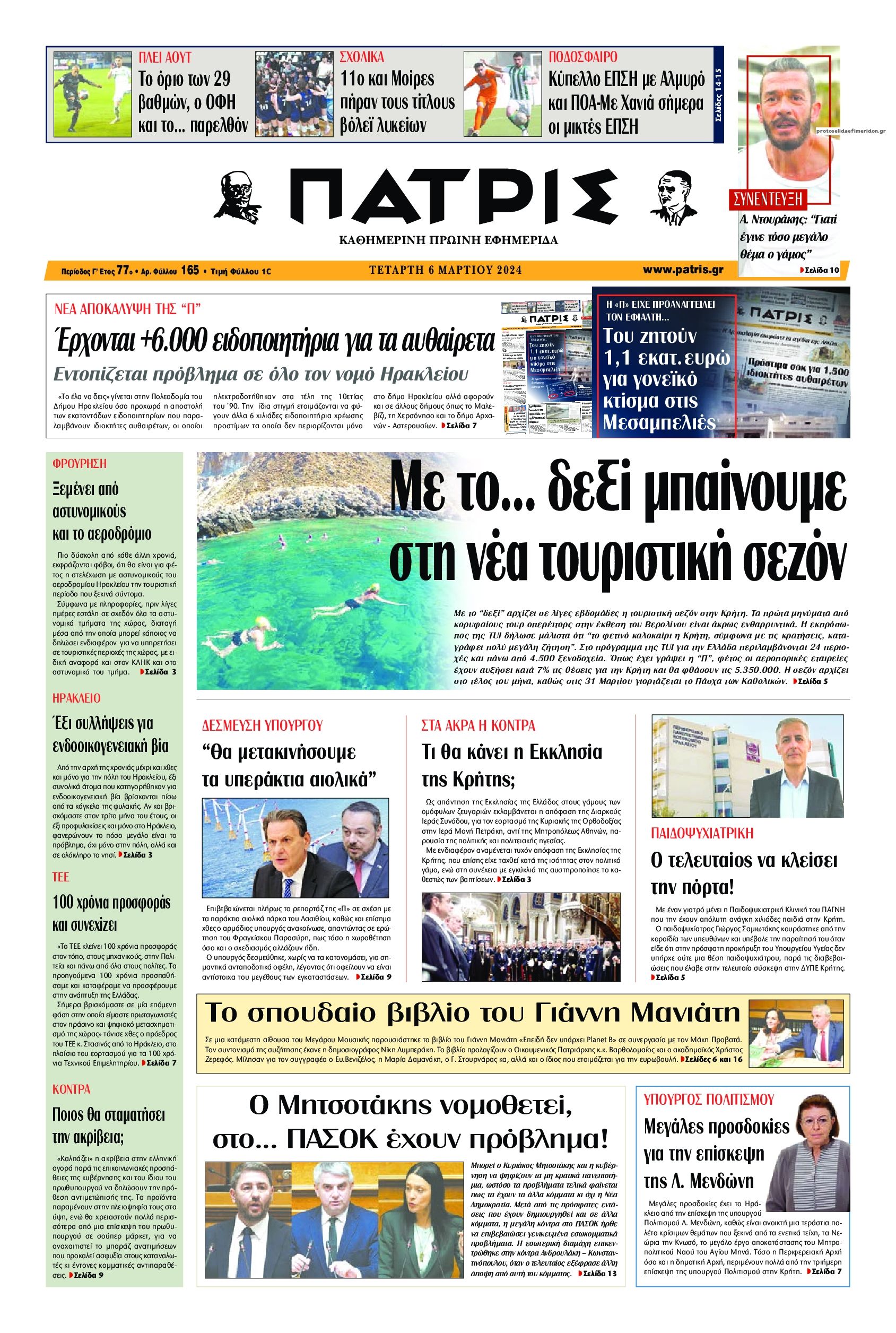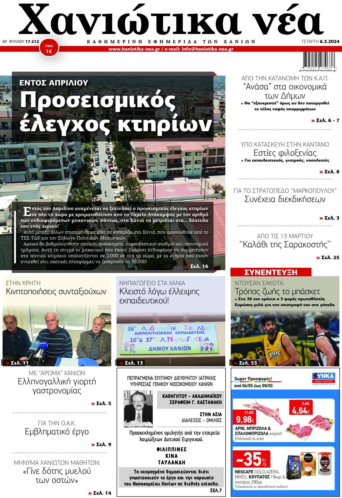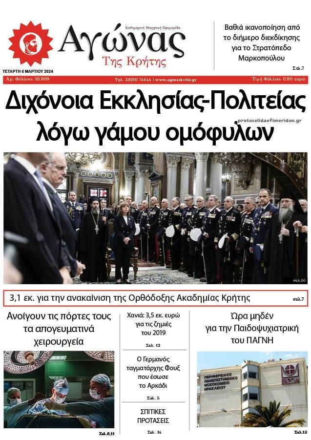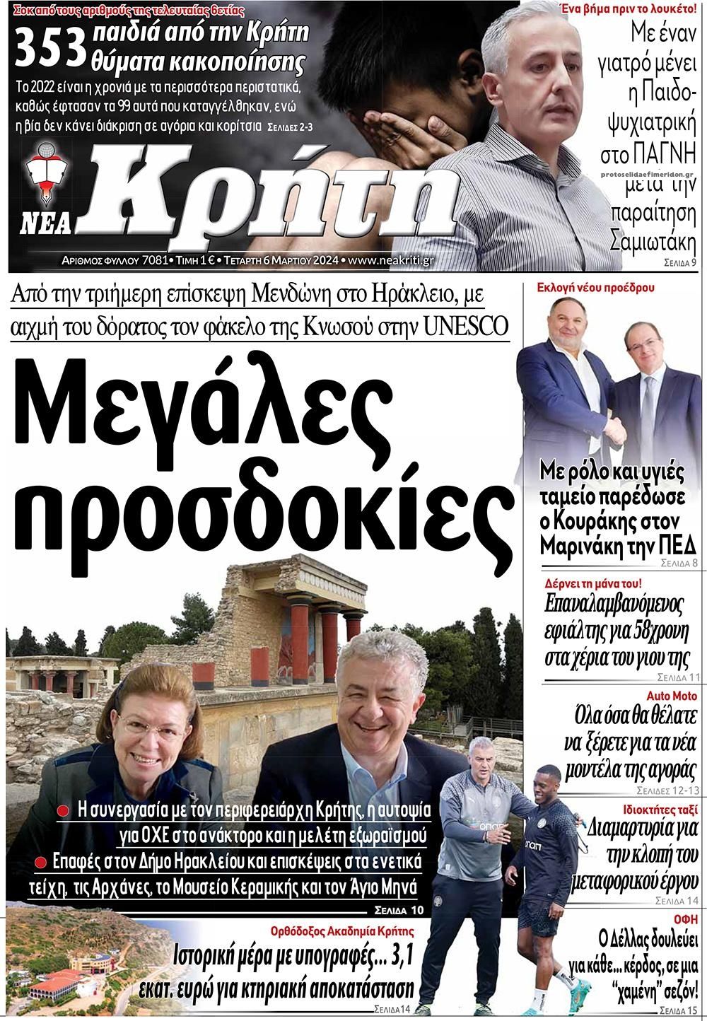 Τα πρωτοσέλιδα των κρητικών και πολιτικών εφημερίδων της Τετάρτης (6/3)