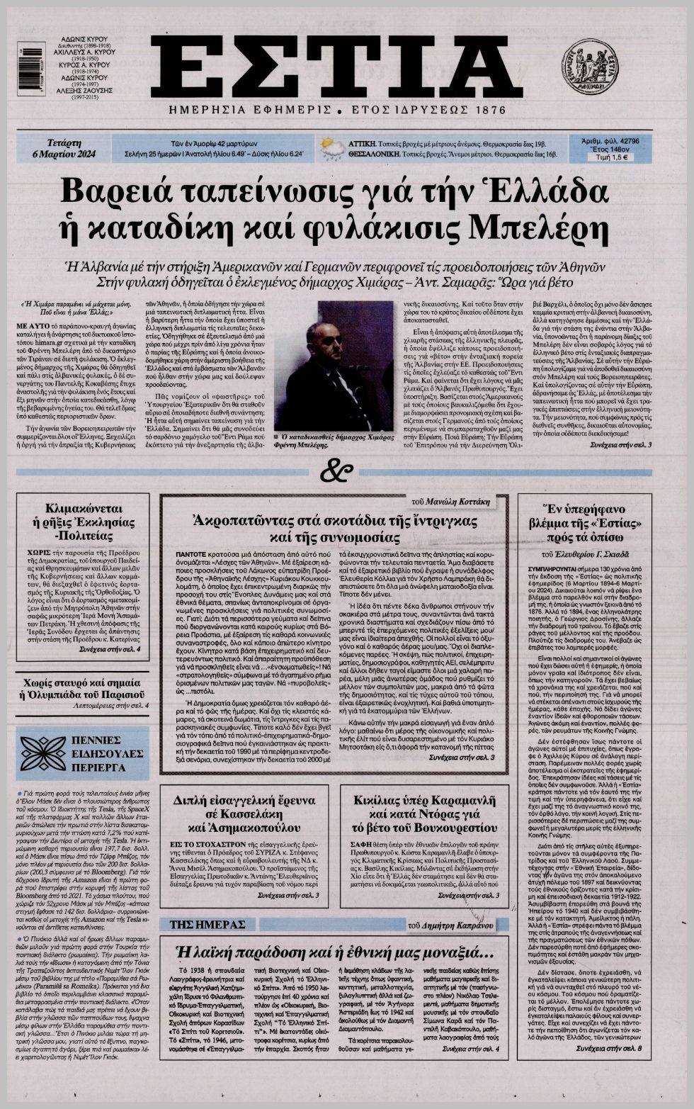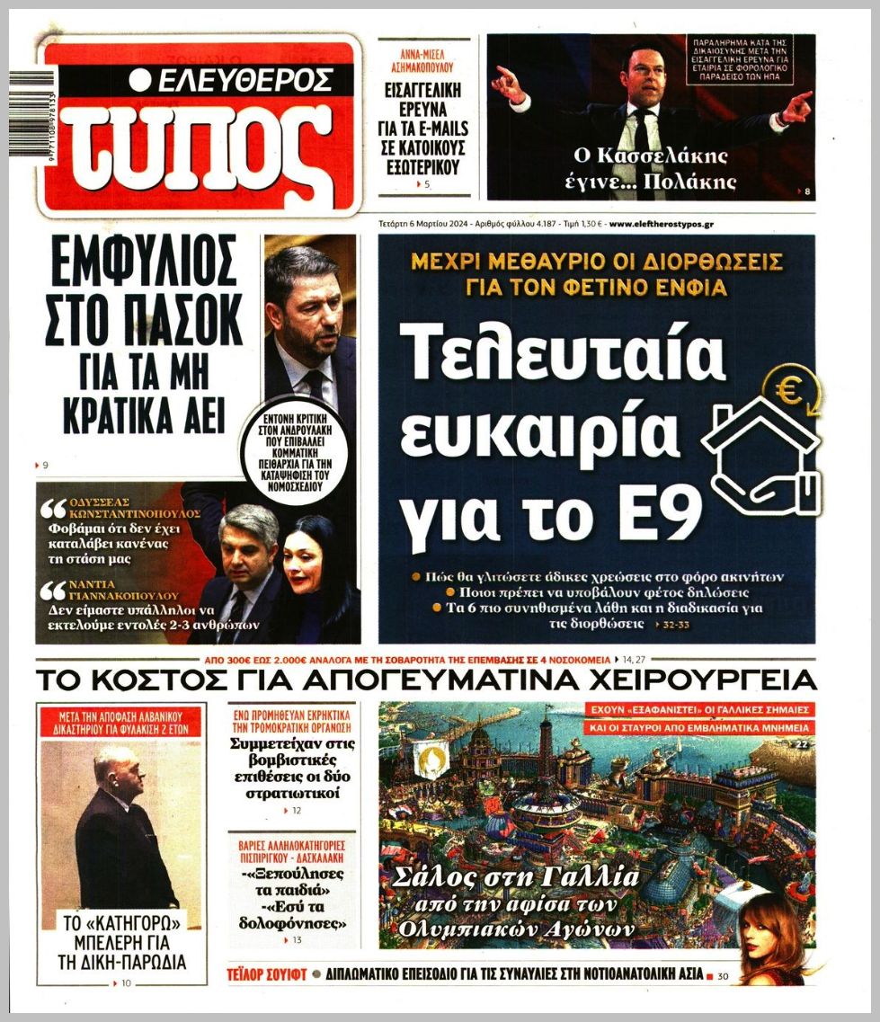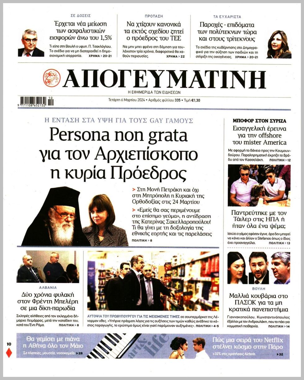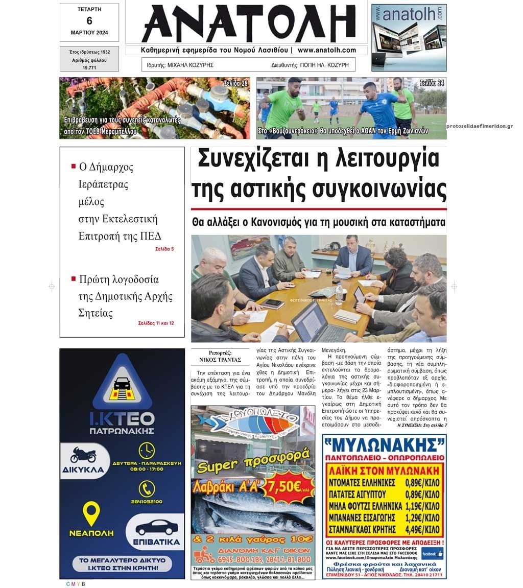 Τα πρωτοσέλιδα των κρητικών και πολιτικών εφημερίδων της Τετάρτης (6/3)