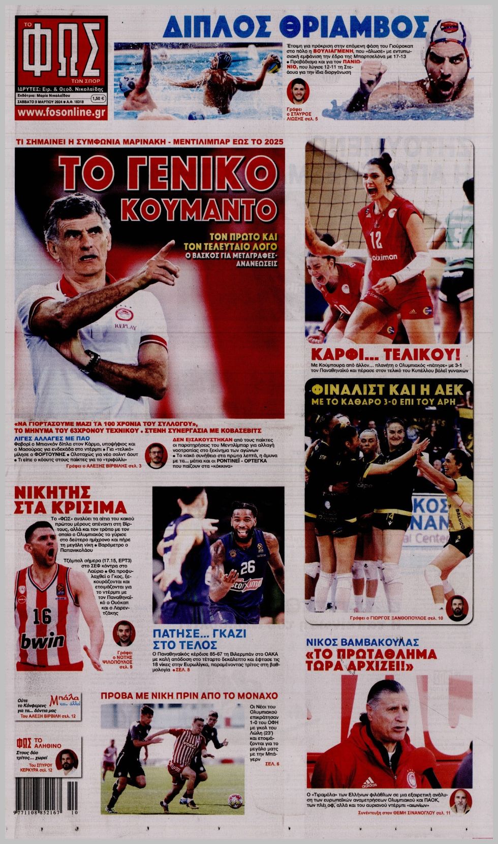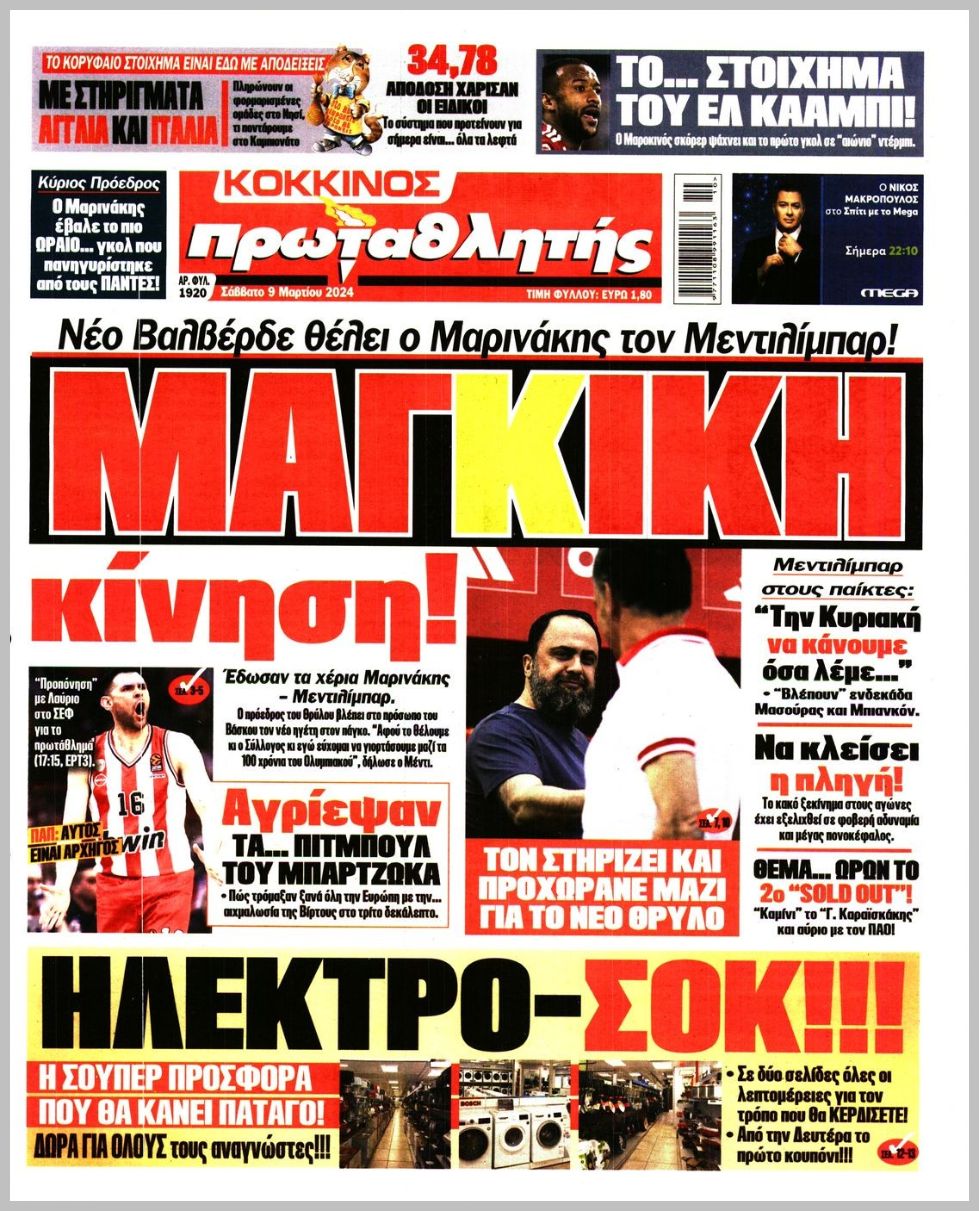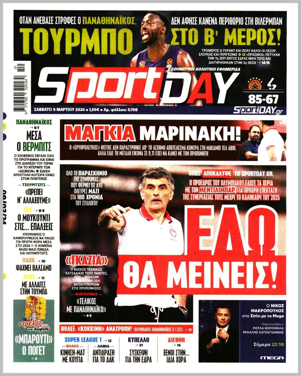 Τα αθλητικά πρωτοσέλιδα του Σαββάτου (9/3)