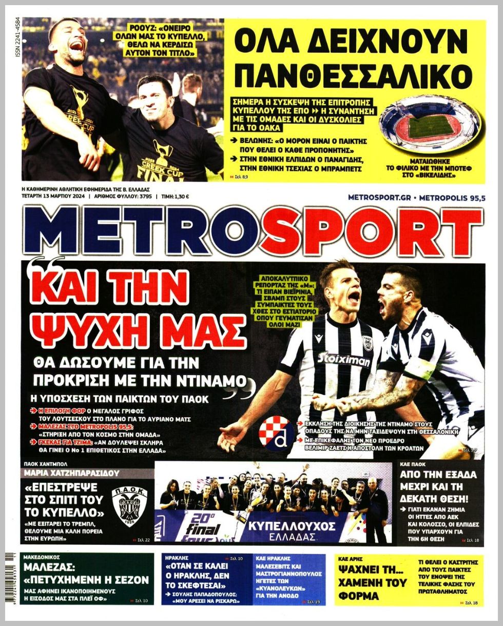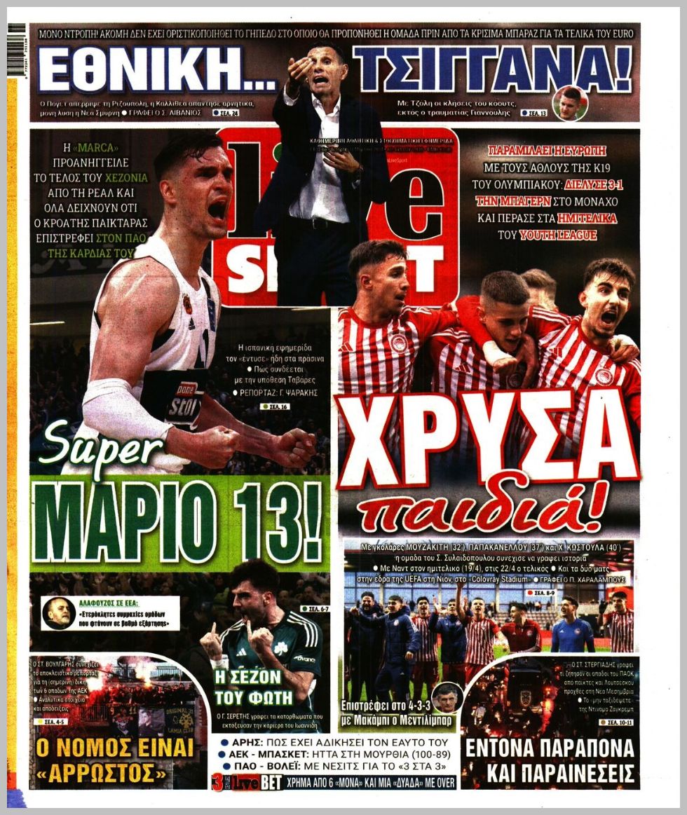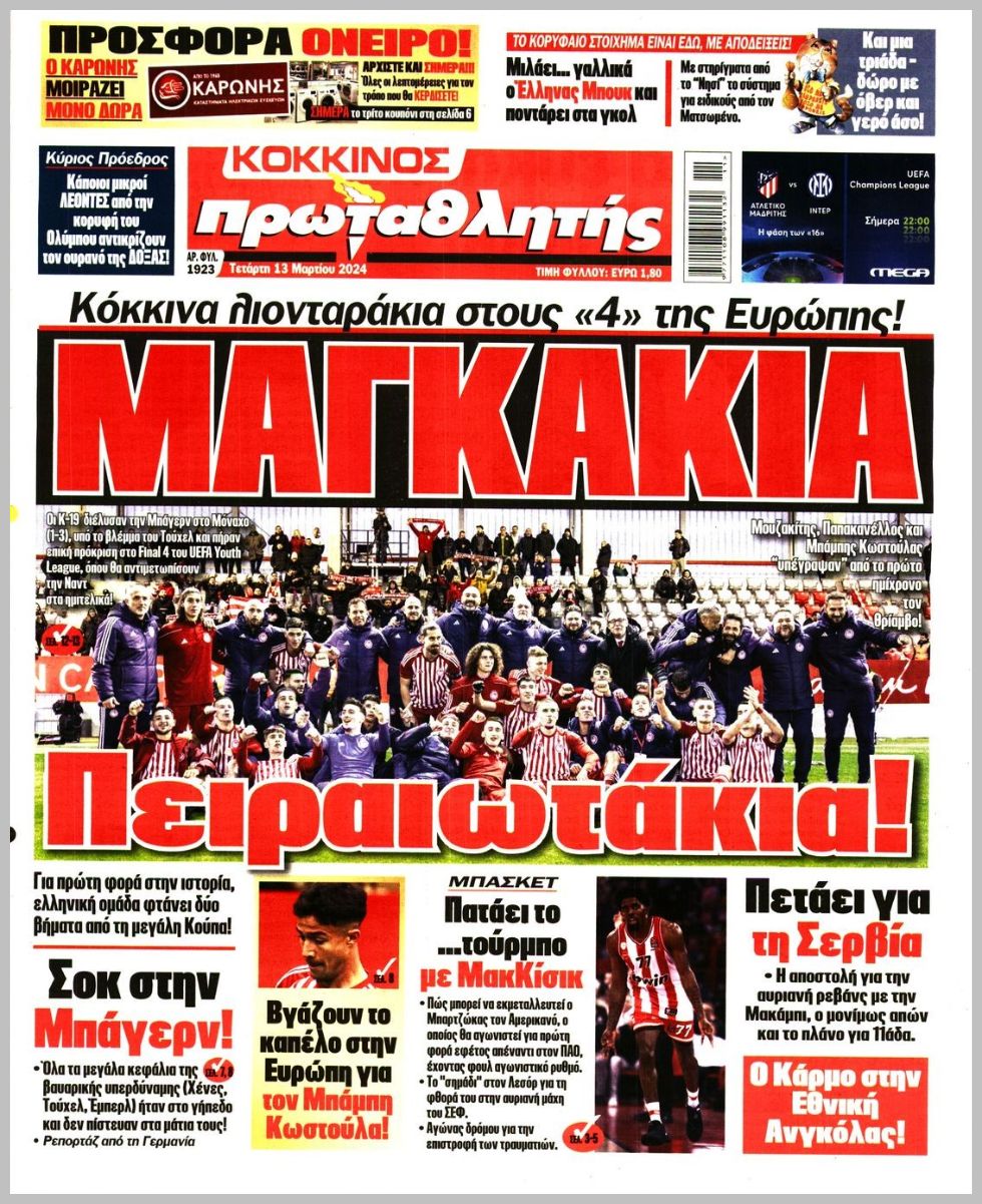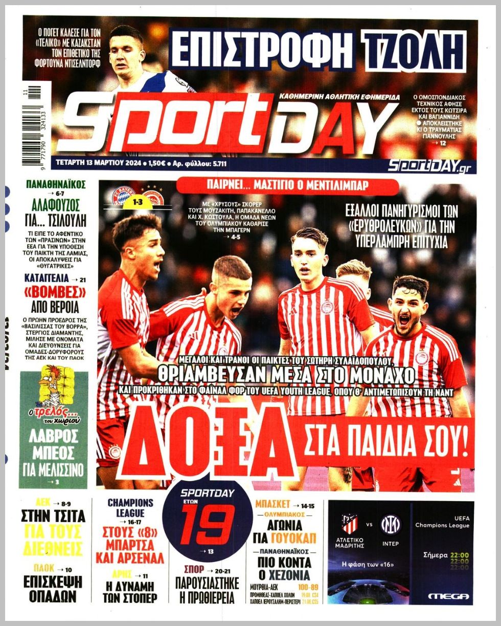 Τα αθλητικά πρωτοσέλιδα της Τετάρτης (13/3)