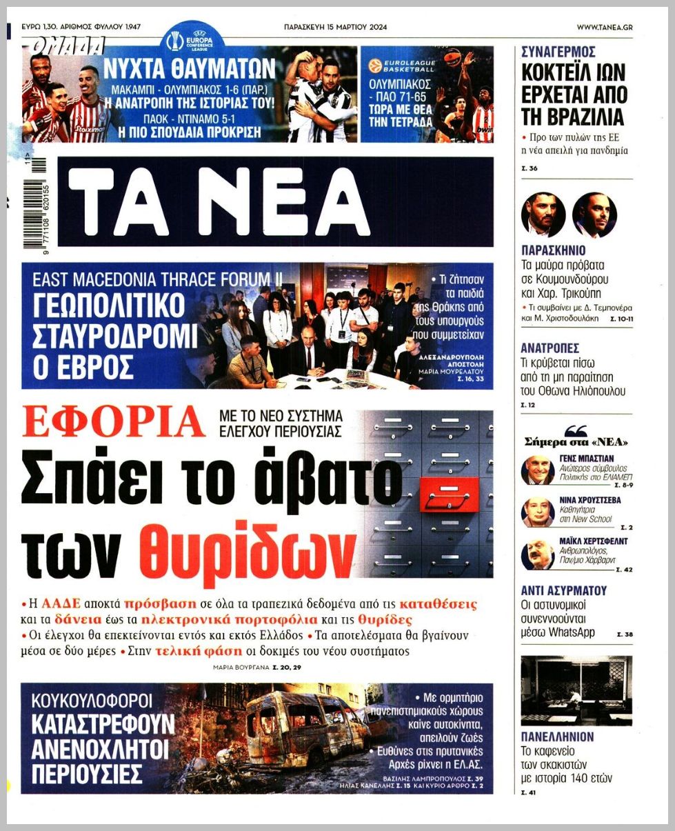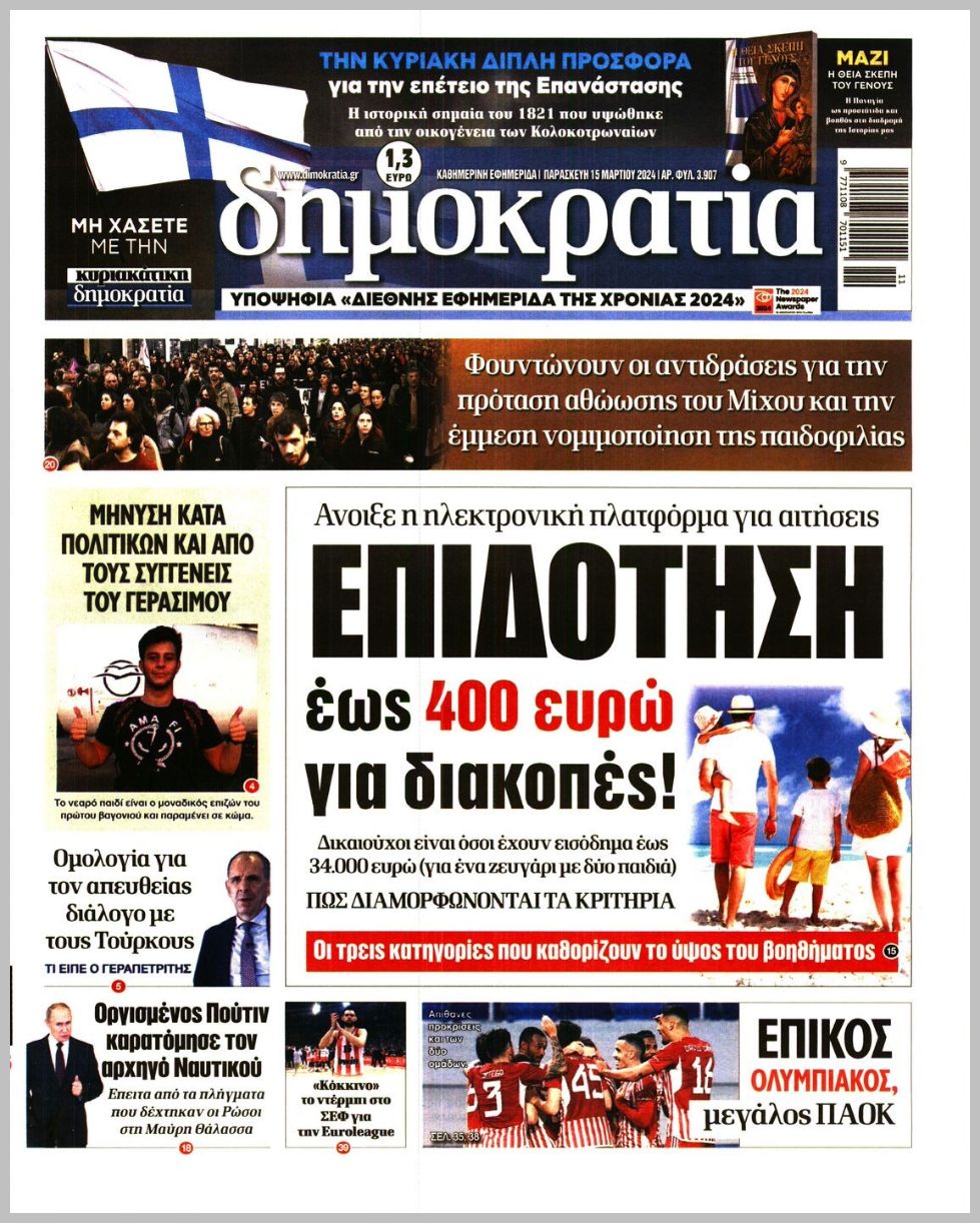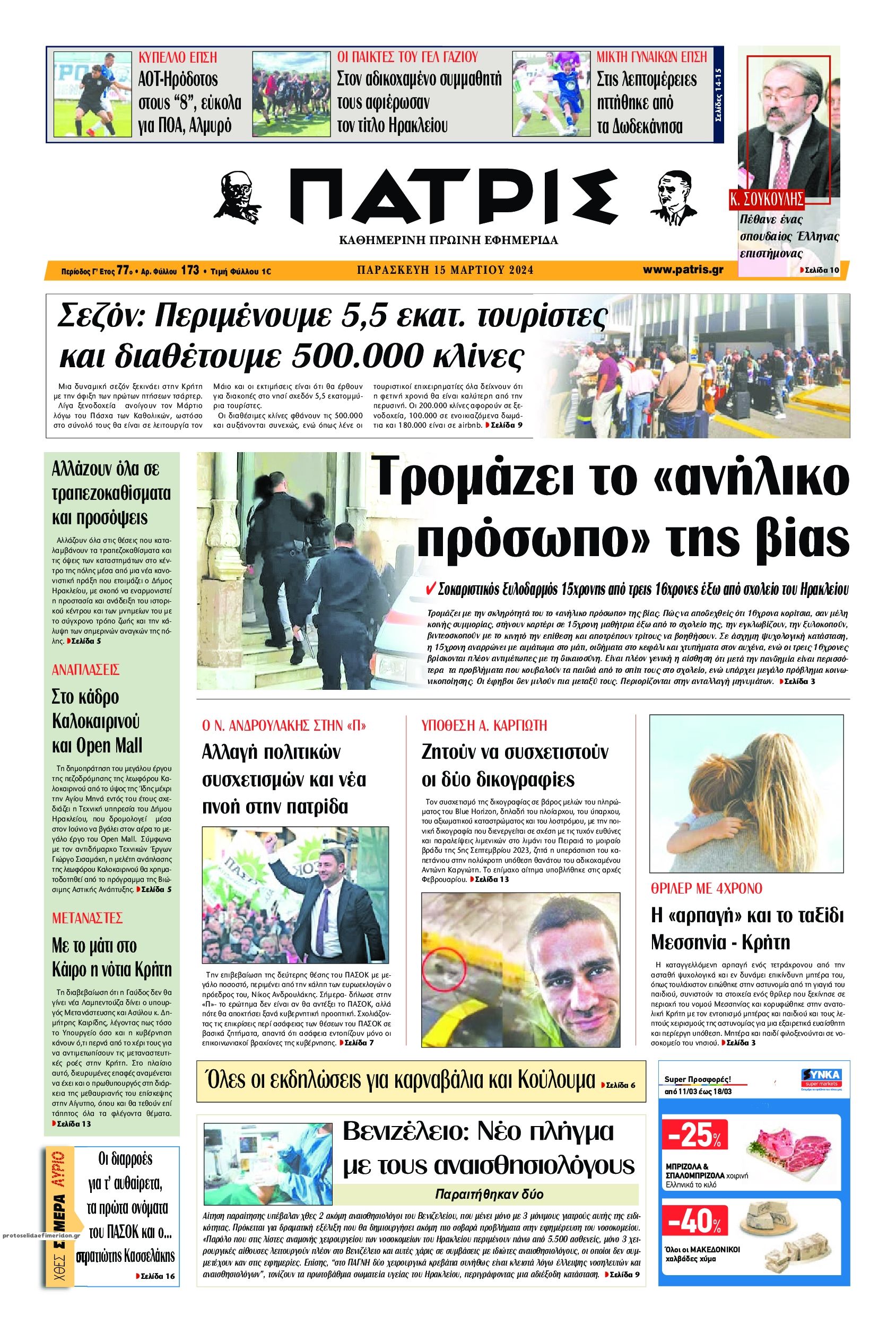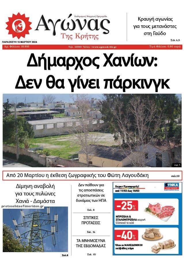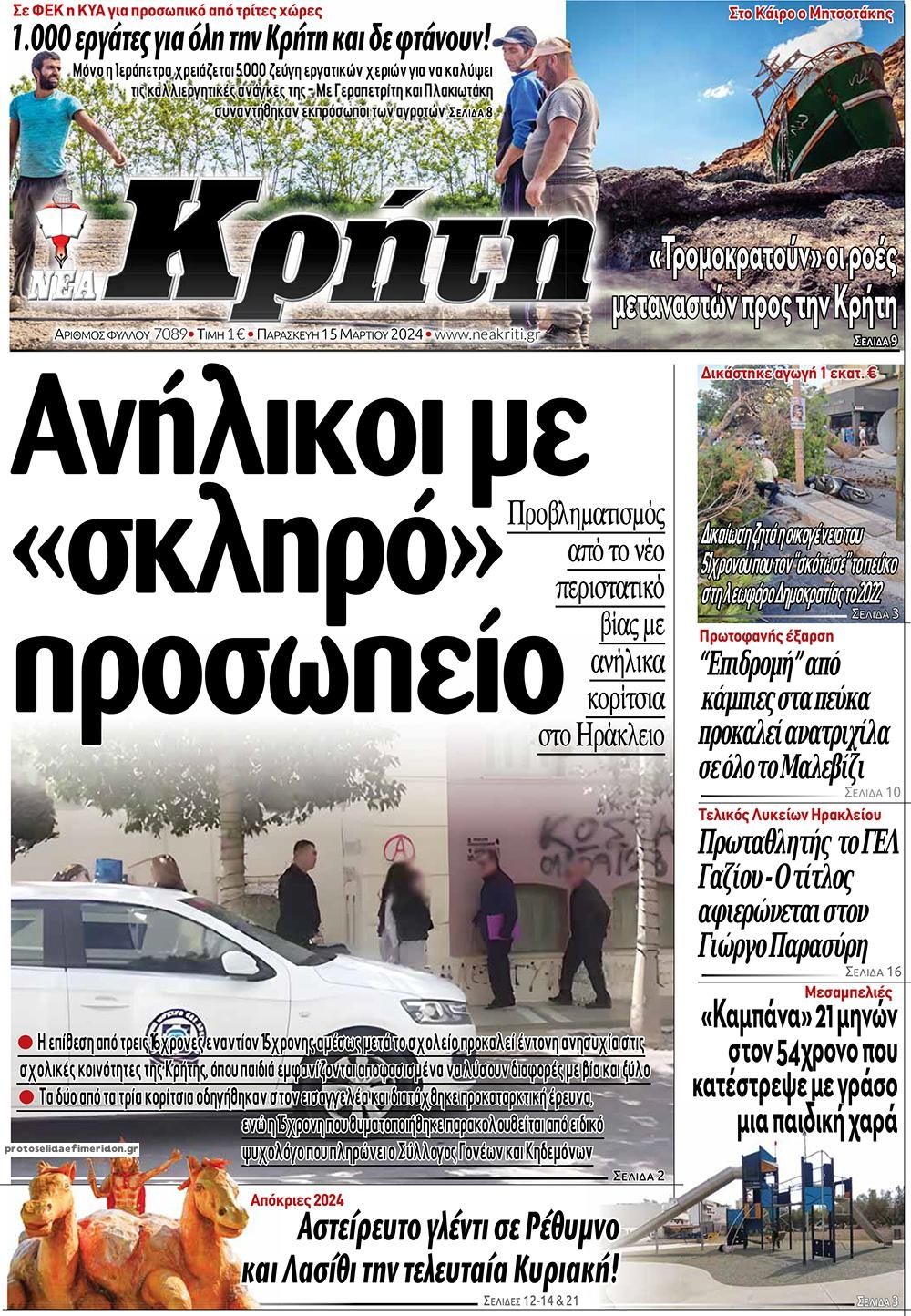 Τα πρωτοσέλιδα της Παρασκευής (15/3) σε Κρήτη και Αθήνα
