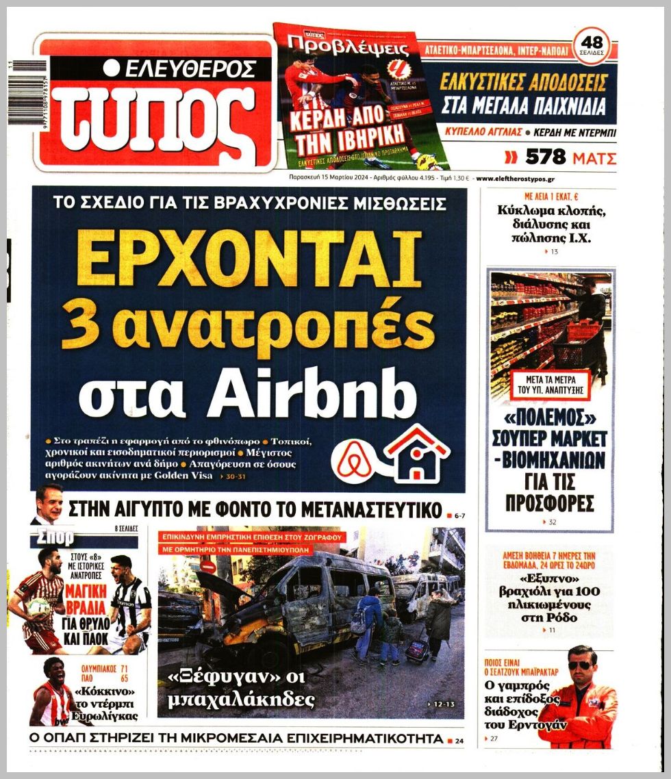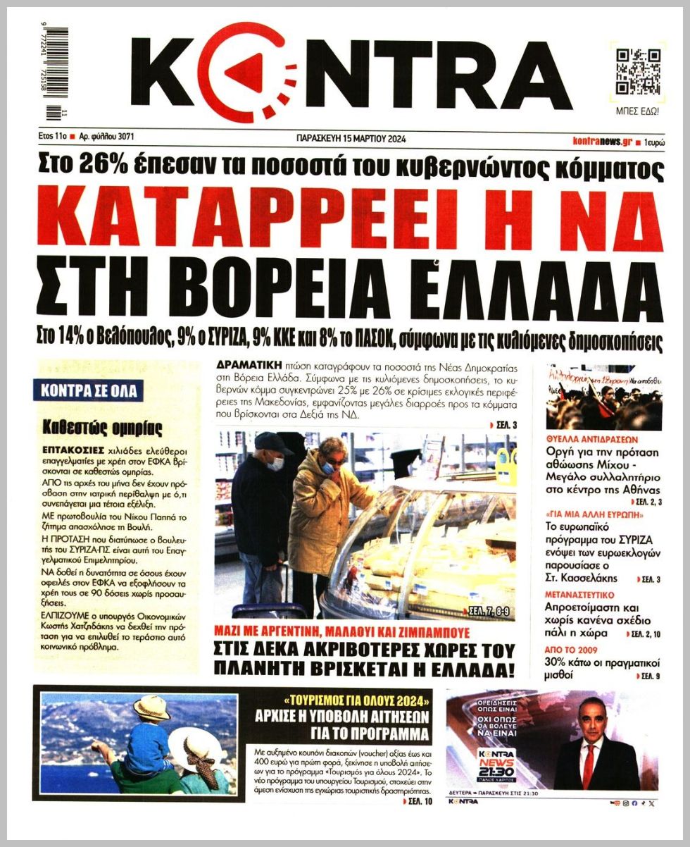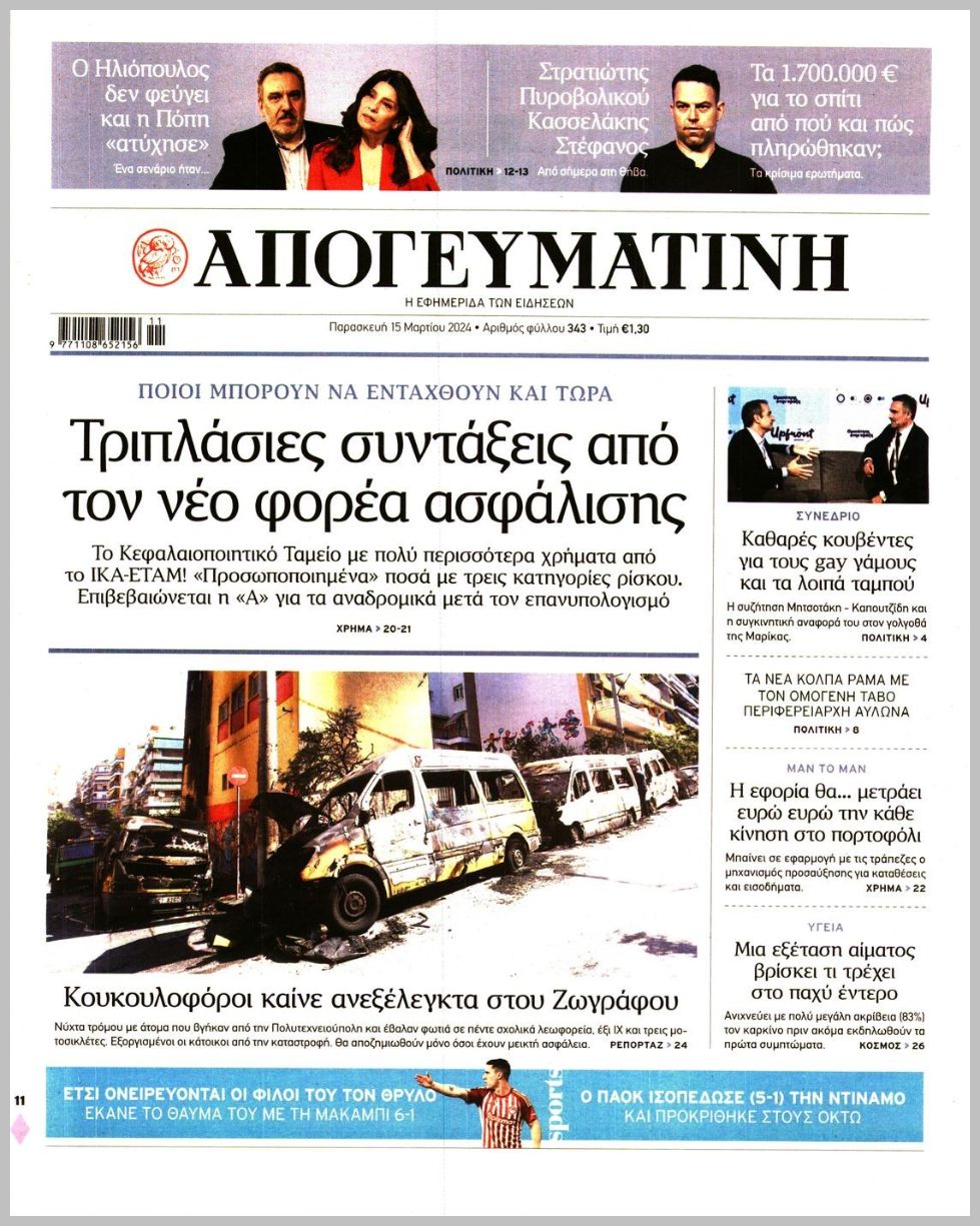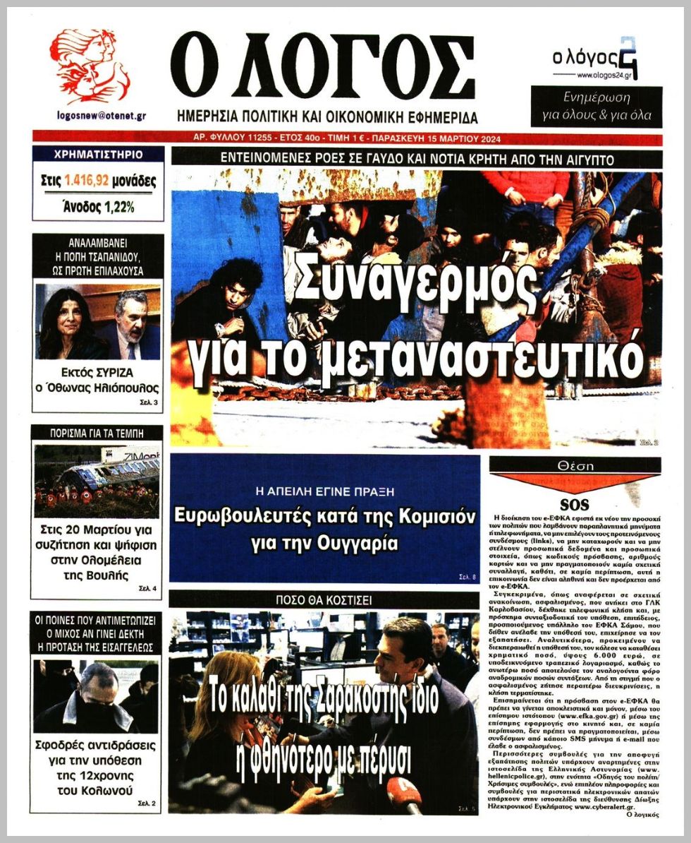 Τα πρωτοσέλιδα της Παρασκευής (15/3) σε Κρήτη και Αθήνα