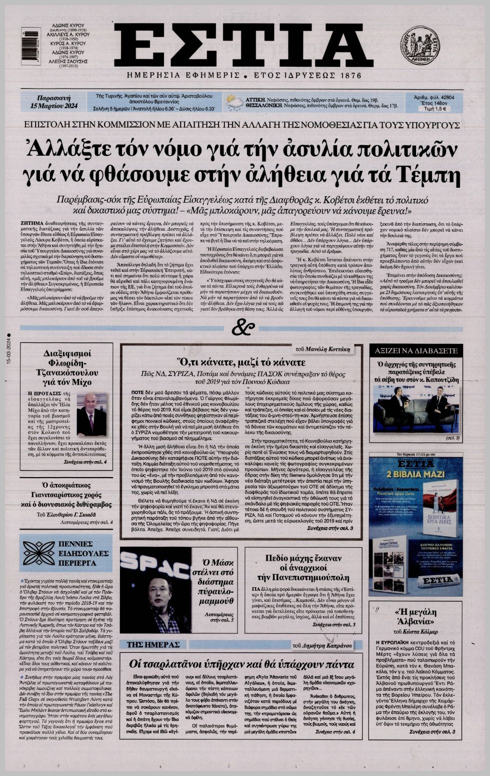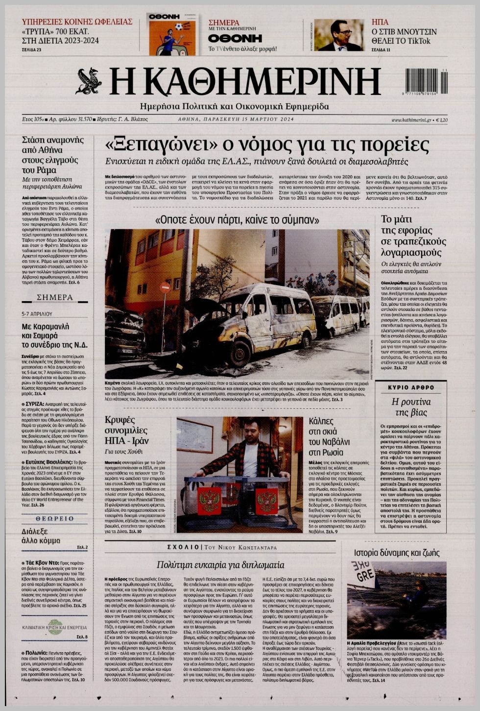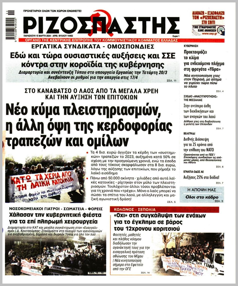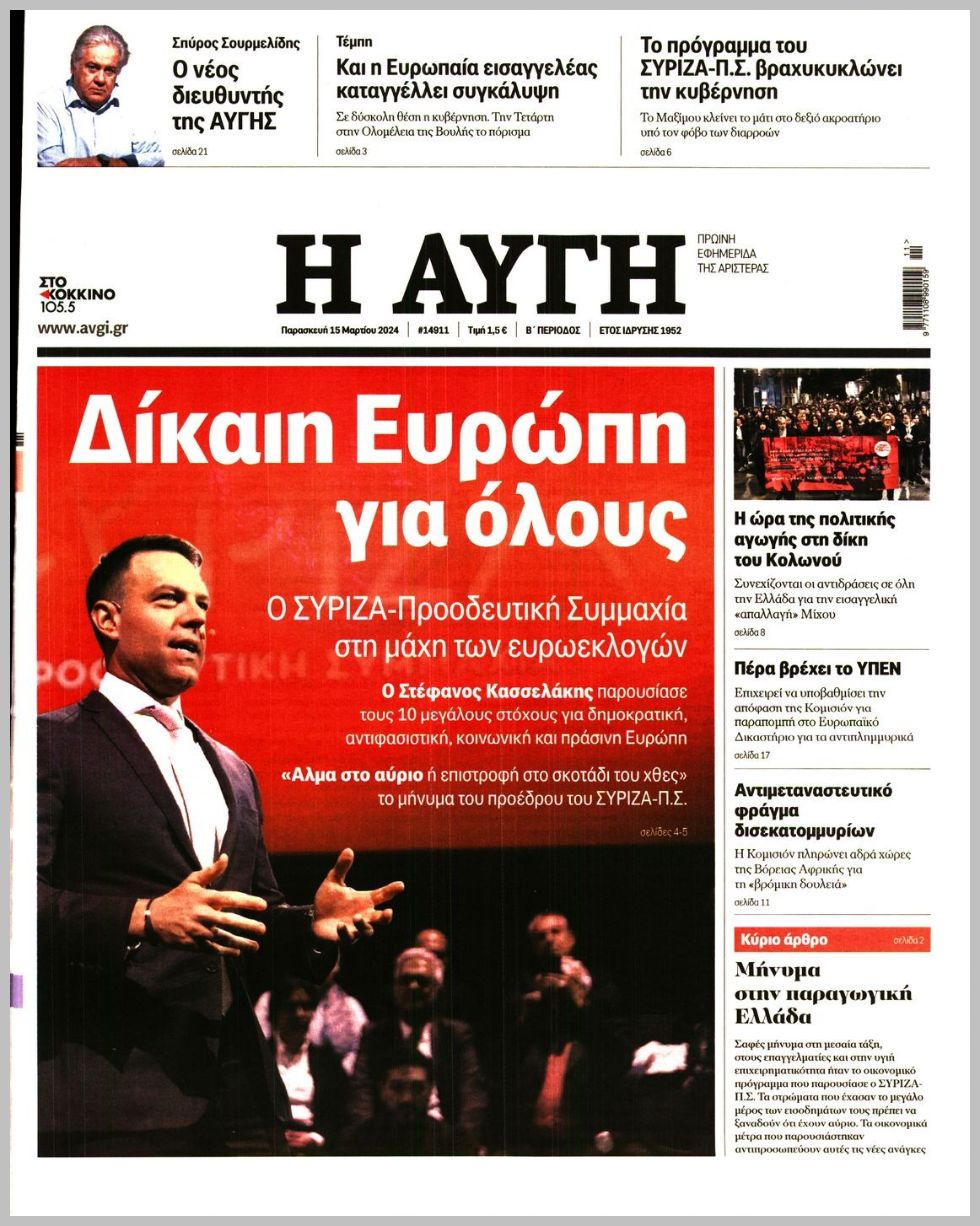 Τα πρωτοσέλιδα της Παρασκευής (15/3) σε Κρήτη και Αθήνα