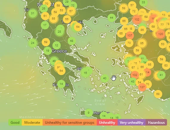 Ακόμη, τα στοιχεία δείχνουν πως για το 2023 η πιο μολυσμένη ατμόσφαιρα μετρήθηκε στο Ίλιον, ενώ η πιο καθαρή στον Άγιο Μάρκο Κέρκυρας.