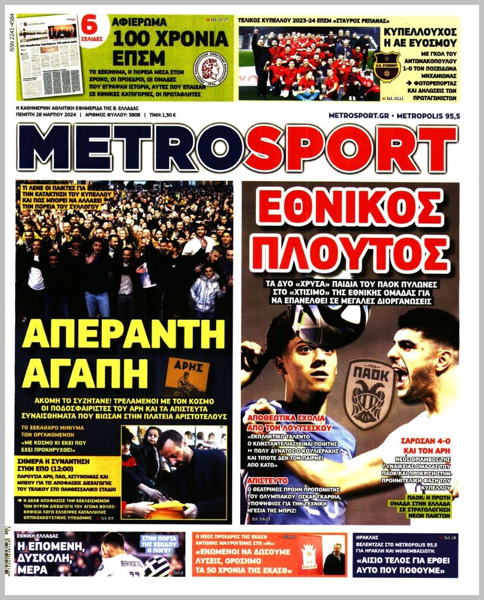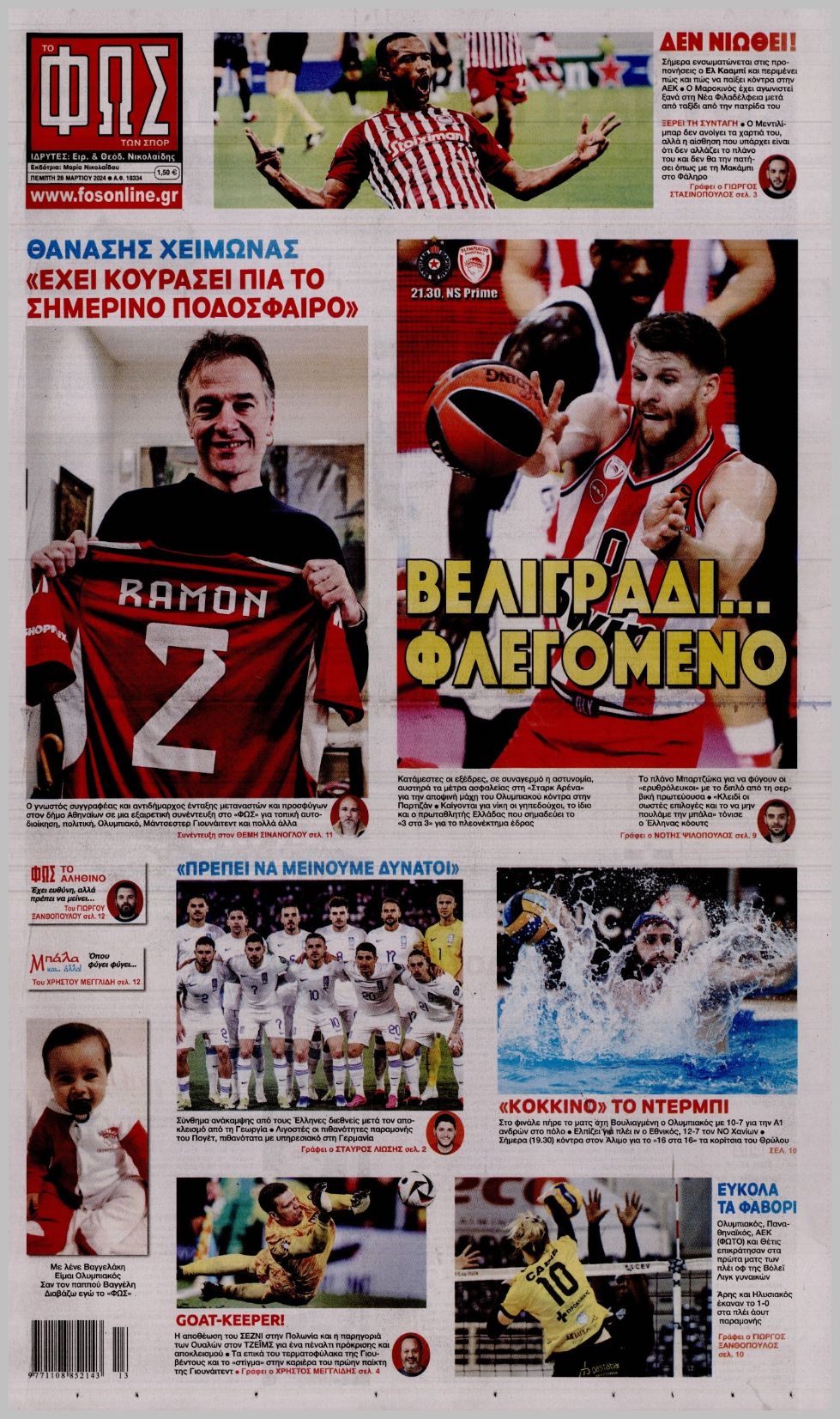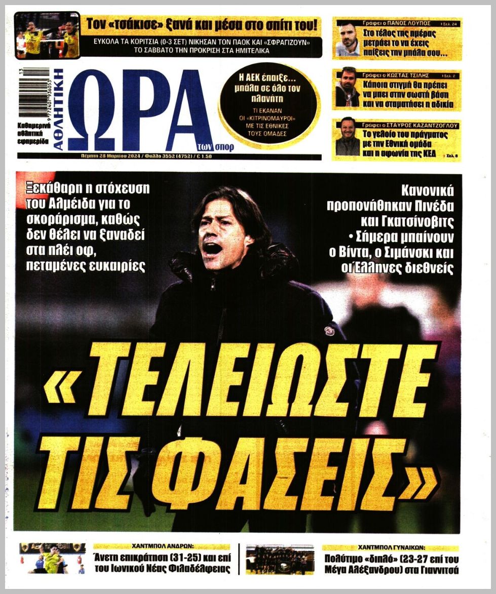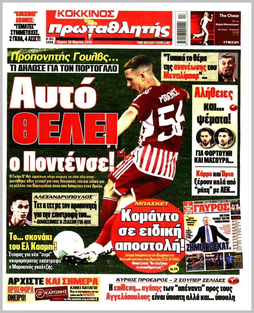 Τα αθλητικά πρωτοσέλιδα της Πέμπτης (28/3)