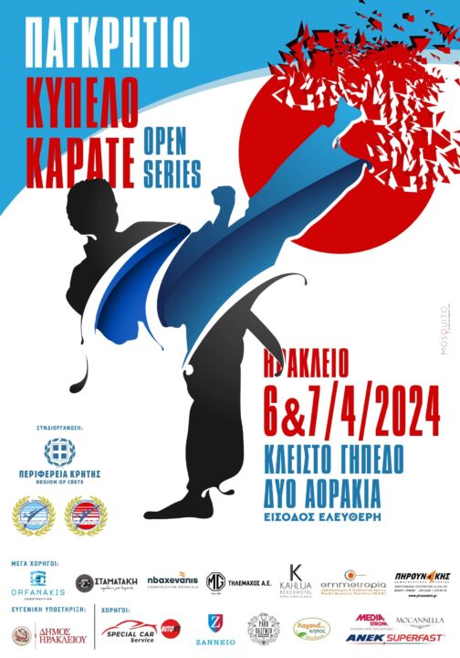 Η Ελληνική Ομοσπονδία Καράτε (ΕΛΟΚ) και η Ακαδημία Σοτοκάν Καράτε Ντο Ηρακλείου, με την στήριξη της Περιφέρειας Κρήτης, συνδιοργανώνουν το Παγκρήτιο κύπελλο καράτε έγχρωμων και μαύρων ζωνών καράτε Κρήτης  «KARATE OPEN SERIES ΗΡΑΚΛΕΙΟ 2024» στις 6-7 Απριλίου 2024 στο Κλειστό Γυμναστήριο Αλικαρνασσού στα Δύο Αοράκια.