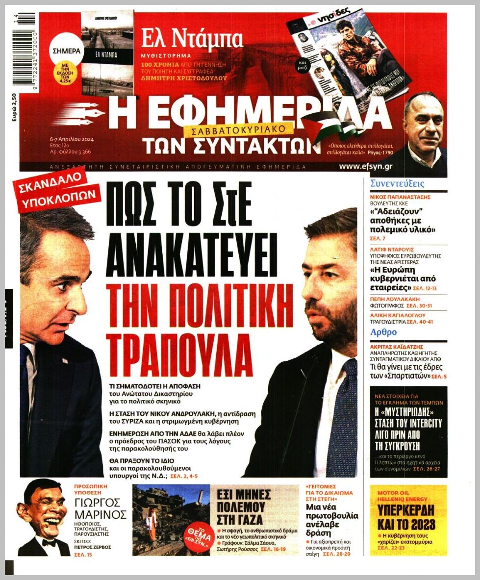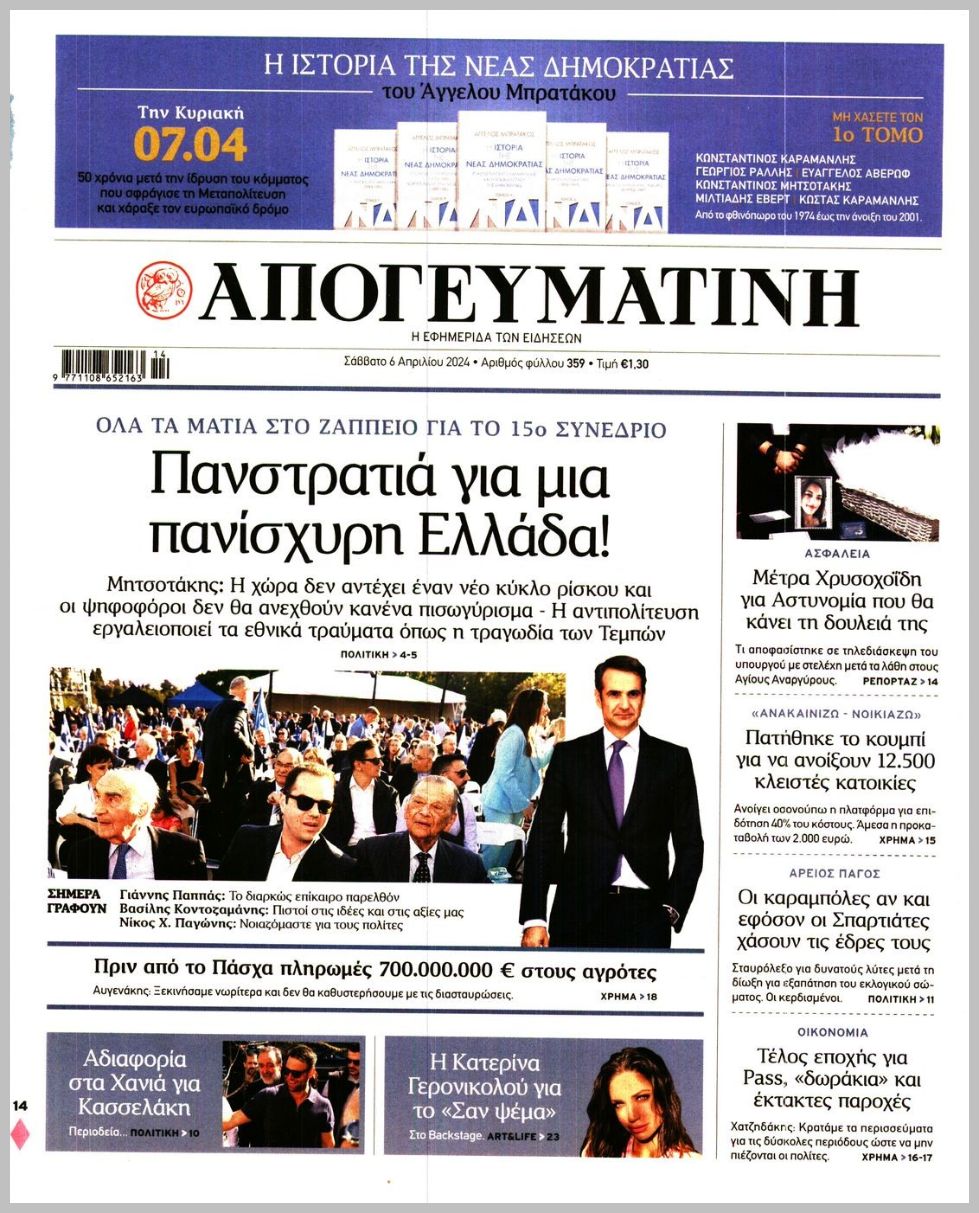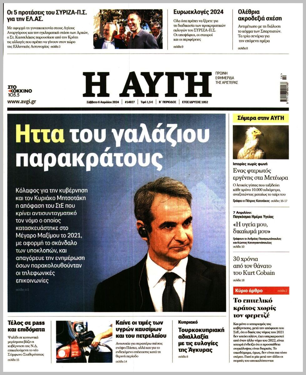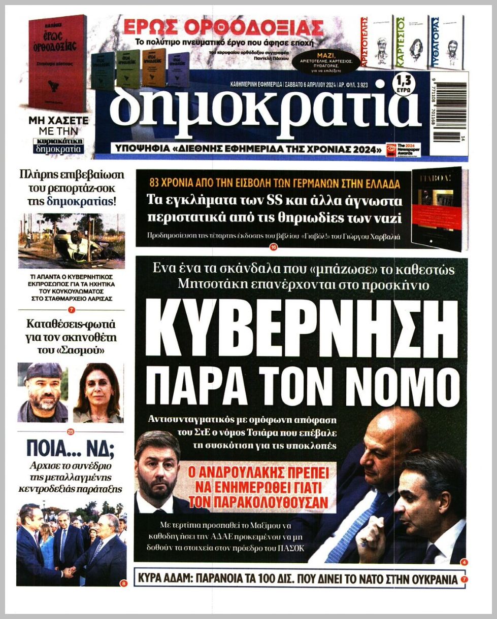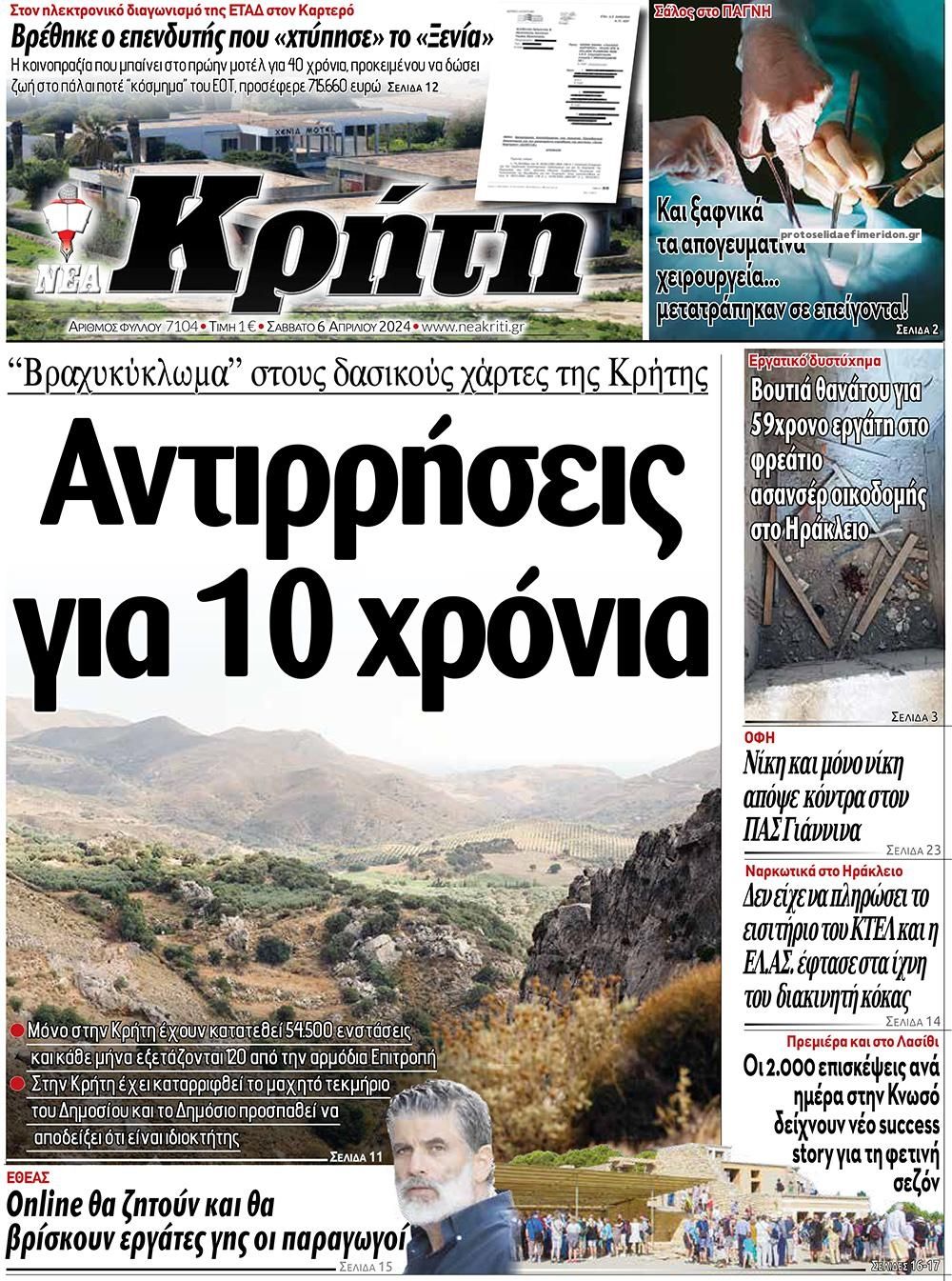 Τα πρωτοσέλιδα του Σαββάτου (6/4) σε Κρήτη και Αθήνα