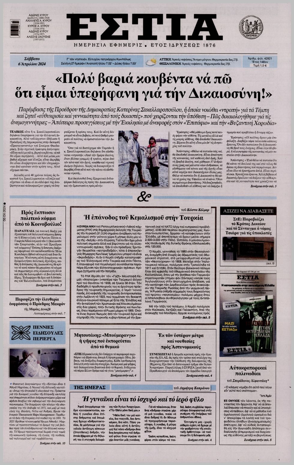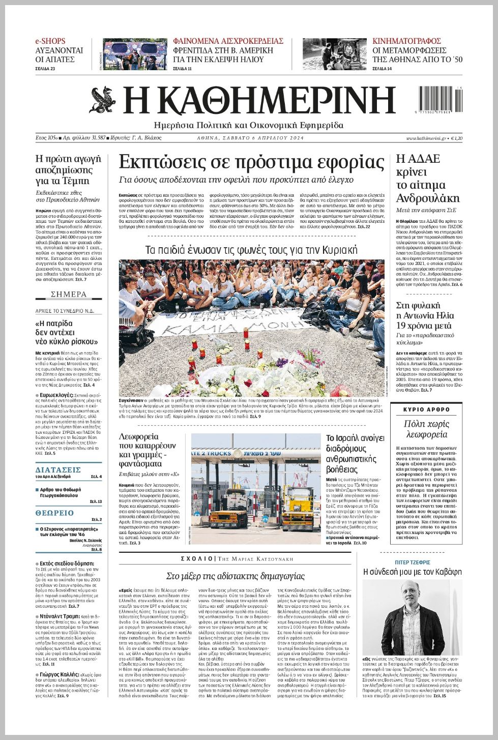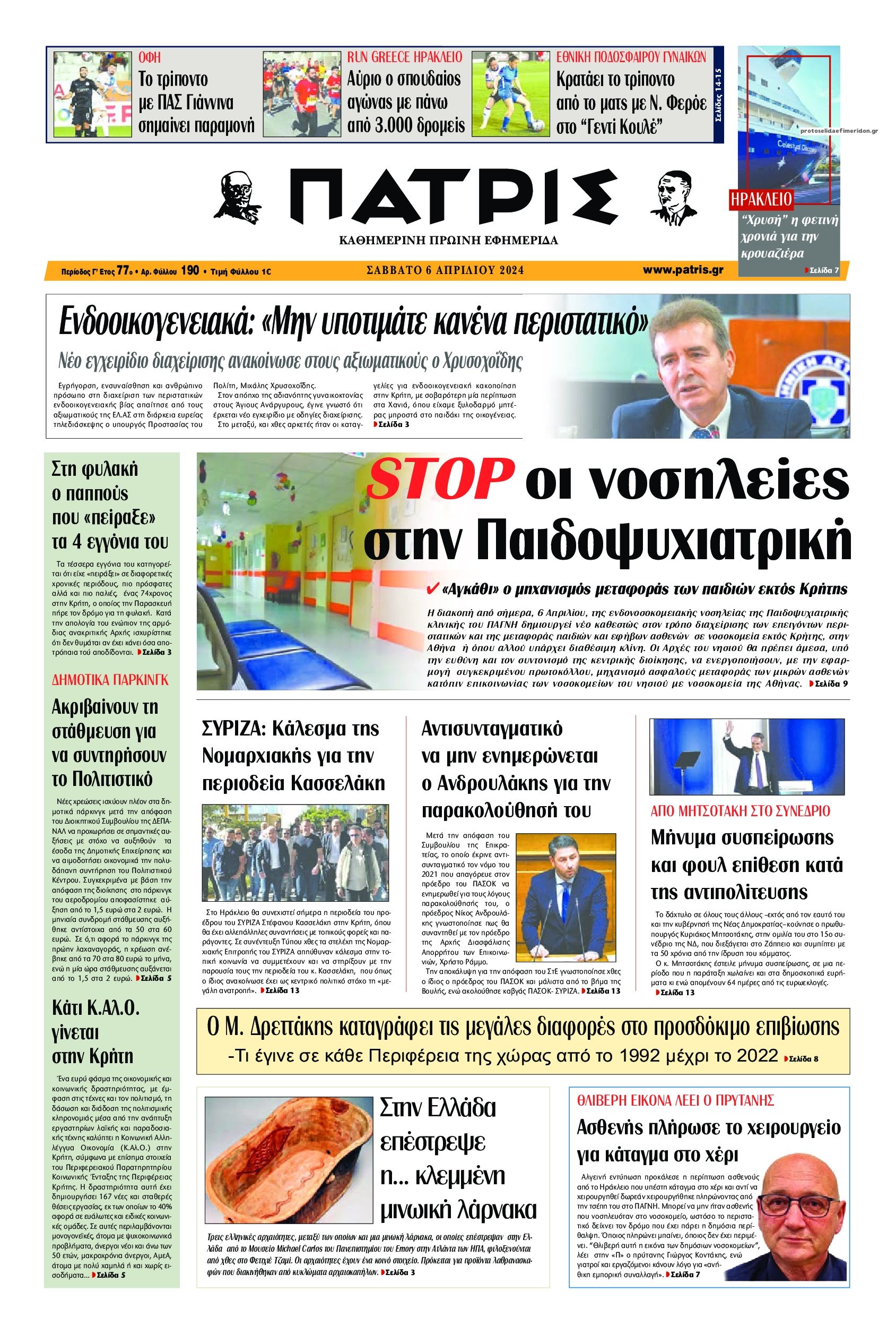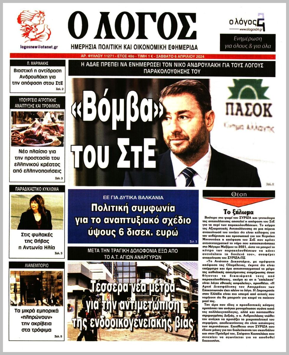Τα πρωτοσέλιδα του Σαββάτου (6/4) σε Κρήτη και Αθήνα