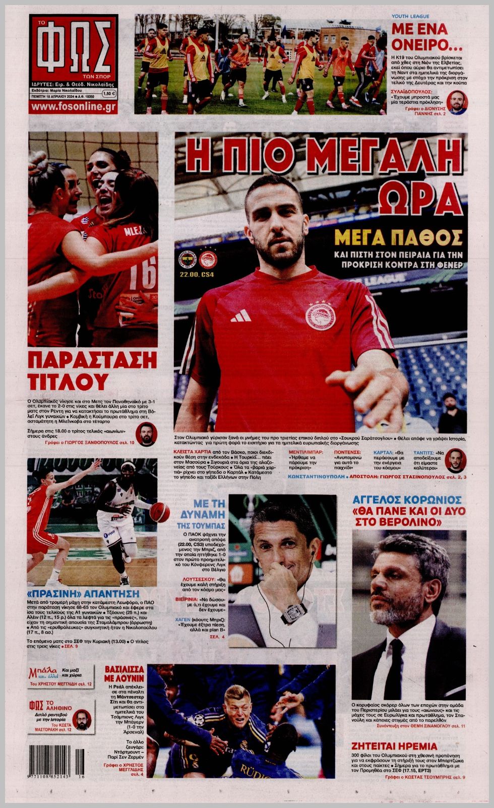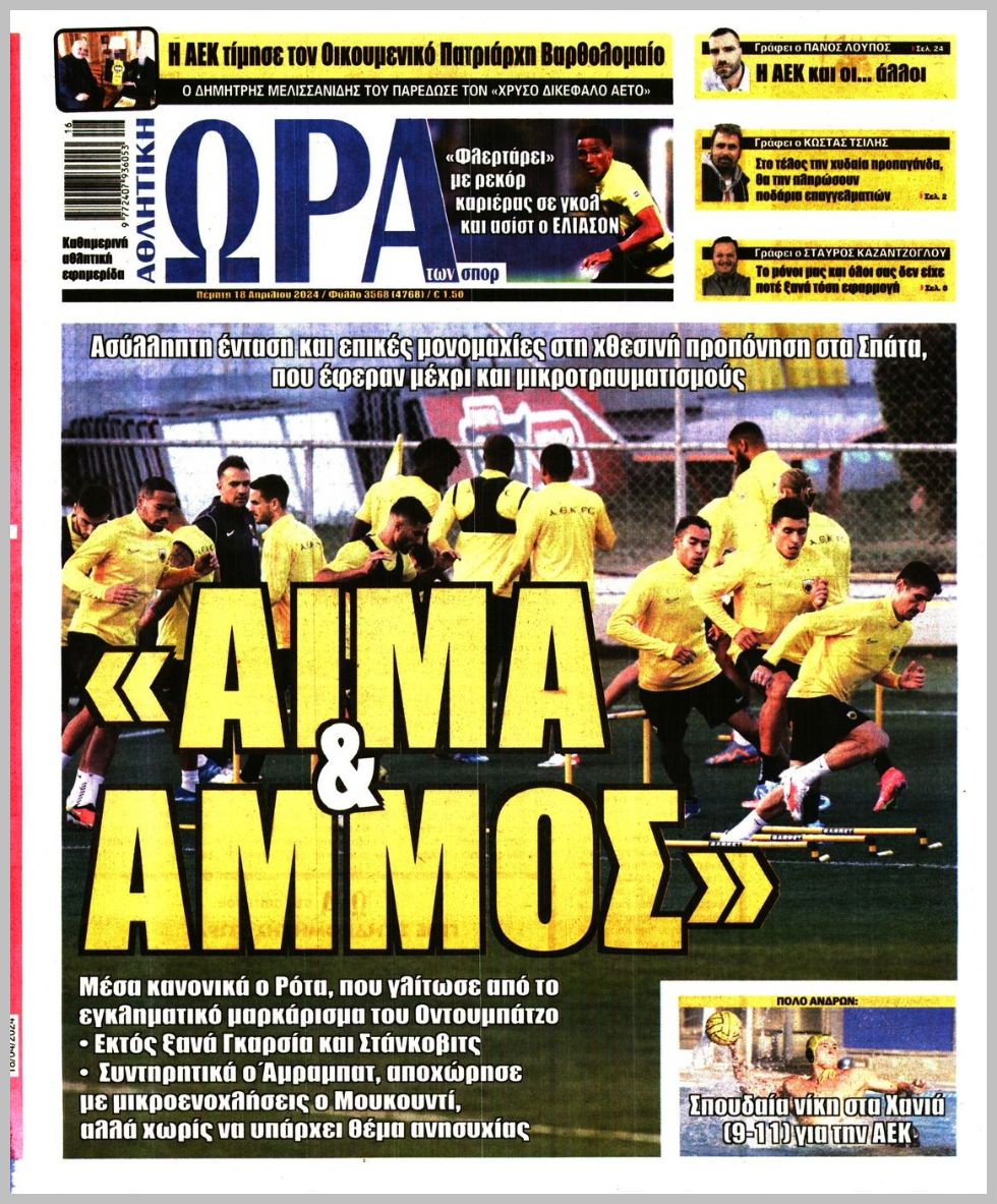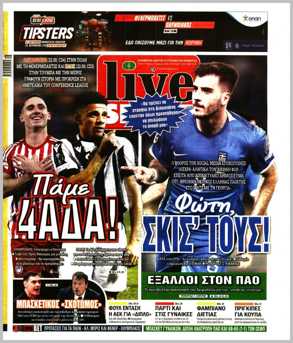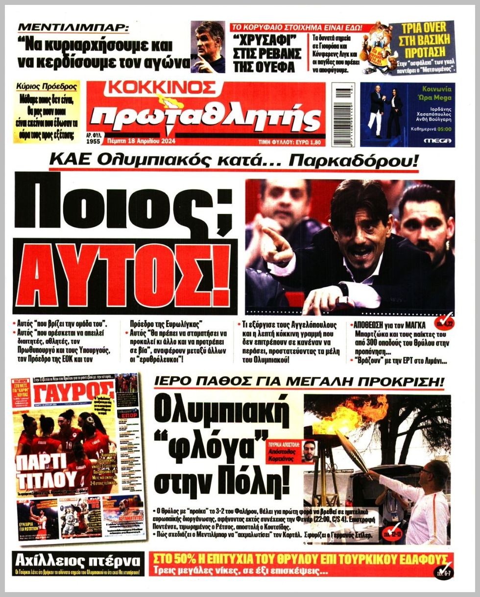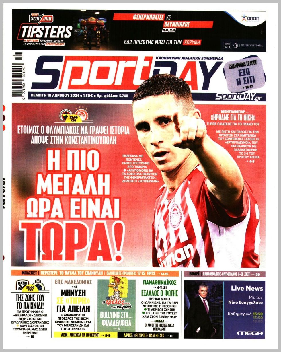 Τα αθλητικά πρωτοσέλιδα της Πέμπτης (18/4)