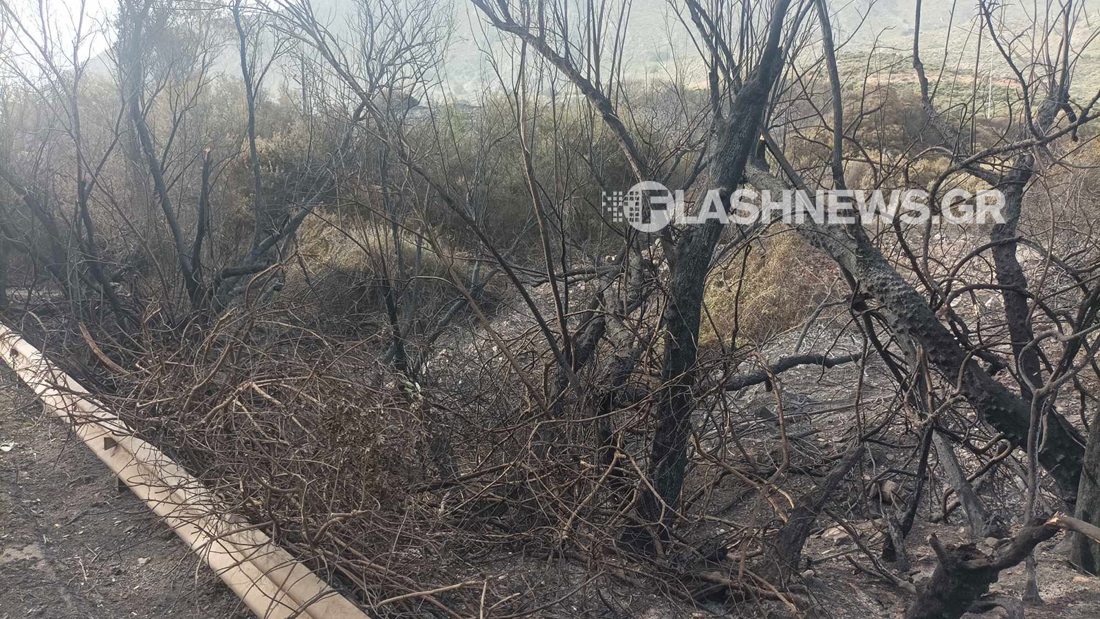 Καθηλωτικές είναι οι εικόνες καταστροφής που άφησε πίσω της η μεγάλη πυρκαγιά: