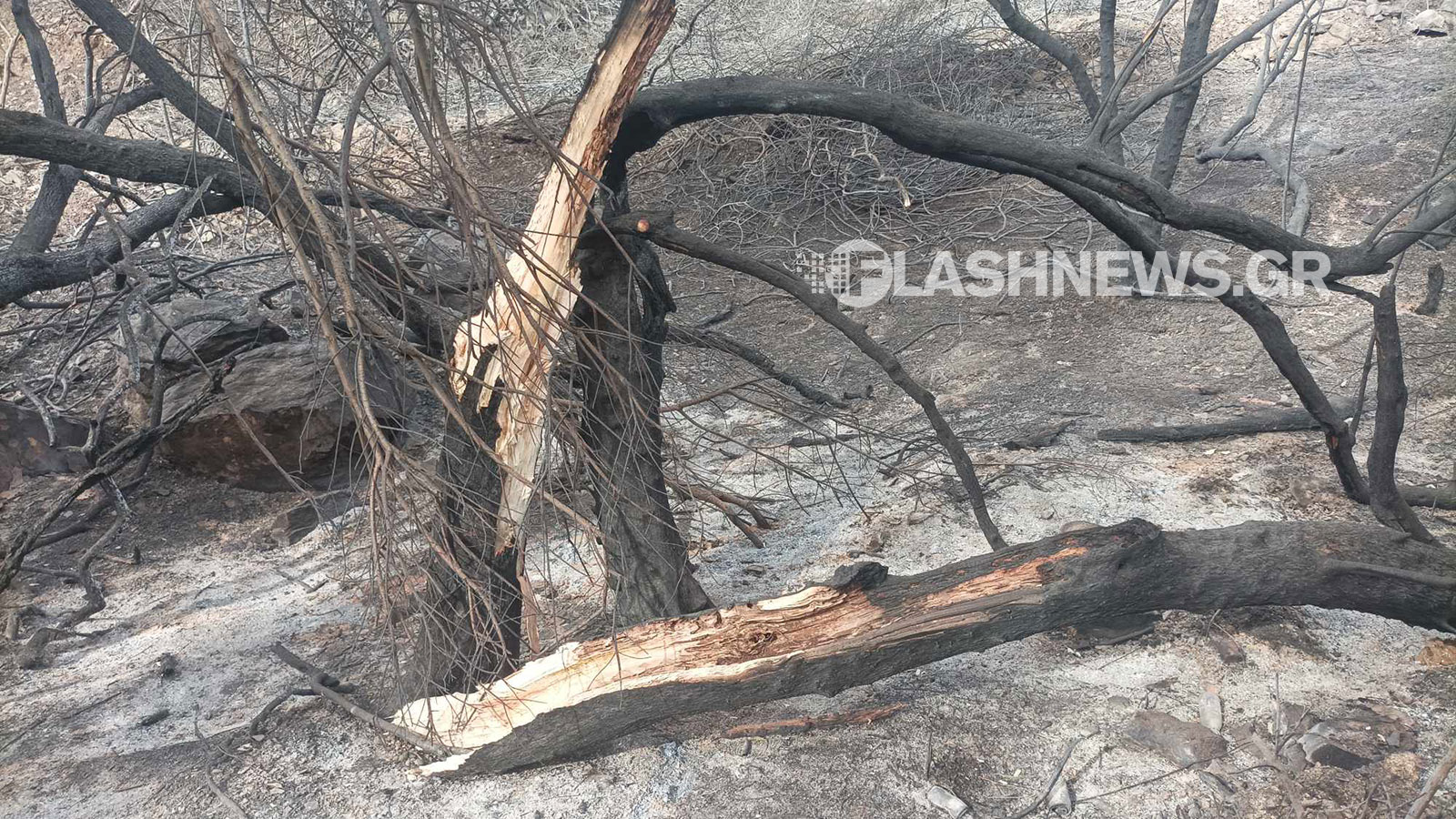 Καθηλωτικές είναι οι εικόνες καταστροφής που άφησε πίσω της η μεγάλη πυρκαγιά:
