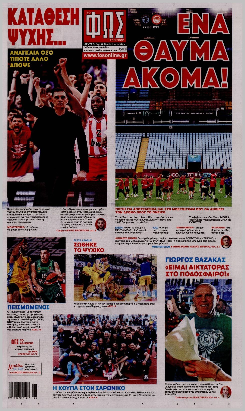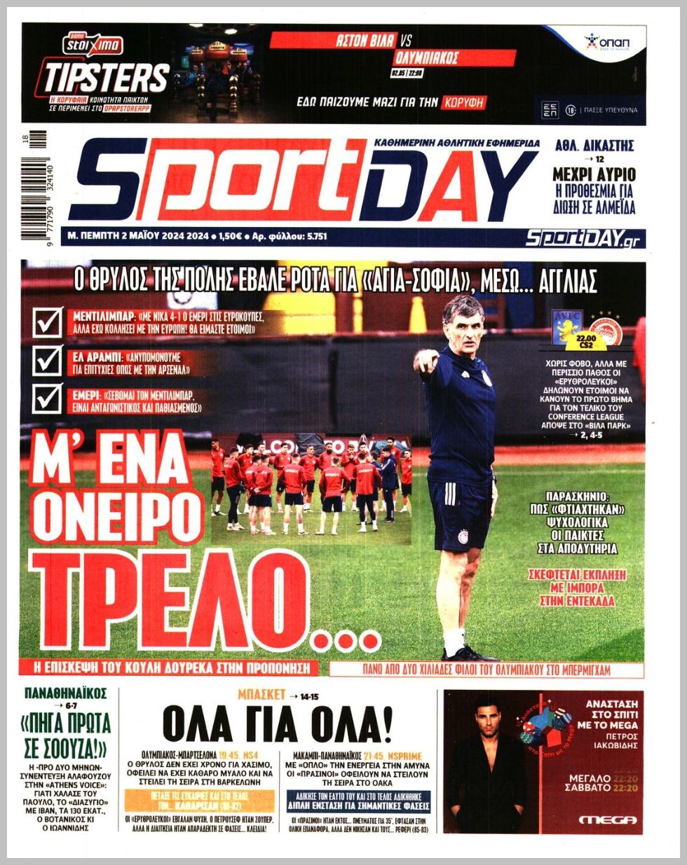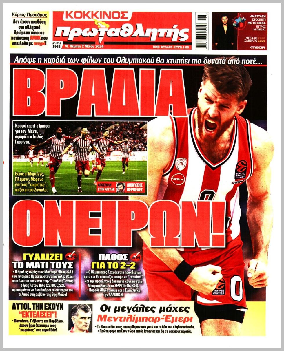 Τα αθλητικά πρωτοσέλιδα της Μ. Πέμπτης (2/5)