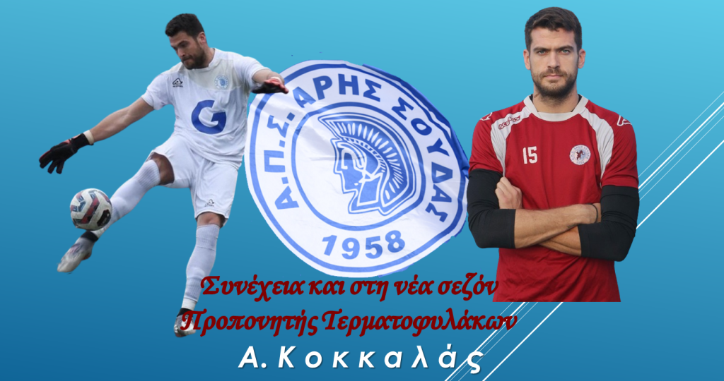 Από το Δ.Σ. του Α.Π.Σ. ΑΡΗΣ ΣΟΥΔΑΣ ανακοινώνεται ευχαρίστως η συνέχιση της συνεργασίας με τον Προπονητή Τερματοφυλάκων Αντώνη Κοκκαλά.