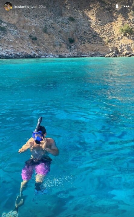 Μάλιστα, ο Τζολάκης ανέβασε story στο instagram, στο οποίο φαίνεται να απολαμβάνει τις διακοπές του και έχοντας φορέσει μάσκα ρίχνει τις… βουτιές του.