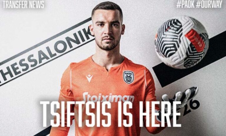 Στην ανακοίνωση του ο ΠΑΟΚ, αναφέρει: “Η ΠΑΕ ΠΑΟΚ ανακοινώνει την απόκτηση του Αντώνη Τσιφτσή με μεταγραφή από τον Αστέρα Τρίπολης. Ο Έλληνας τερματοφύλακας υπέγραψε συμβόλαιο συνεργασίας με τον Δικέφαλο μέχρι τις 30.06 του 2028 και θα φοράει τη φανέλα με τον αριθμό 99.