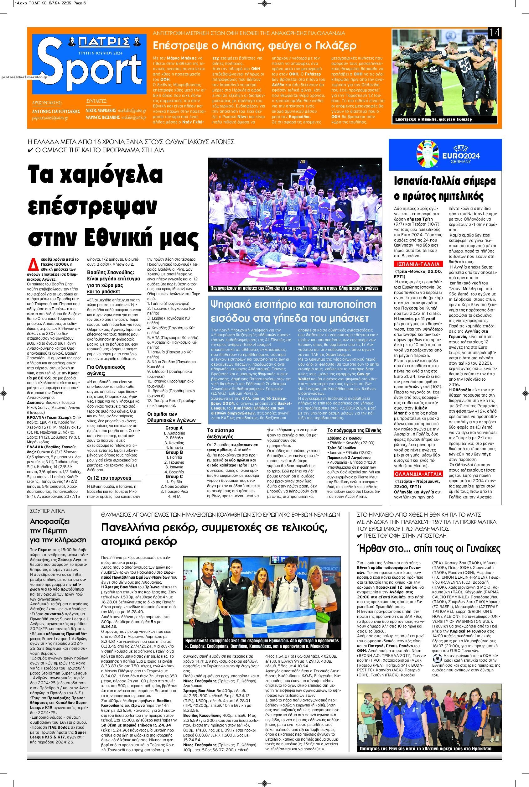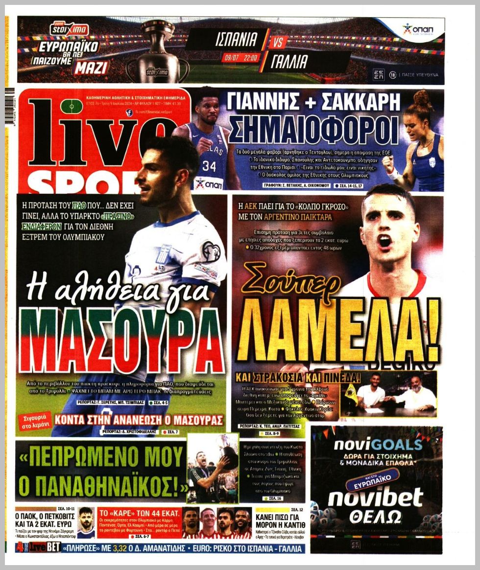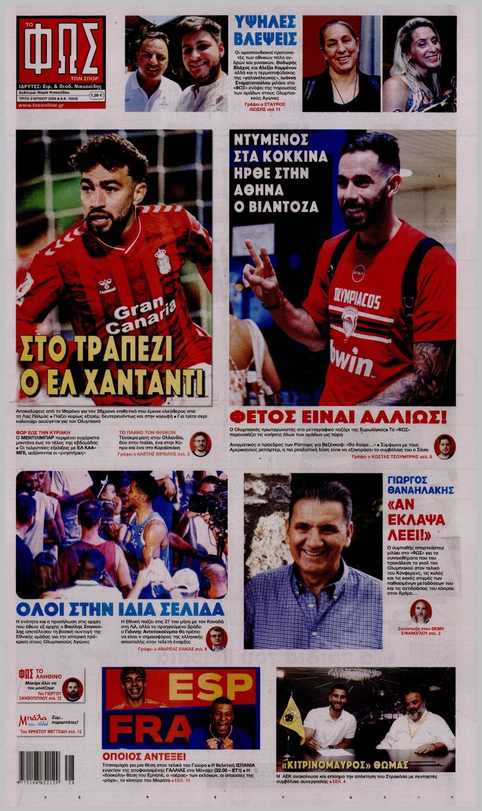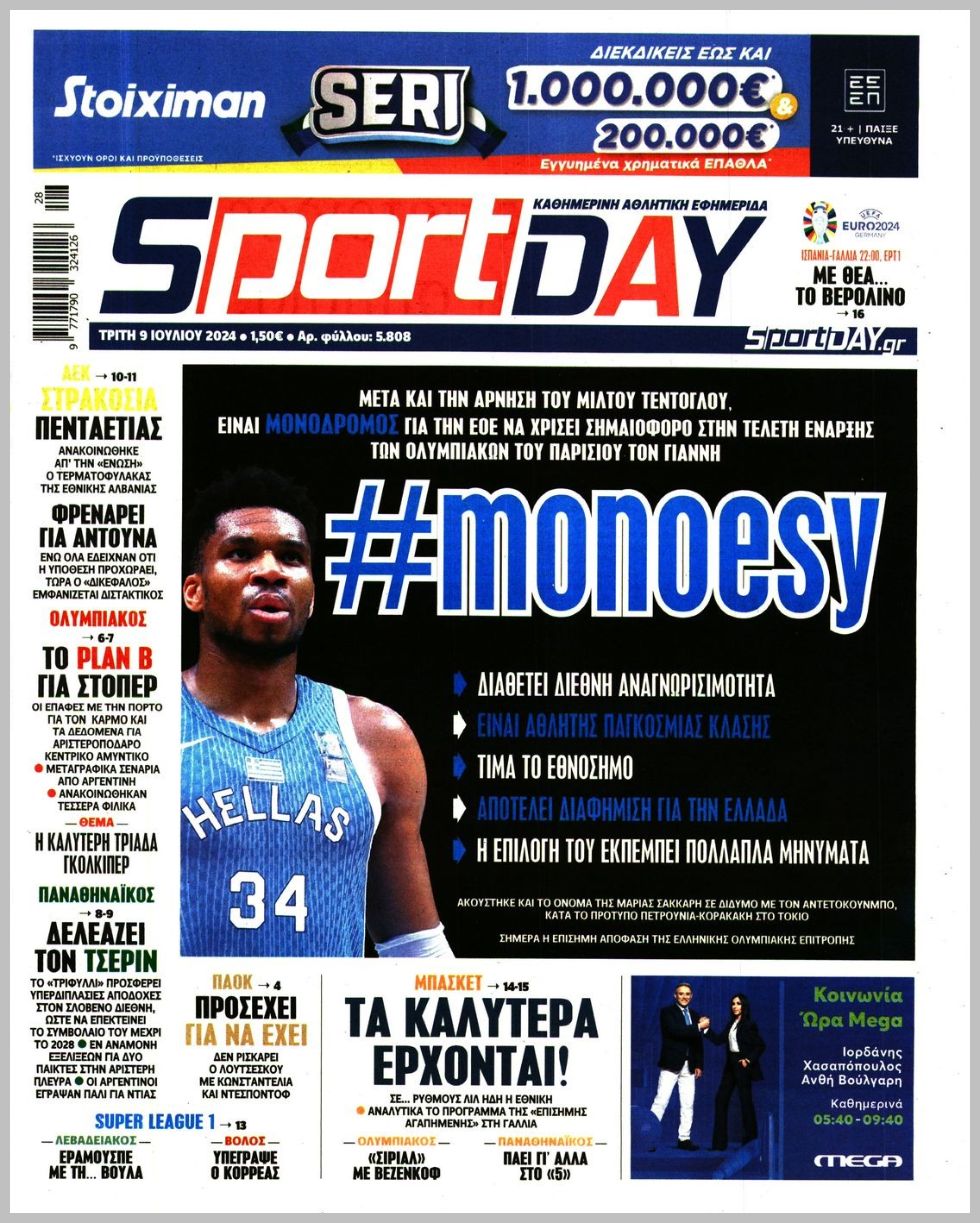 Τα αθλητικά πρωτοσέλιδα της Τρίτης (9/7)