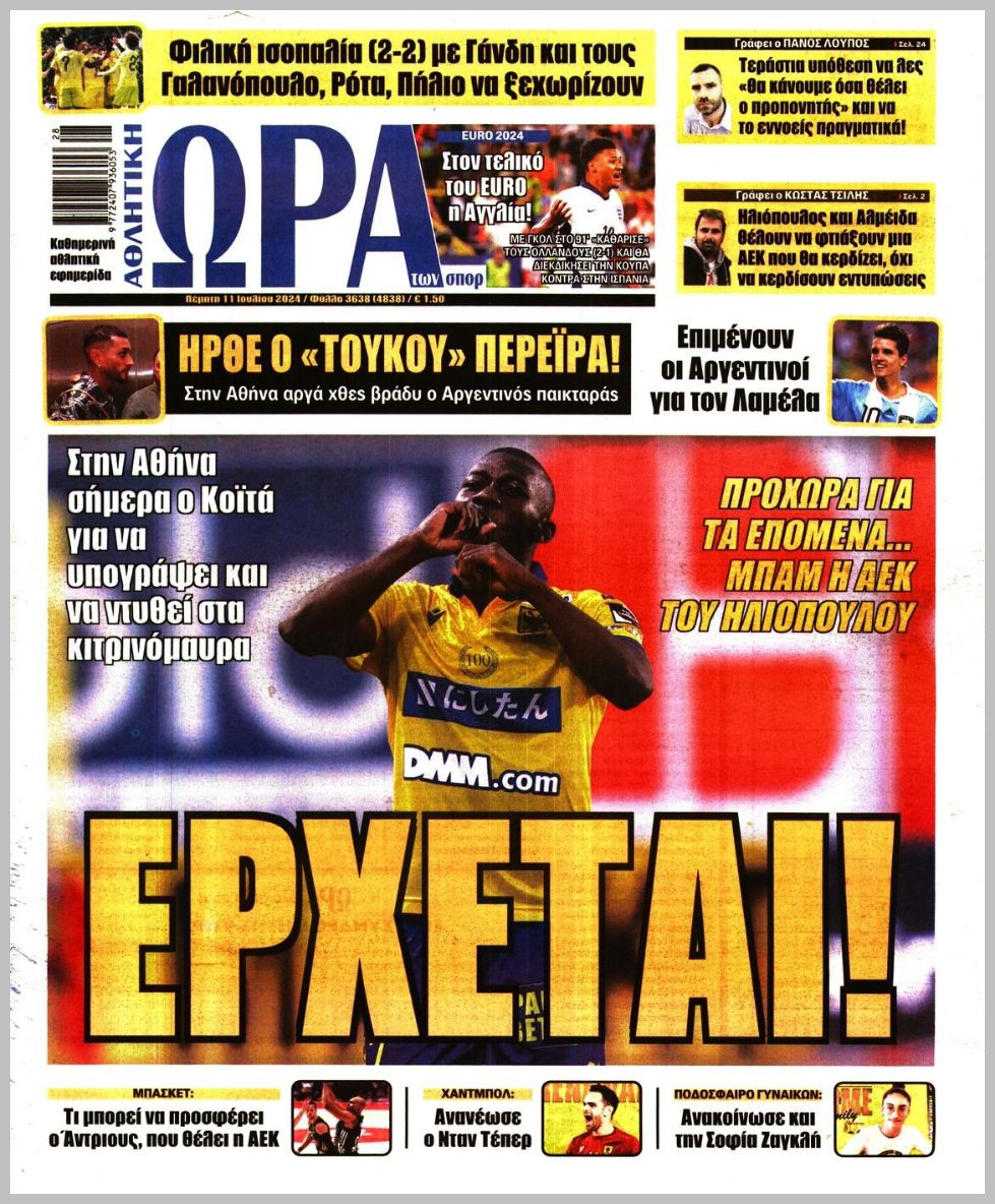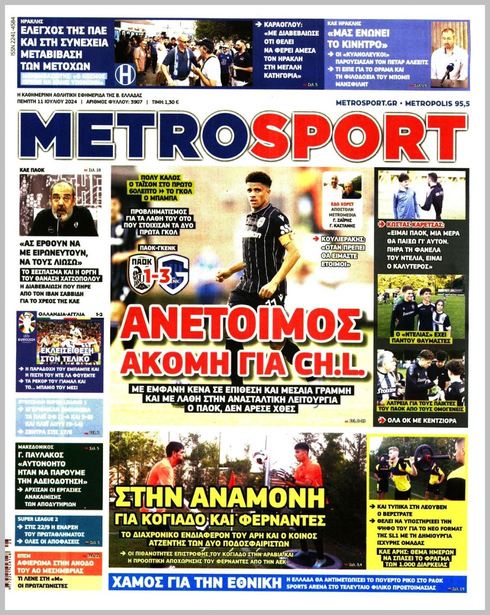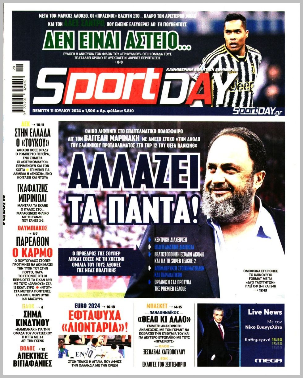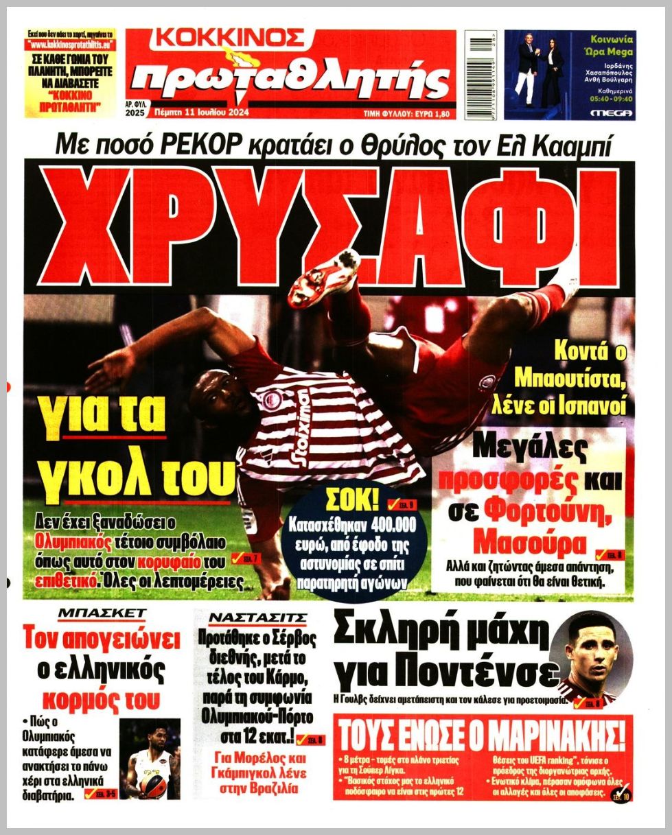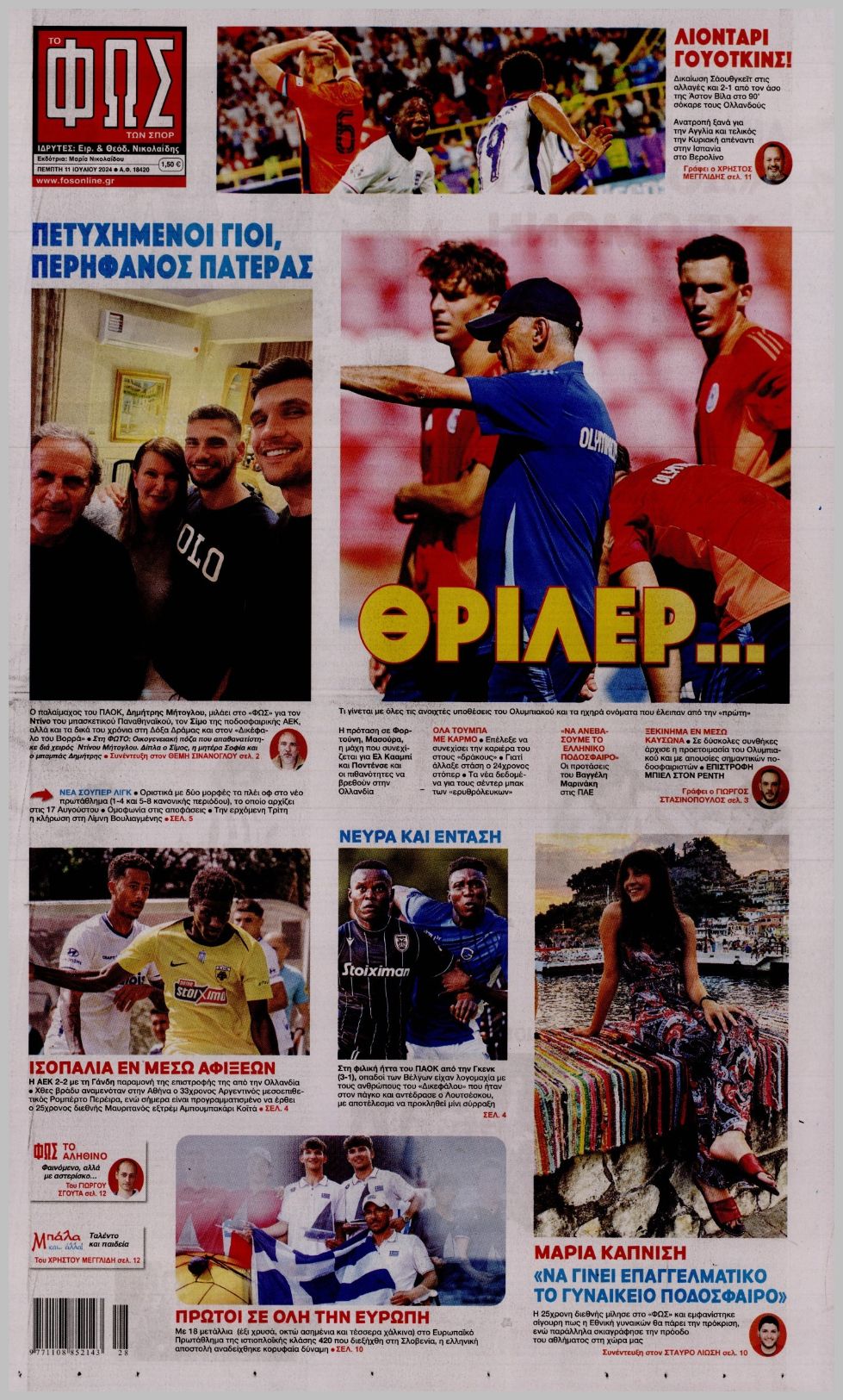 Τα αθλητικά πρωτοσέλιδα της Πέμπτης (11/7)
